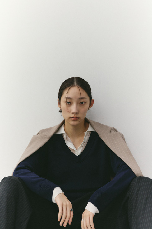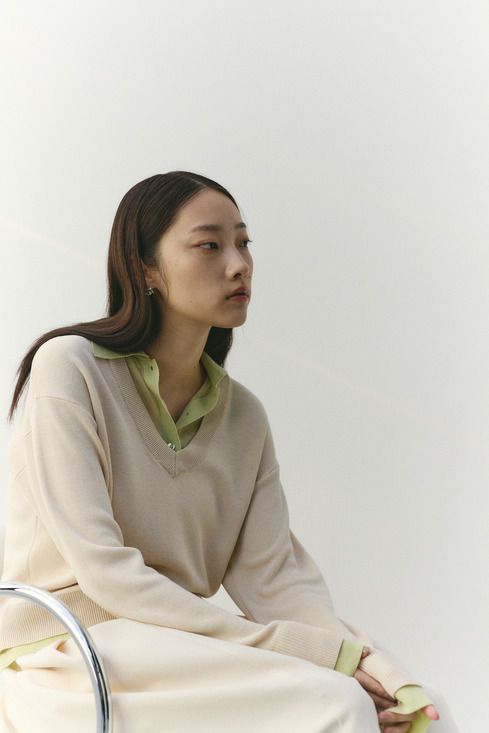 レイヤードポロニットトップ