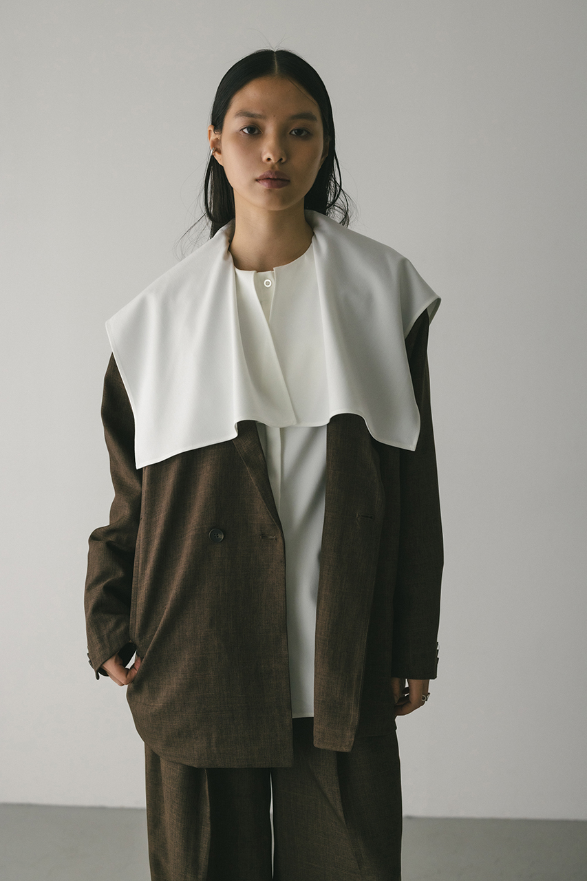 ビックカラーとモードなワイドカフがポイントのシャツトップ。オンオフ問わずお使いいただける素材感で、キレイめにもカジュアルにも着用頂けます。ストレッチなし、透け感WHTややあり。