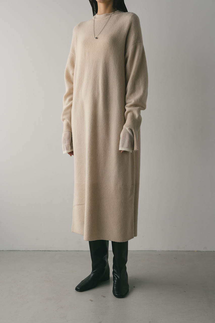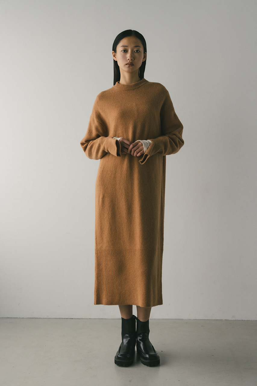 暖かさと着心地の良さをかなえたウールニットワンピース。スタミキらしいスリットスリーブがデザインポイント。抜け感のあるルーズなシルエットで1枚ではもちろん、ブーツ合わせやパンツ、スカートなどレイヤードしやすい丈感に仕上げました。同素材のニットカーデやトップスを肩巻きしてのスタイリングもおすすめ。ストレッチあり、透け感なし。