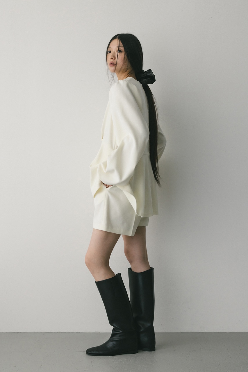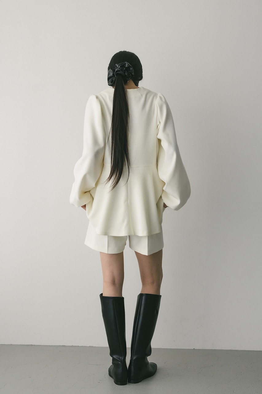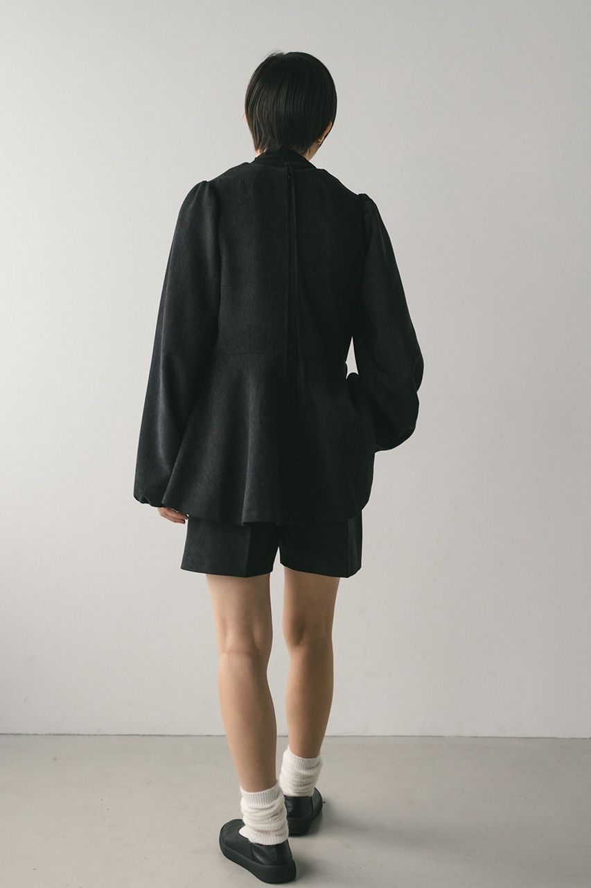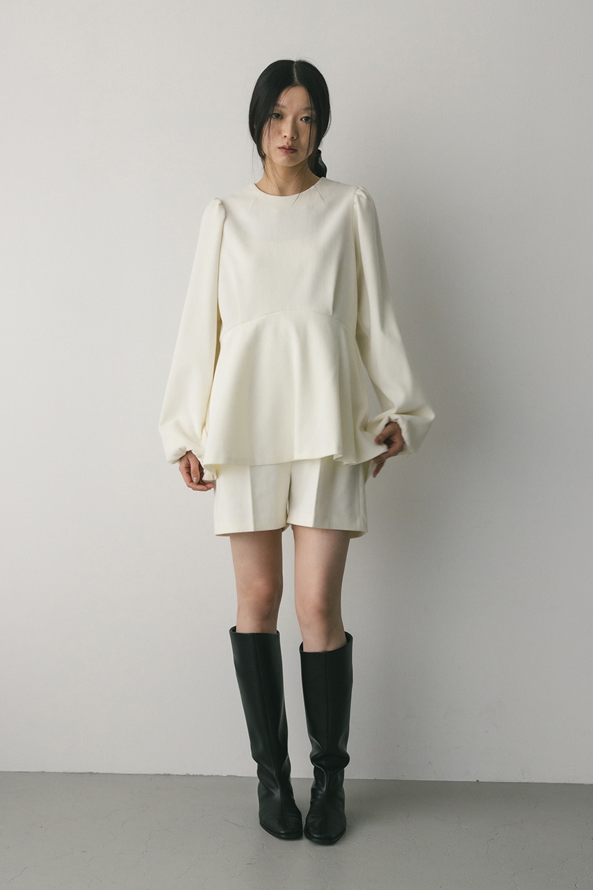 綾目が特徴的な表面感のあるコーデュロイ素材を使用したペプラムシルエットのオールインワン。程よく厚みがありつつも柔らかく温かみのある素材で着心地の良い一枚。全体的にゆったりとしたサイズ感でリラックスして着ていただける大人可愛いミニオールインワンです。長めのペプラムフリルが気になるウエストまわりを自然とカバー。ショートパンツはゆとりのある裾口幅でスタイルアップに導きます。透け感なし、ストレッチなし。