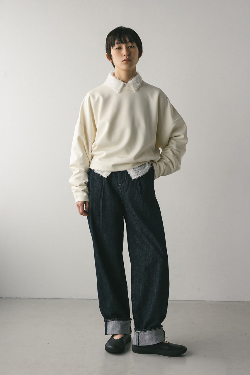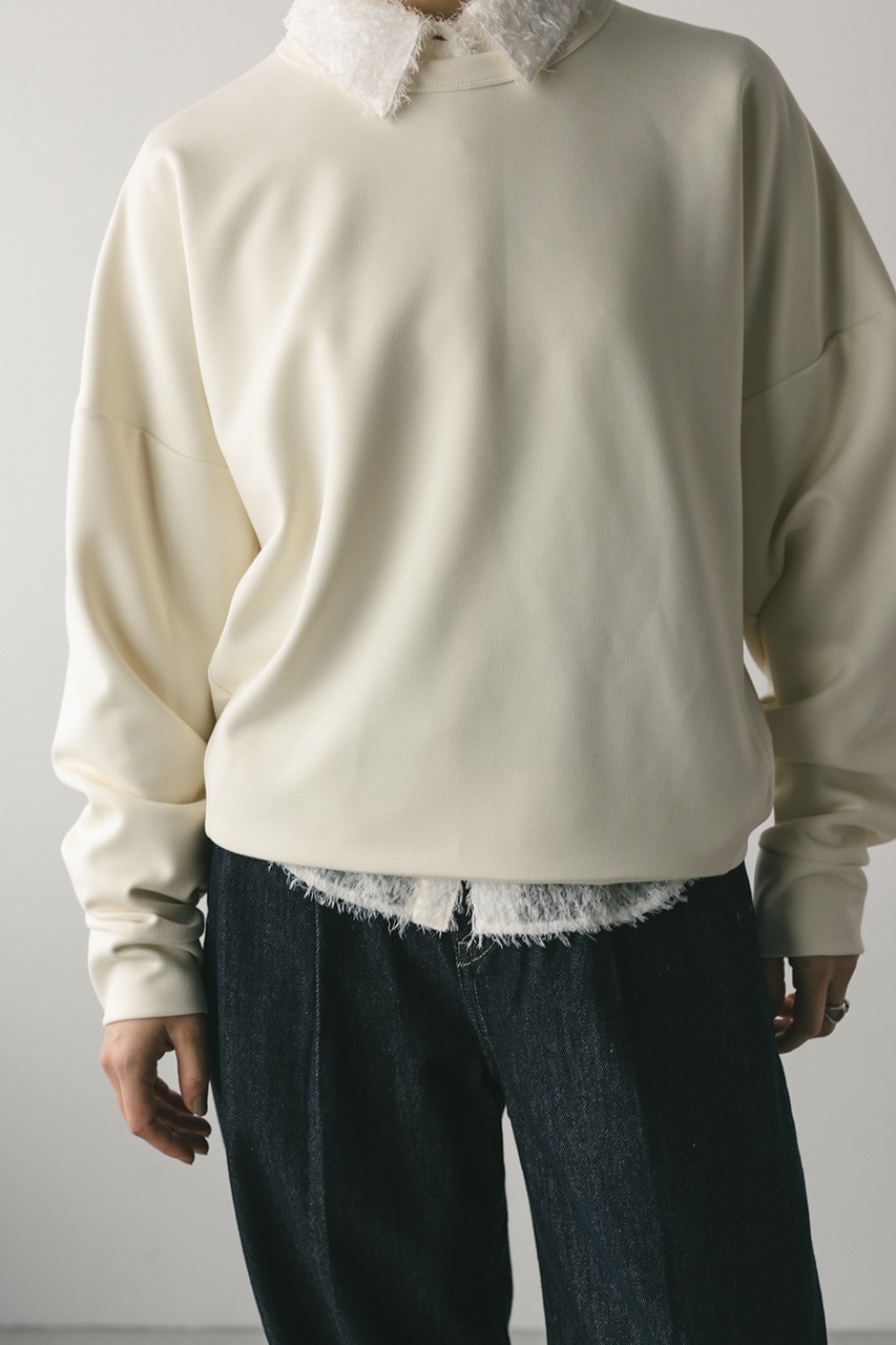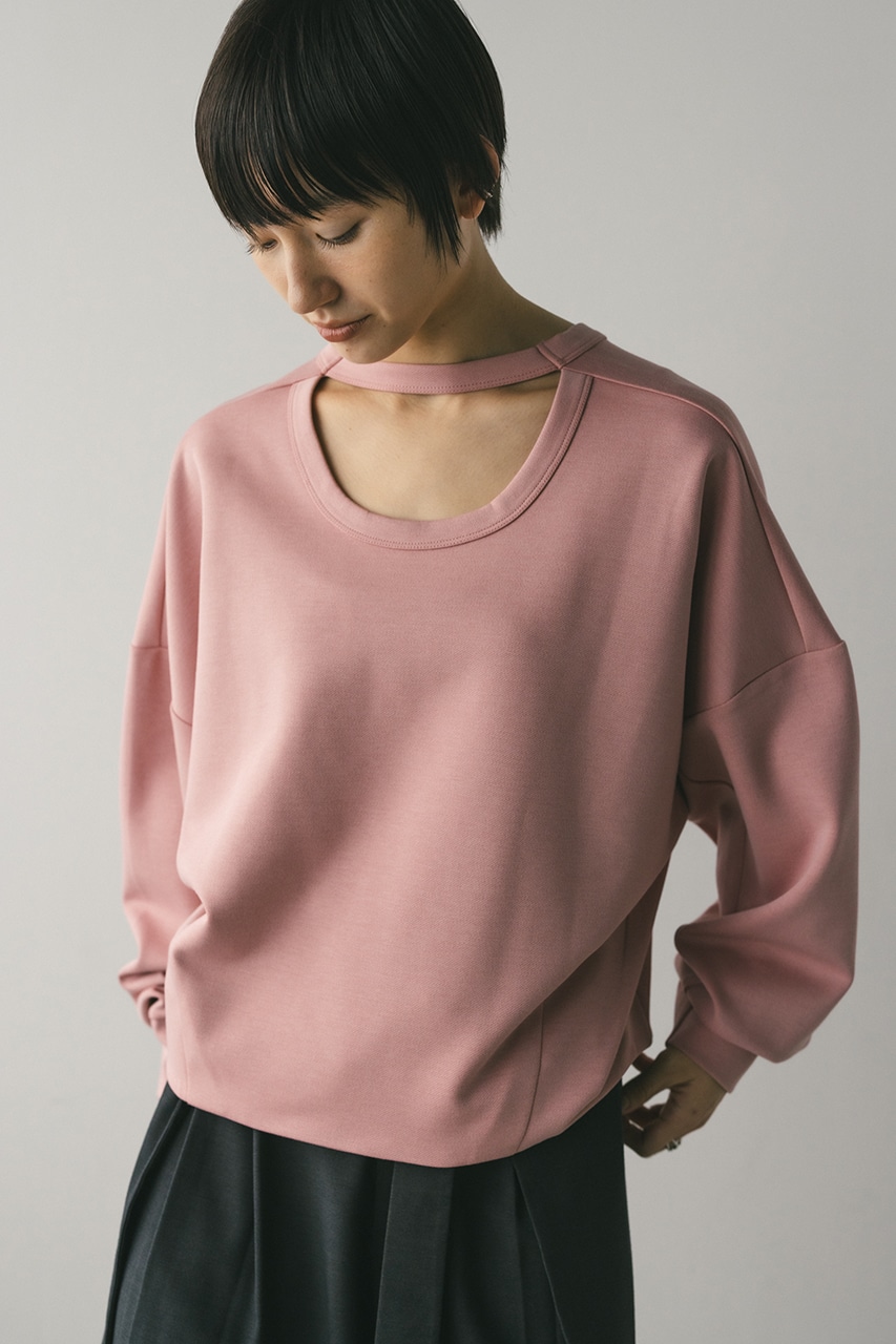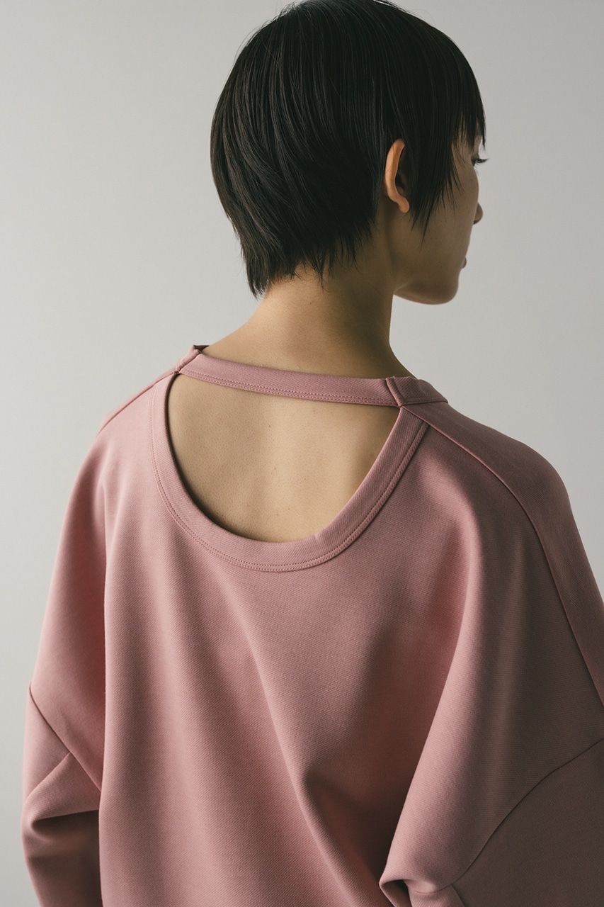 オーバーサイズで身体のラインを拾わず、リラックス感のある着心地が叶うスウェット。ベーシックに見えて、さりげない肌見せが叶うバックオープンデザインが抜け感をプラス。シンプルながらも個性が光る大人カジュアルスウェットです。透け感なし、ストレッチあり。