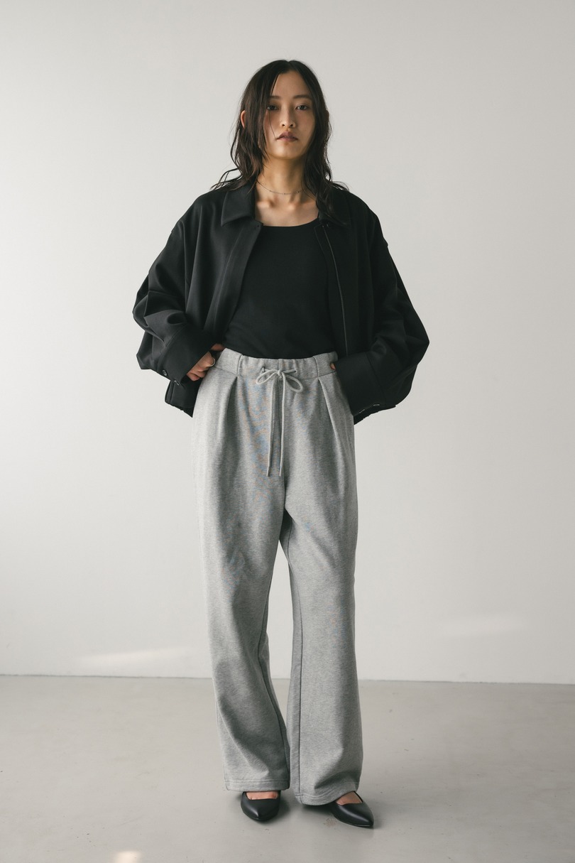 ウエスト部分にタックを入れることで美しいシルエットを実現したスウェットパンツ。脚のラインをすっきり見せ、カジュアルすぎない印象に導きます。しなやかなスウェット地で長時間の着用も快適、オフィスカジュアルから休日スタイルまで幅広シーンに活躍します。ストレッチあり、透け感なし。