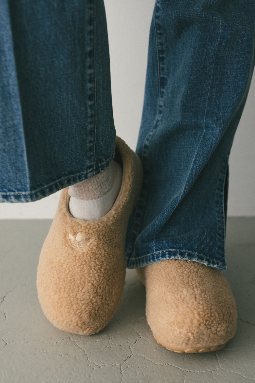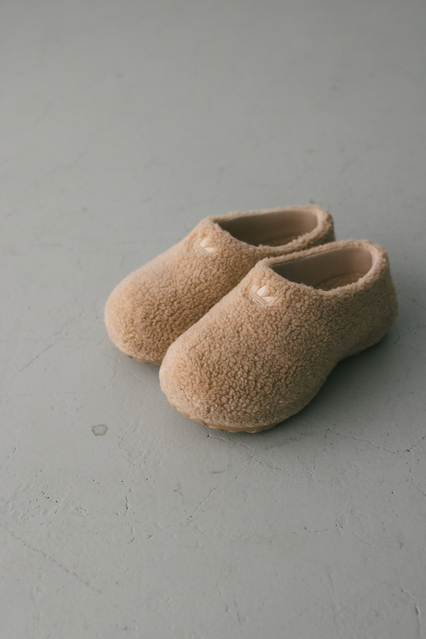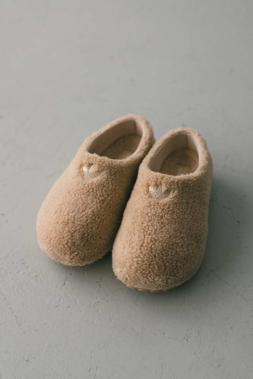 アディダスのスタンスミスはあまりにも有名。そのミニマルなクラシックスタイルは、汎用性にも優れている。「スタンスミス」と聞いて、このミュールは思い浮かべたものと違うかもしれないが、そこに受け継がれたDNAは明確にわかるはず。サイドにあしらった3つの穴は、パーフォレーション加工のスリーストライプスを彷彿させ、シルエットもクリーンなスタイルを継承。テキスタイルフリースのアッパーとAdifom アウトソールを組み合わせた、チャンキーかつモダンでインパクトのあるルックス。フリースライニングを施し、快適な履き心地を高めている。