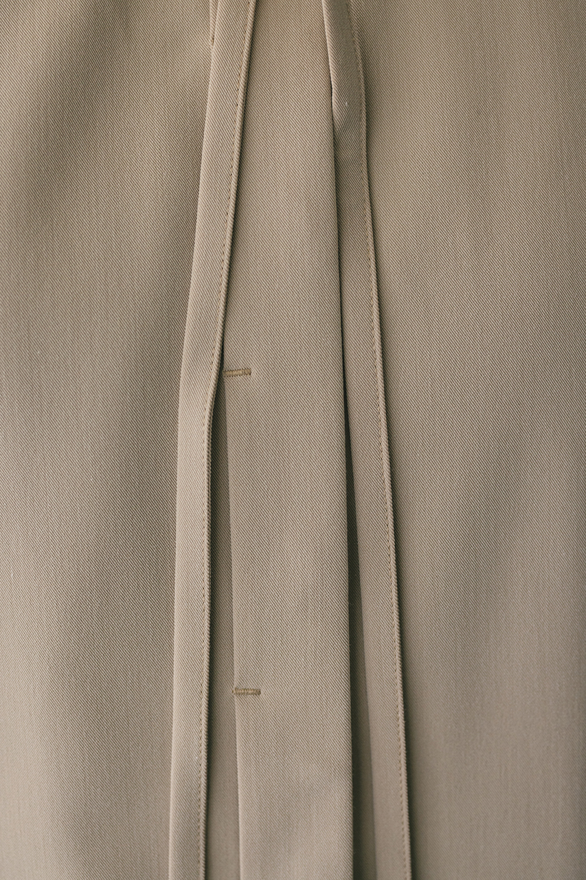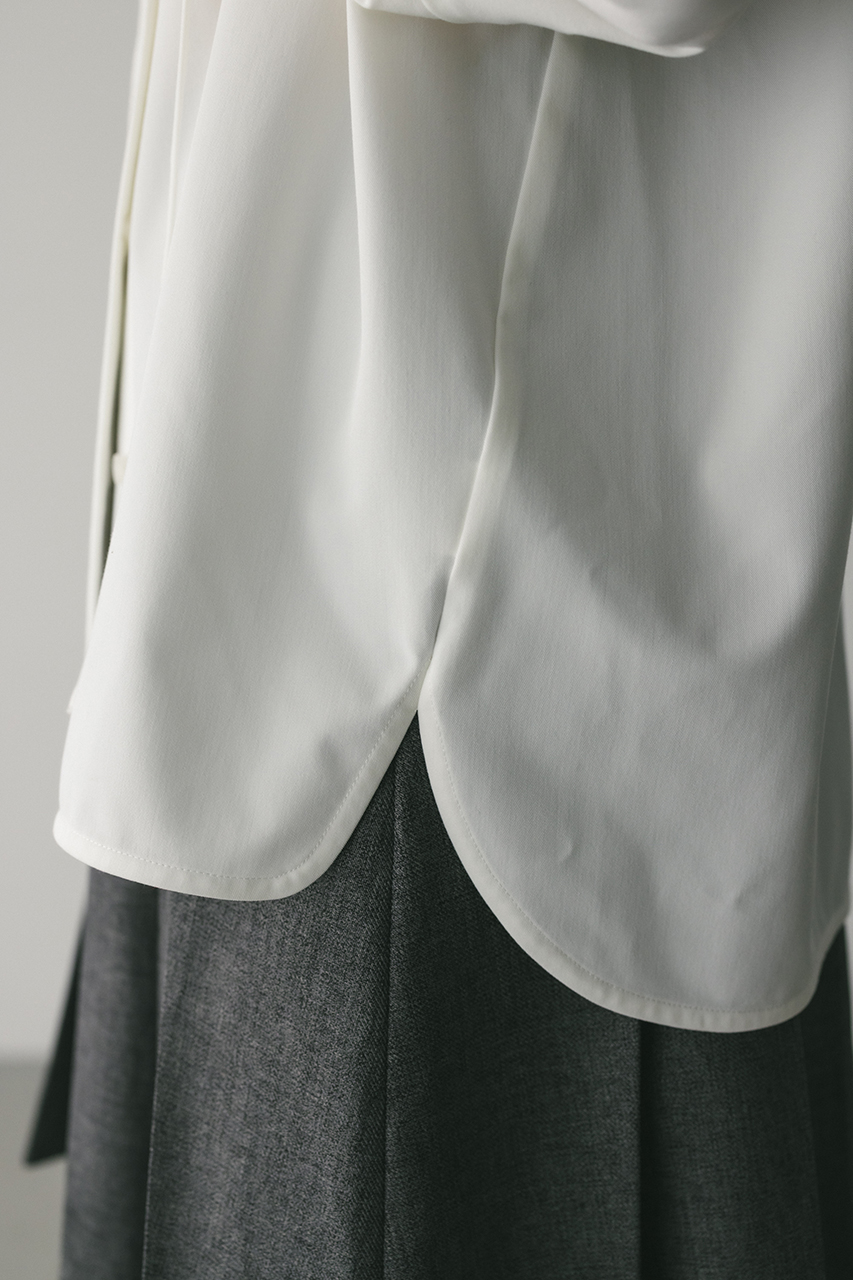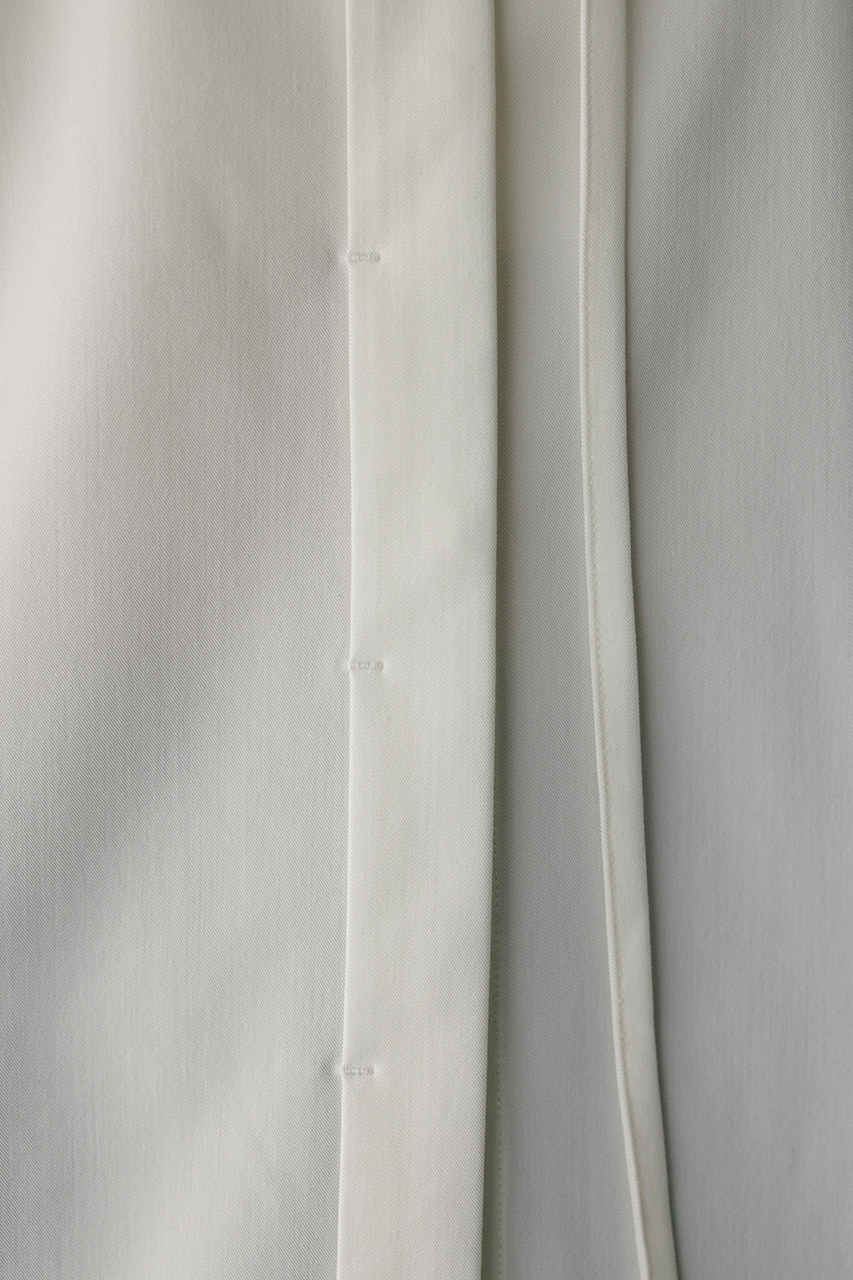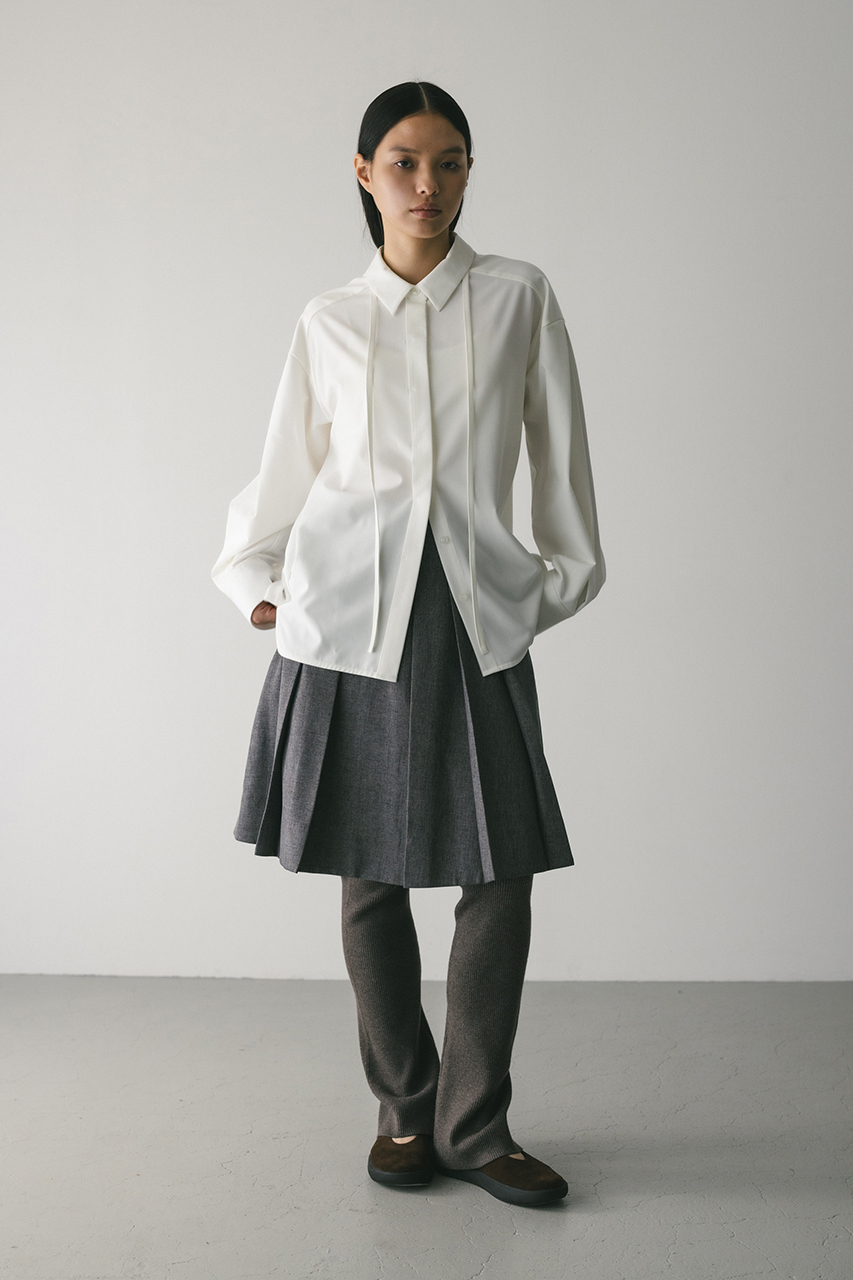 取り外し可能な共地のチョーカー紐がついたマニッシュシャツ。チョーカーを襟の下や首に巻くことで、アクセントが加わりぐっとこなれた印象に導きます。スタミキらしい程よく厚みのある生地を使用し、一枚でも羽織りとしても使い回しできる万能シャツです。ストレッチなし、透け感WHTややあり。