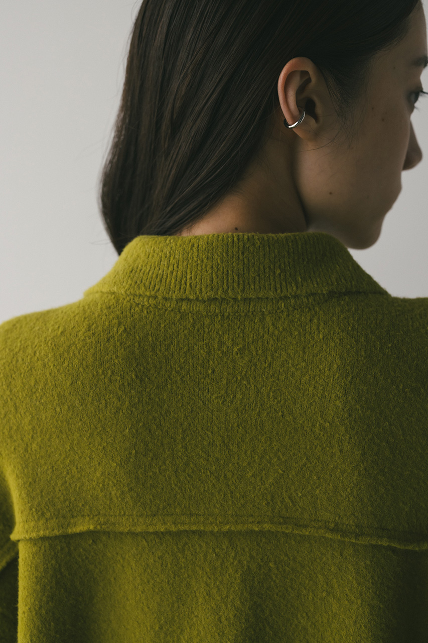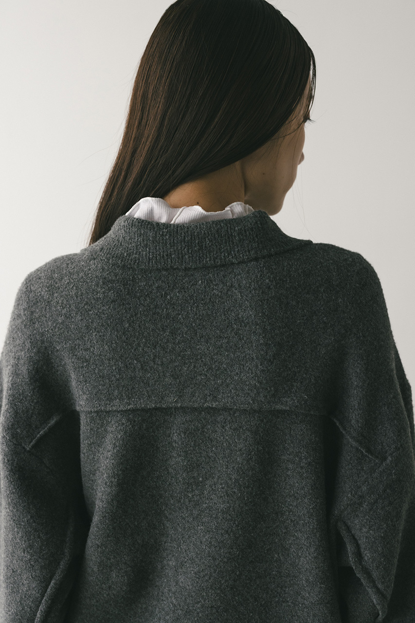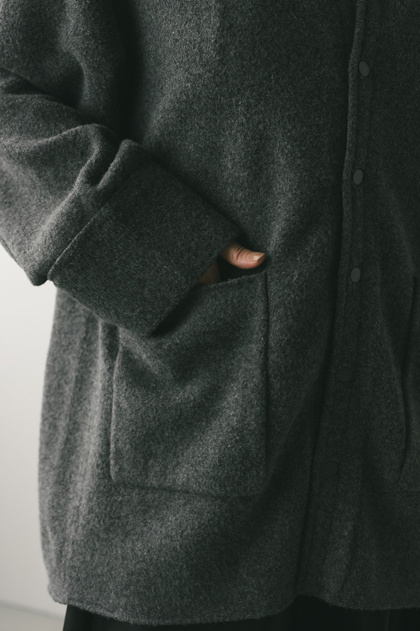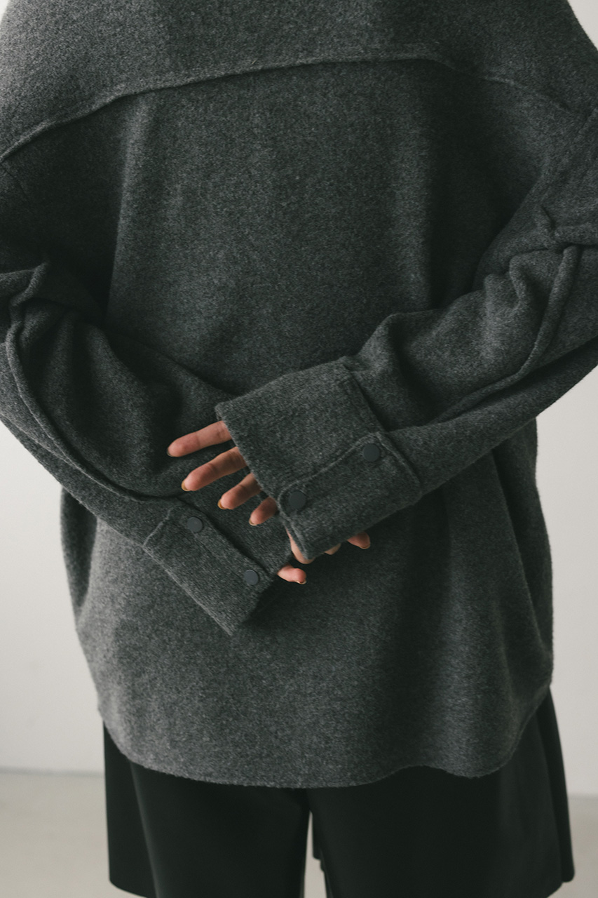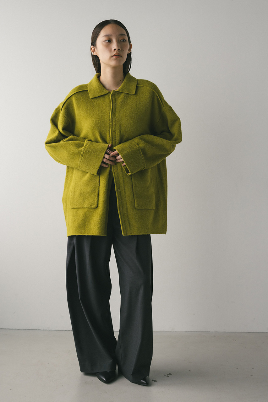 なめらかな質感で表情感にこだわったウール混で暖かい素材で仕立てたハイラインシリーズ。ニットの抜け感を残したこなれ感のあるオーバーサイズに仕上げました。シンプルなデザインでデイリーユースしやすい一枚です。透け感なし、ストレッチあり。