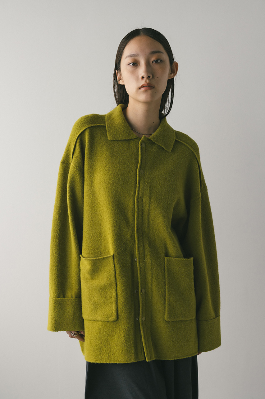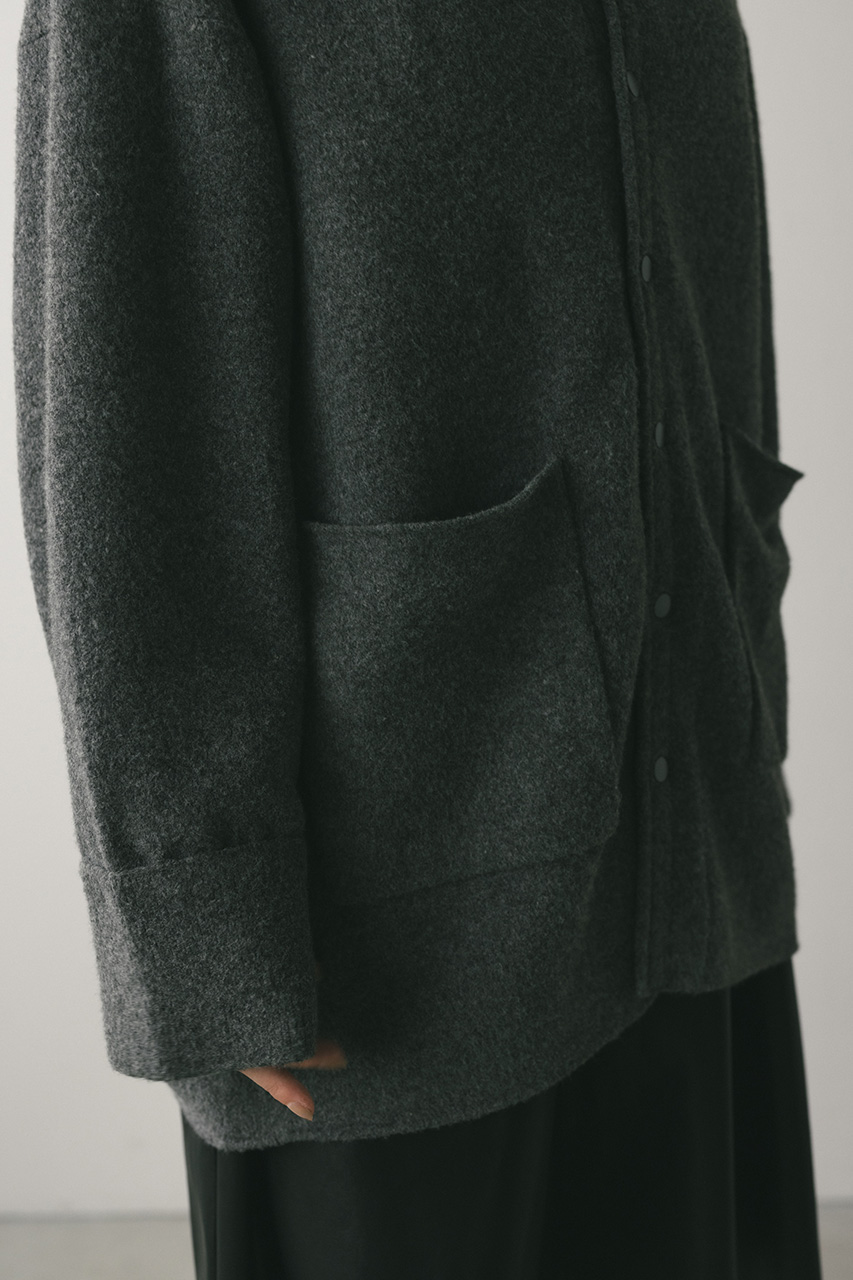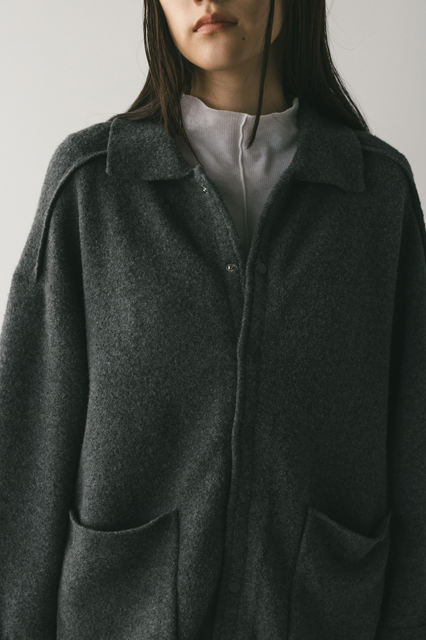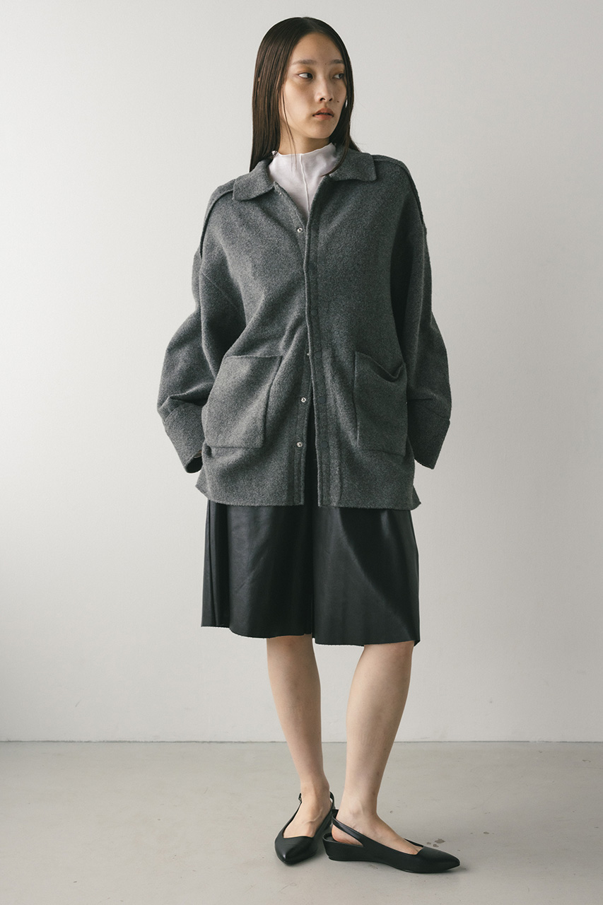 なめらかな質感で表情感にこだわったウール混で暖かい素材で仕立てたハイラインシリーズ。ニットの抜け感を残したこなれ感のあるオーバーサイズに仕上げました。シンプルなデザインでデイリーユースしやすい一枚です。透け感なし、ストレッチあり。