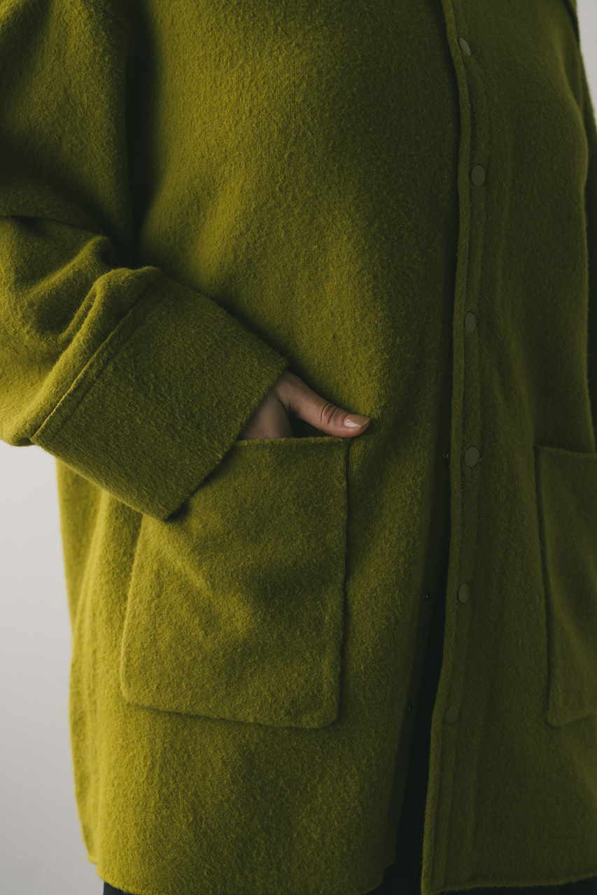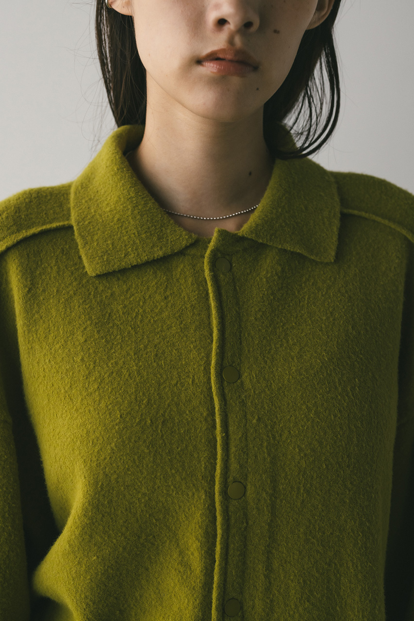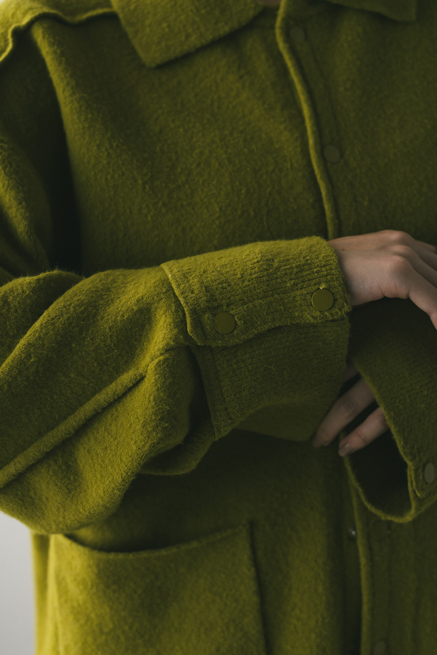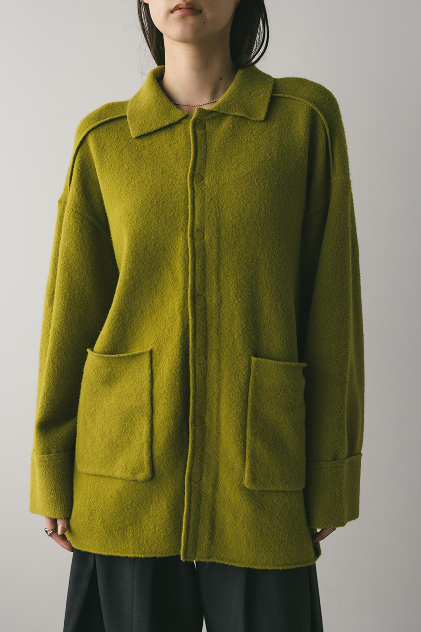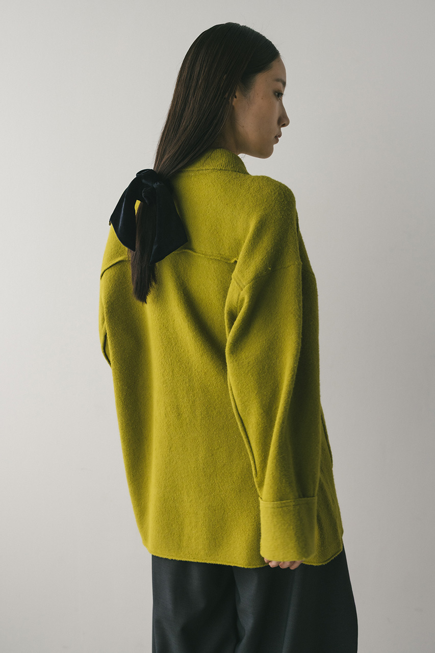 なめらかな質感で表情感にこだわったウール混で暖かい素材で仕立てたハイラインシリーズ。ニットの抜け感を残したこなれ感のあるオーバーサイズに仕上げました。シンプルなデザインでデイリーユースしやすい一枚です。透け感なし、ストレッチあり。