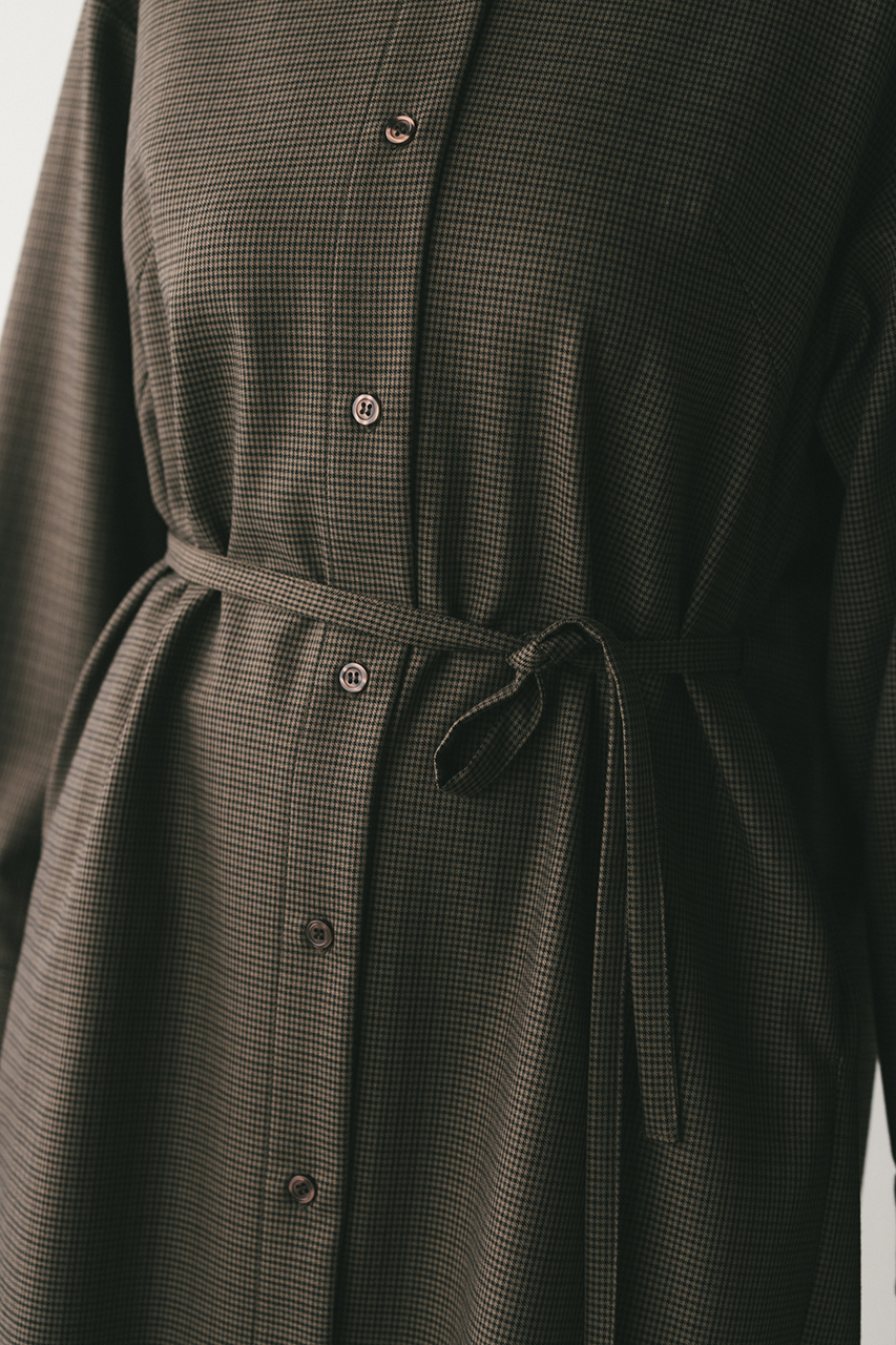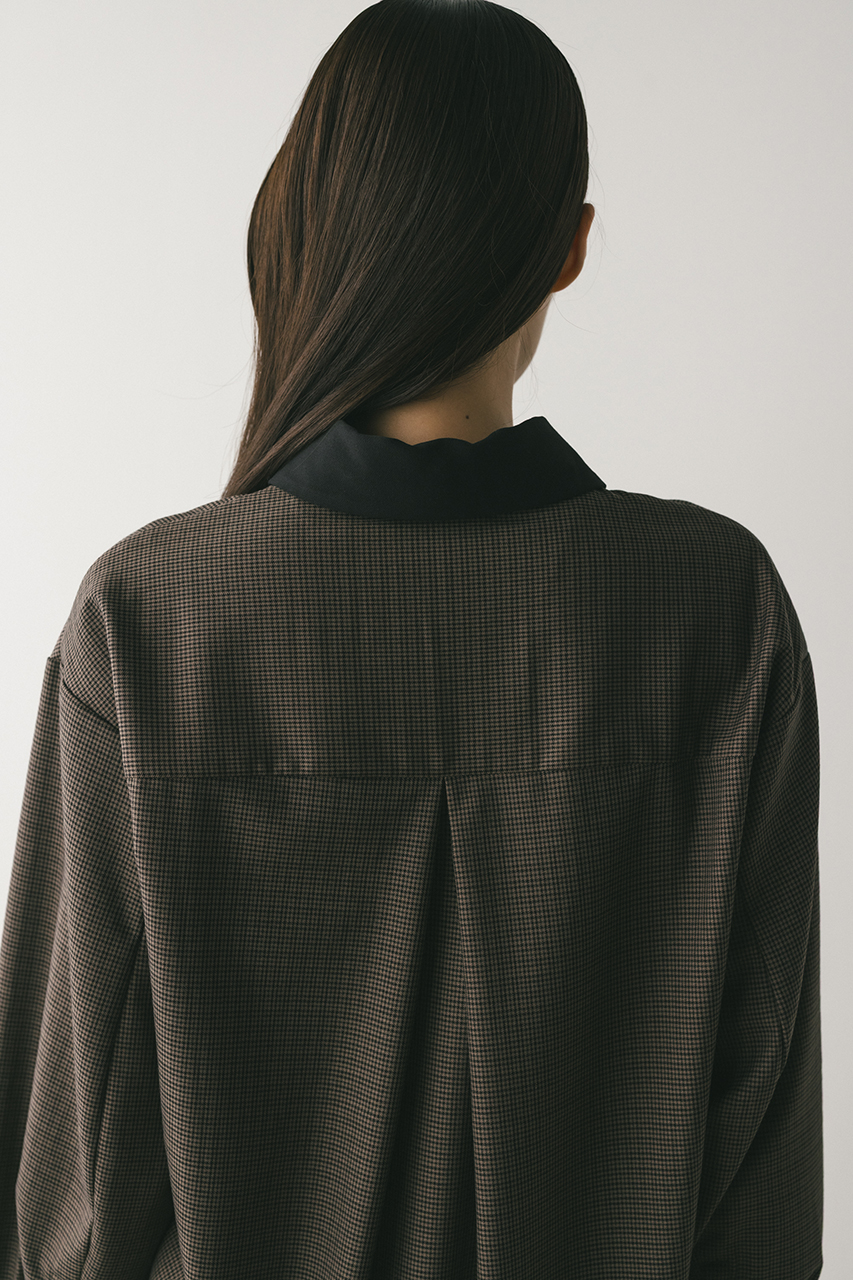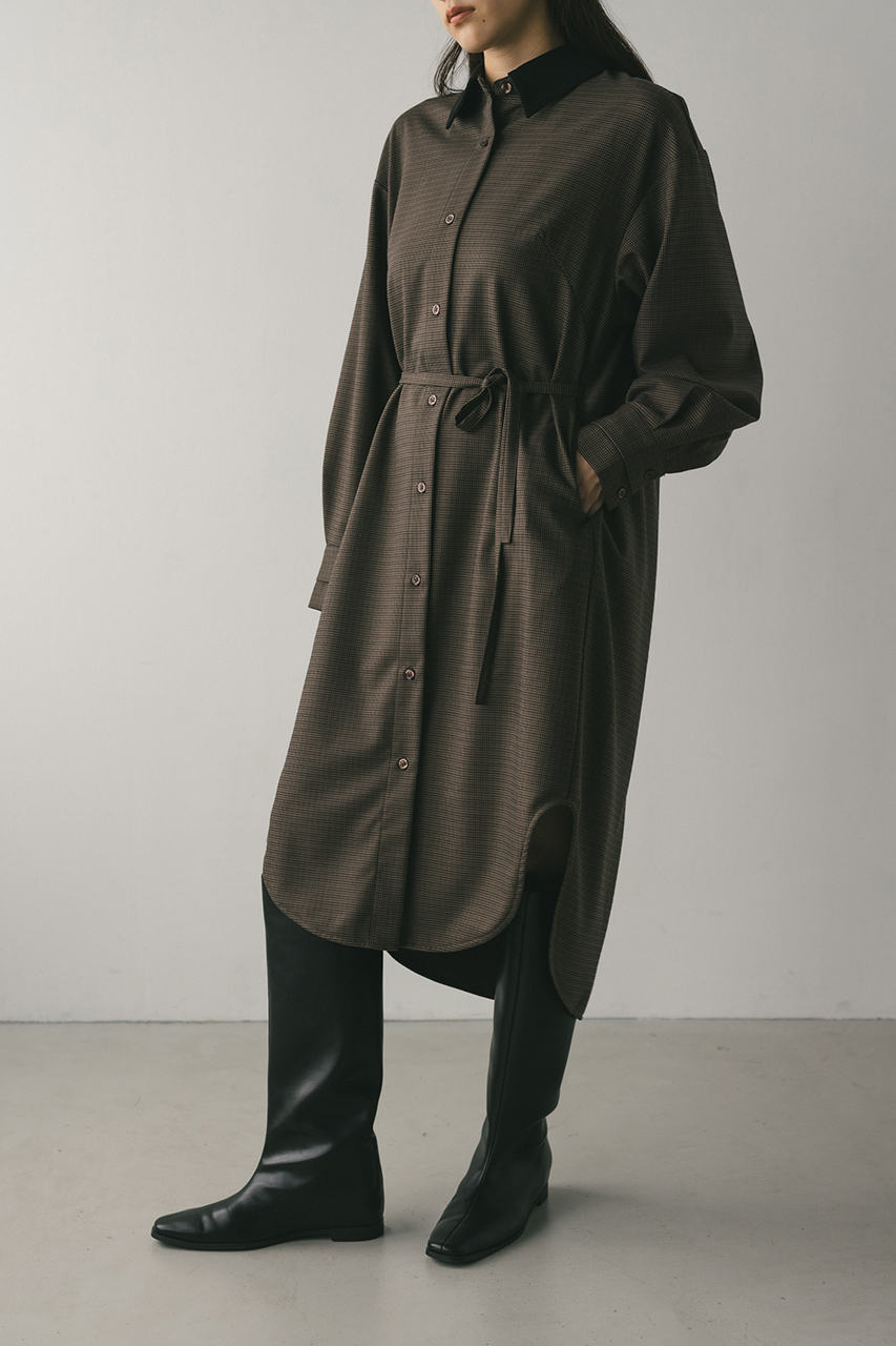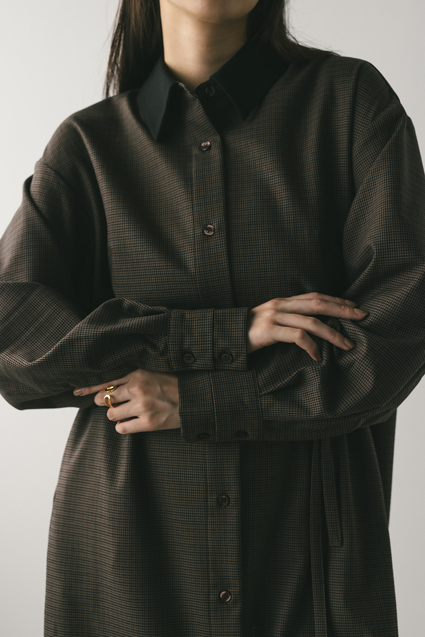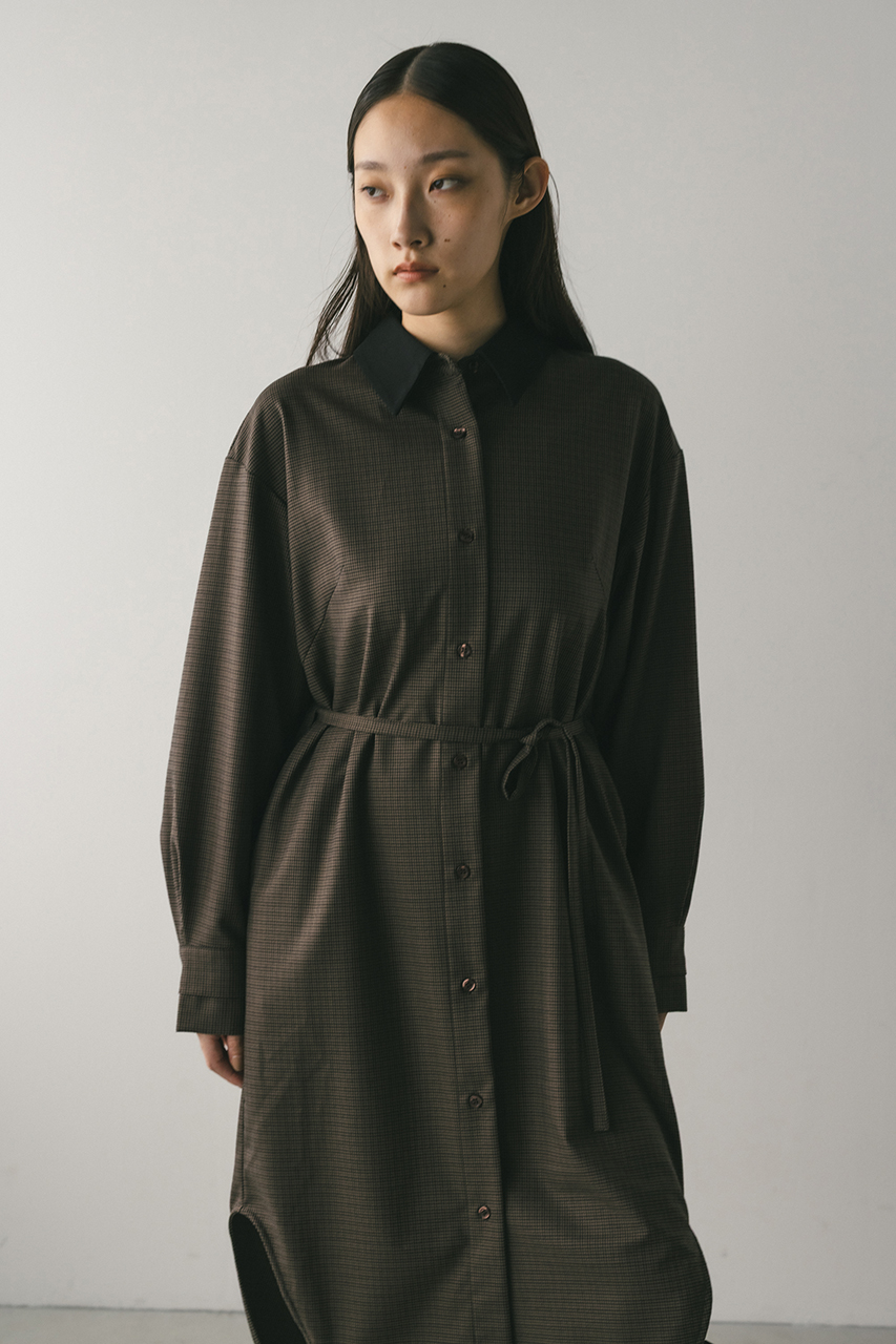 肩を絶妙にドロップさせたこなれたルーズ感と裾のテールシルエットがポイントのシャツワンピース。アイボリーの無地とクレリックデザインで仕上げたチェック柄の2色展開。襟の後ろにはスリットを入れたデザインがポイントです。ストレッチあり、透け感なし。