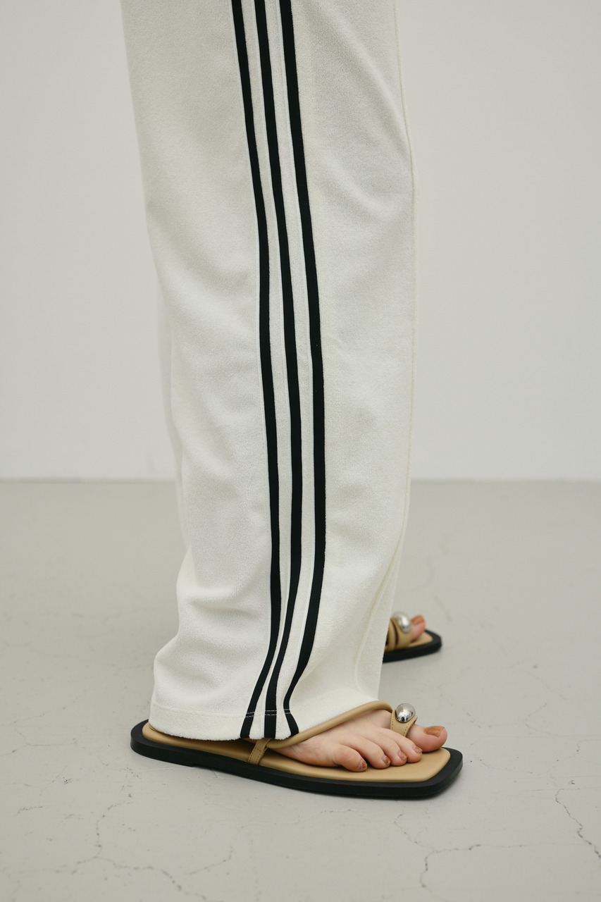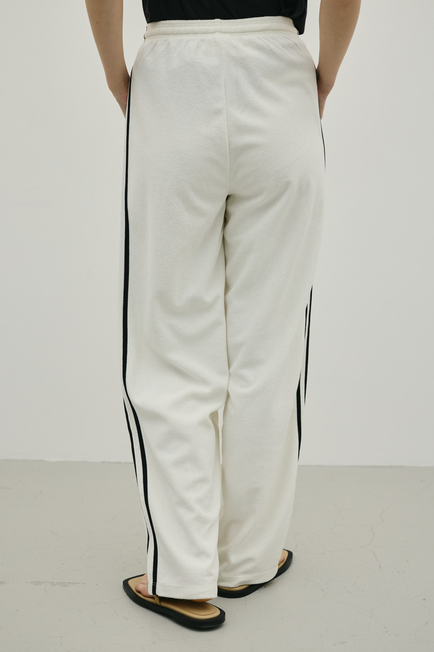 カジュアルなお出かけにも、リラックスしたおうち時間にもぴったりのマストハブアイテム。トリコット素材を使用し、滑らかな肌触りです。ミッドライズデザインがモダンな雰囲気を演出し、バランスの取れたシルエットは、お手持ちのアイテムと合わせやすいのも魅力です。くつろぎの時間にも、お出かけの時も、このトラックパンツはさりげなくスタイリッシュに着こなせます。
