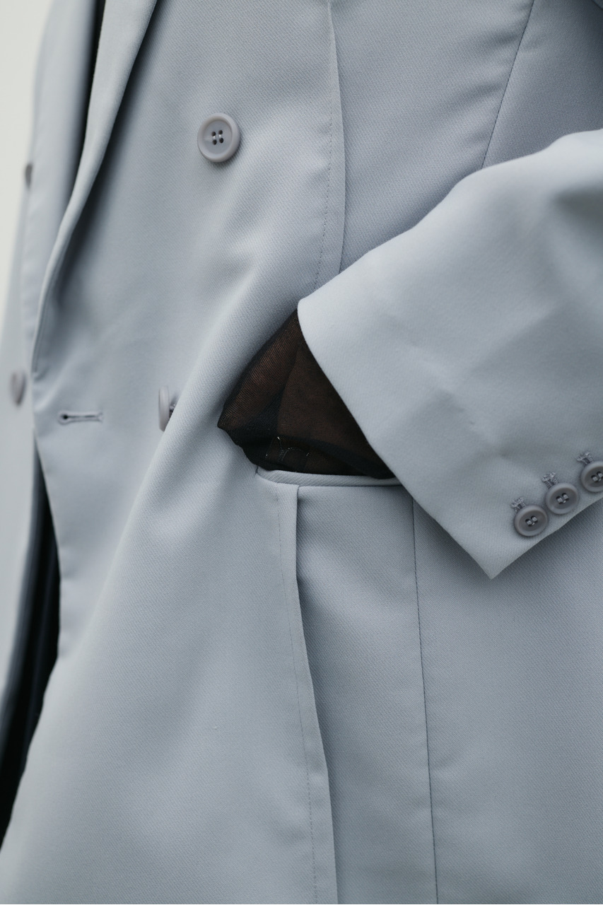 ダーツをあえて表側に見せた他にはないテーラージャケット。肩パッドがよりモードな雰囲気に導きます。しっかりとしたハリのあるツイル素材を使用しているので、ジャケットのシルエットを綺麗に保ち、しわにもなりにくい一枚。日常使いからフォーマルな場面まで幅広く着用いただけます。スタミキ定番のブラックに加え、こだわりの春らしいオリジナルベージュストライプ柄と無地ブルーカラーの3色展開。500JSA31-0721(ストレートタックパンツ)とセットアップ着用可能。透け感なし、ストレッチややあり。