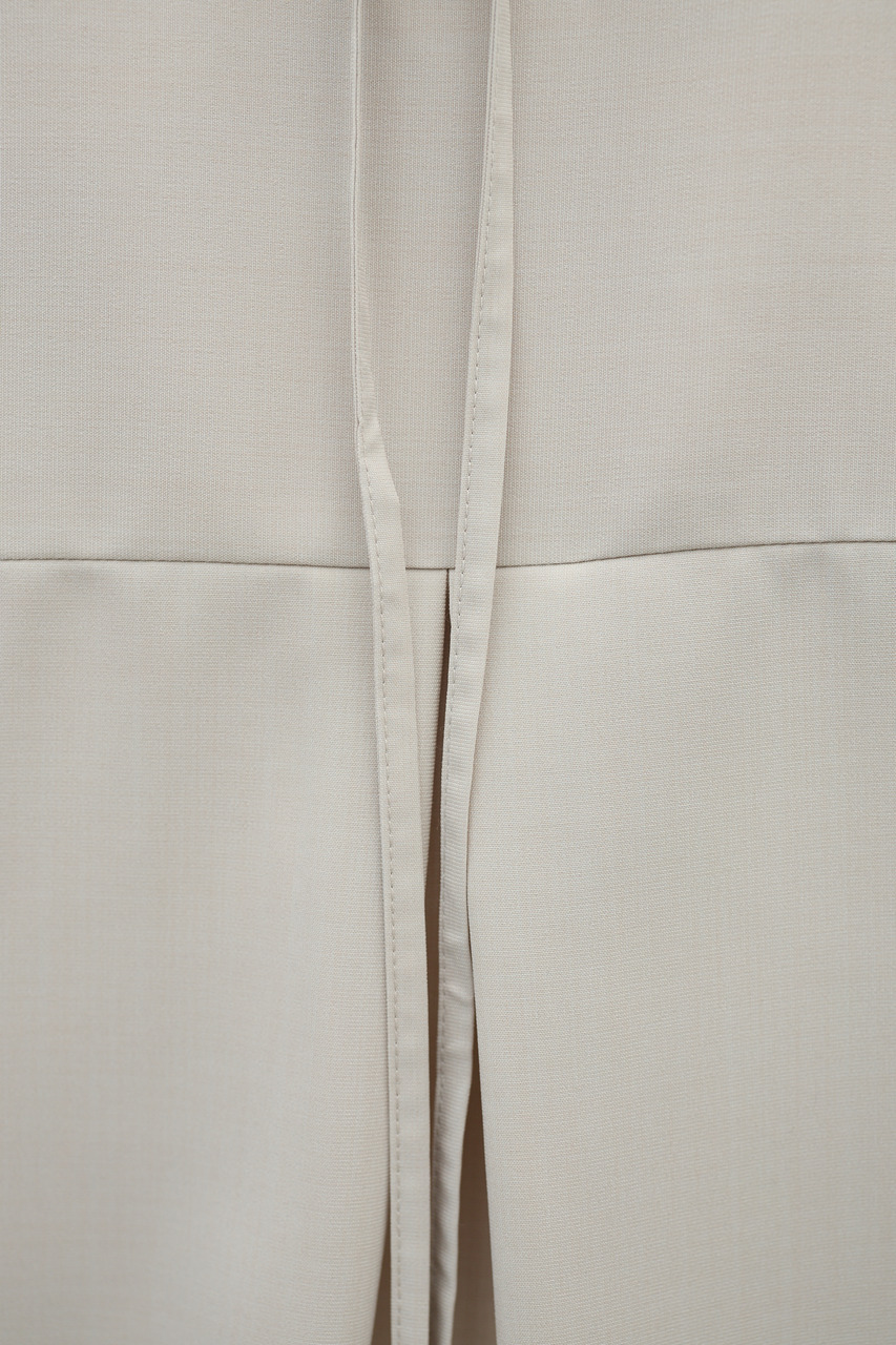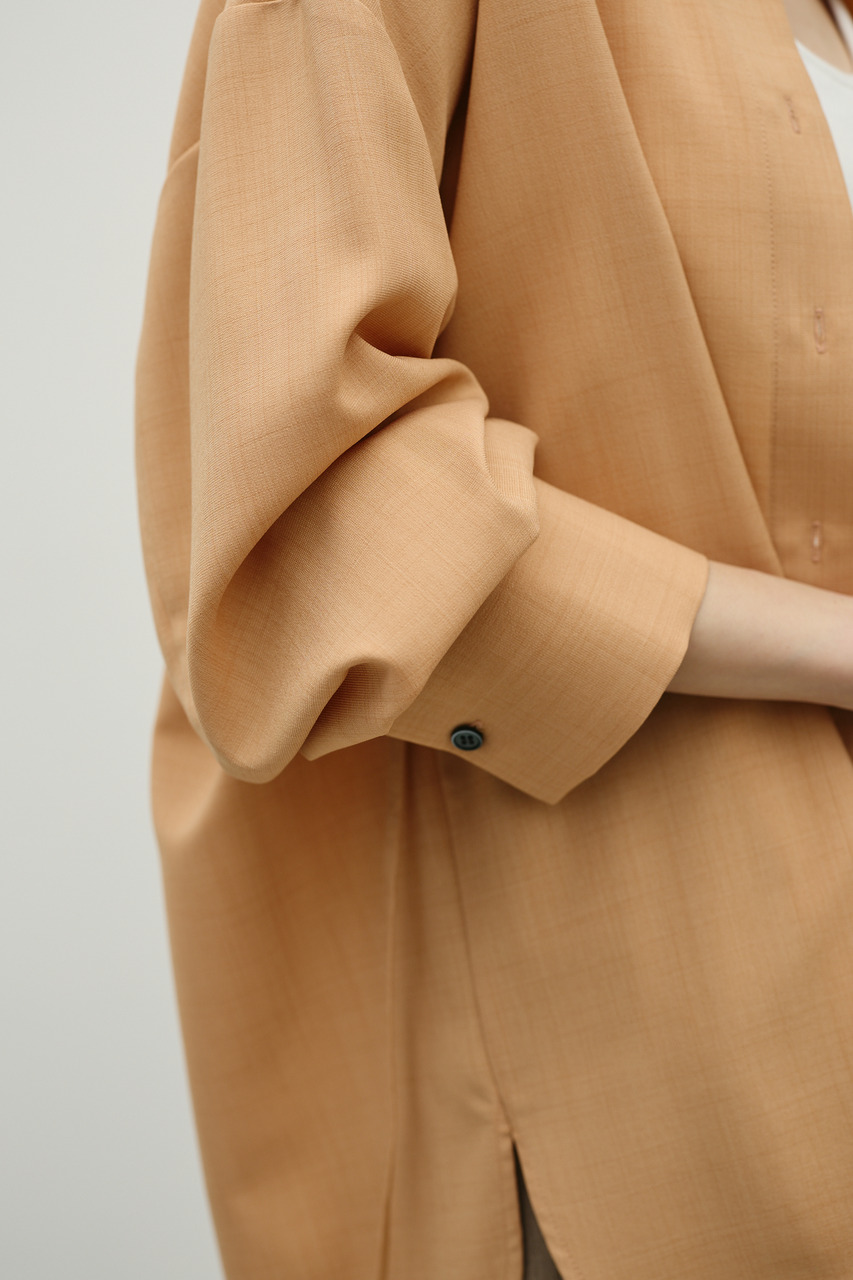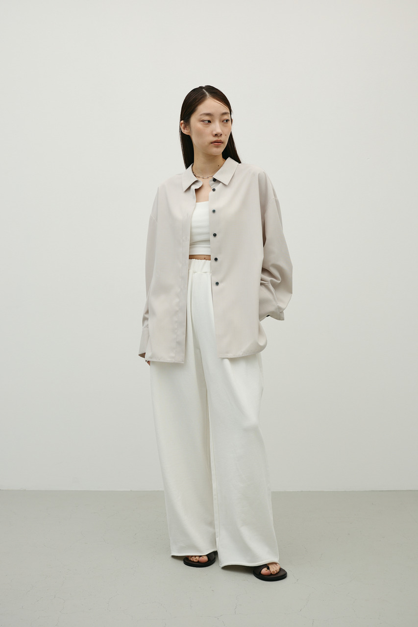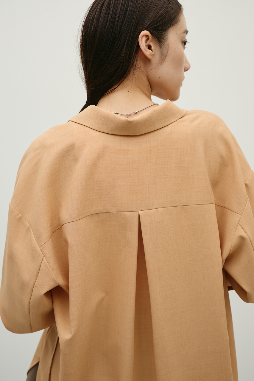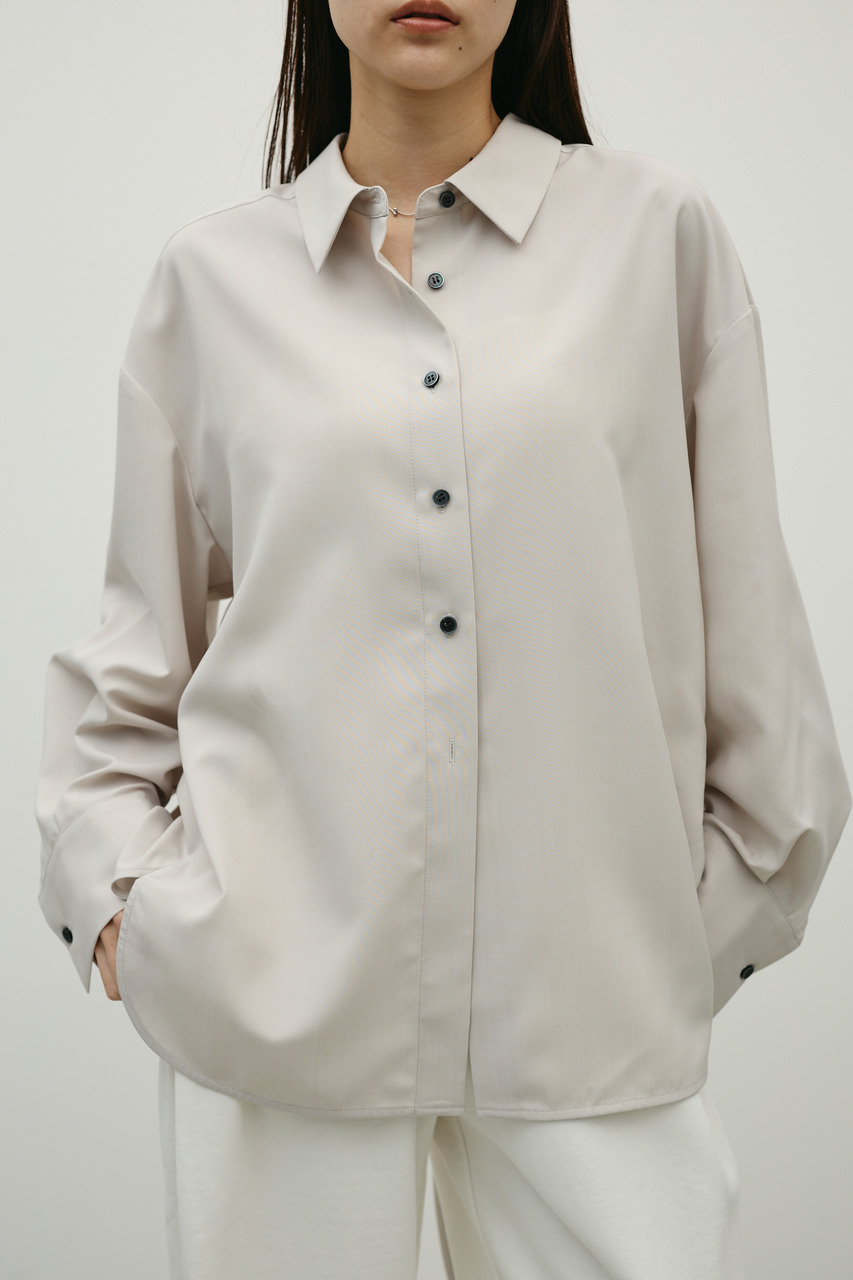 取り外し可能な共地紐がついたマニッシュカラーシャツ。ウエストのホールに紐を通してベルトとして使用したり、襟の下に巻いてチョーカーとしても使用でき、気分によってスタイリングをアレンジできます。サラッとした肌触りの良い素材なので、一枚でも羽織りとしてもオールシーズン使い回しできる万能シャツです。透け感あり、ストレッチなし。