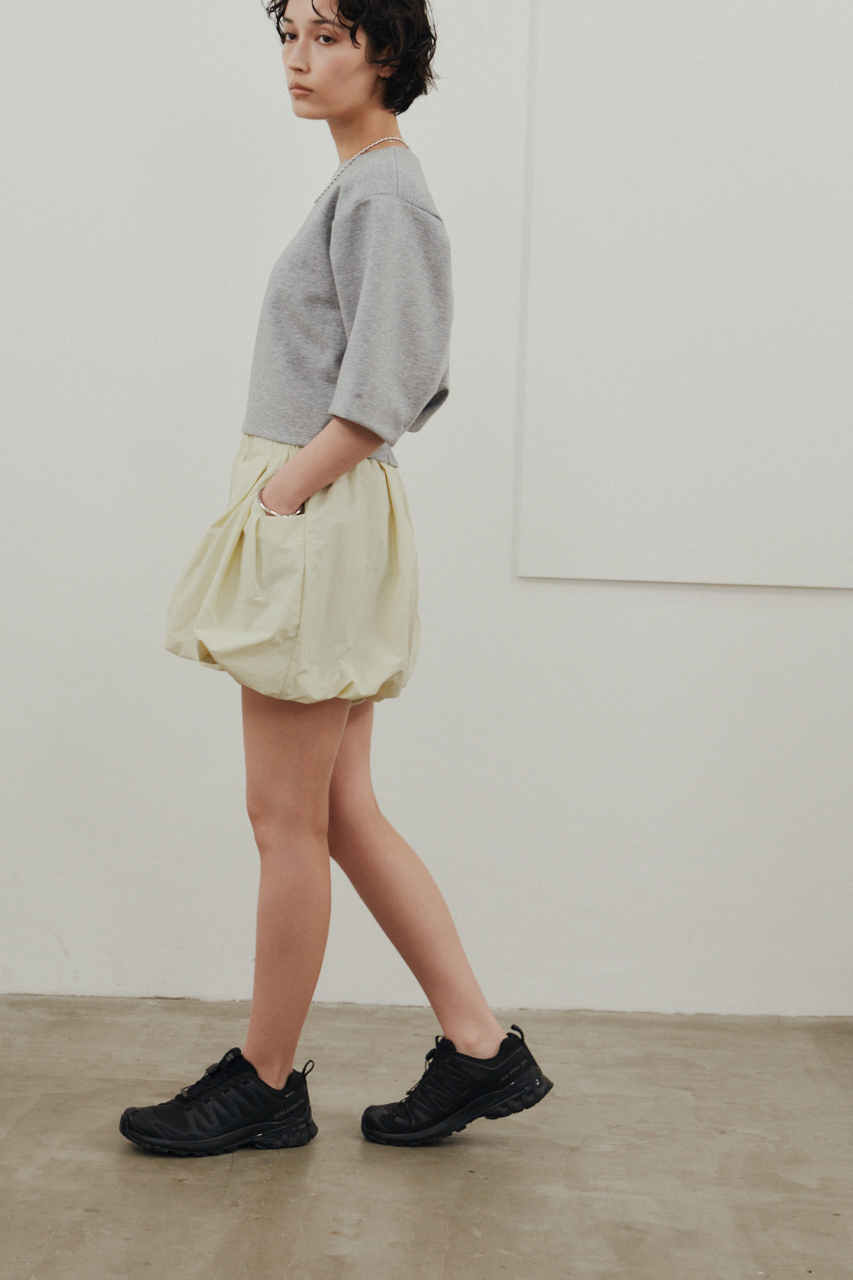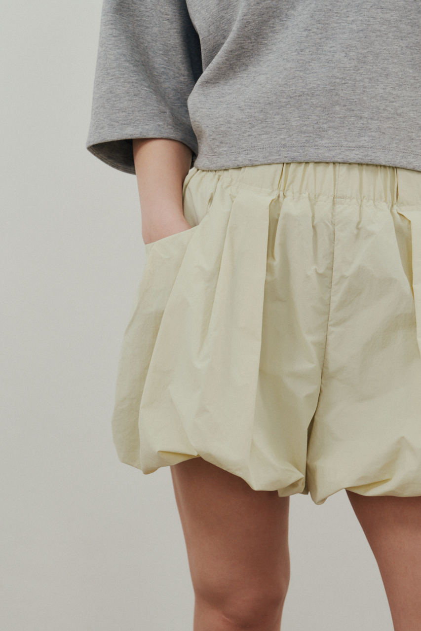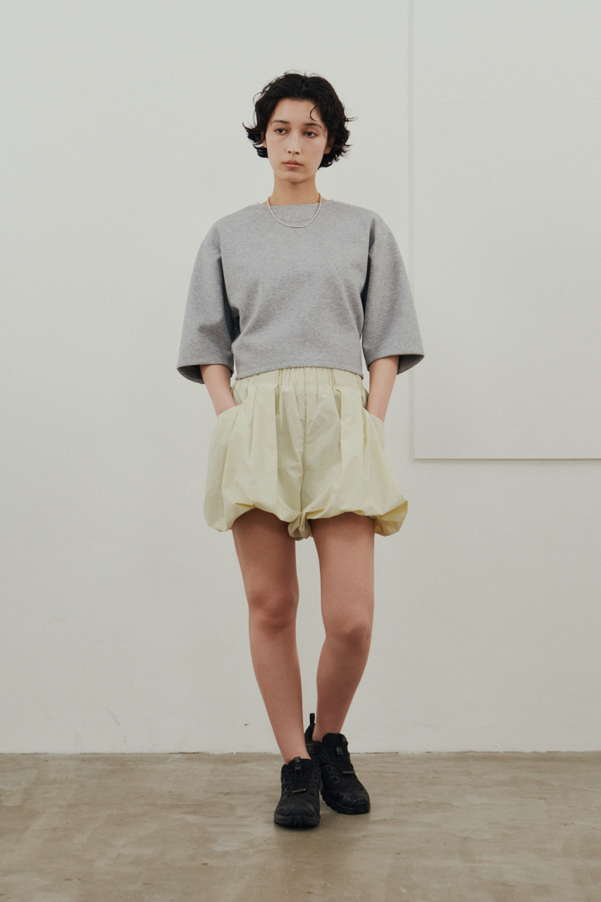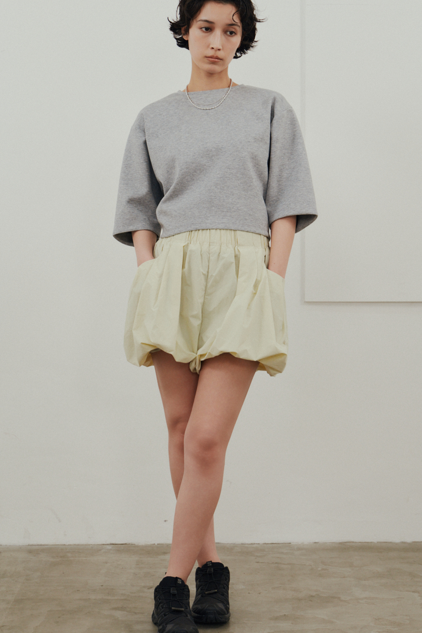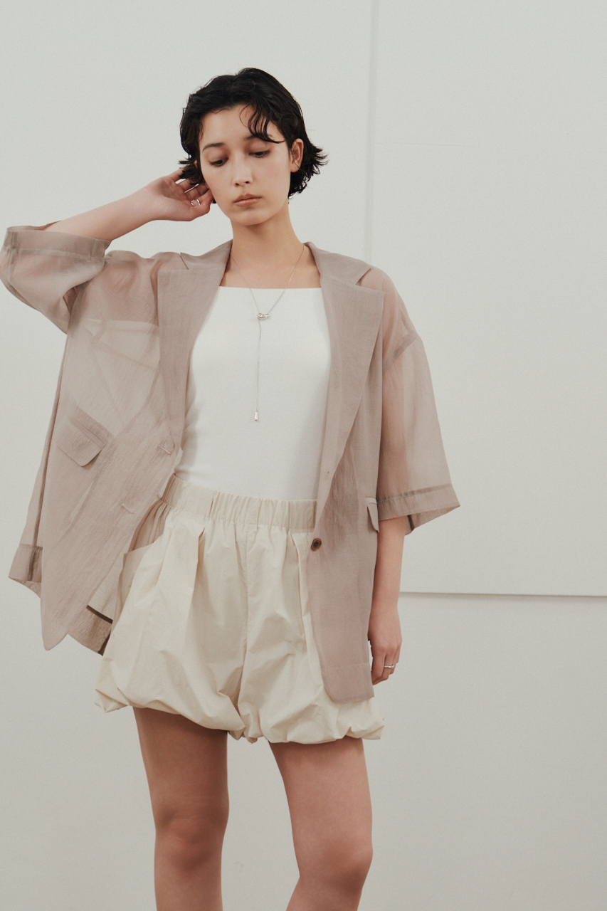 ハリのあるナイロン素材にUVカットと撥水加工を施したバルーンショートパンツ。裏地にはメッシュ素材を使用し、夏でも快適な履き心地を叶えます。ウエストタック奥はホールあきになっており、お好みでベルトを通したスタイリングも楽しめます。デイリーからアウトドアなど様々なシーンで活躍するショートパンツです。ウエストがゴム仕様で、内側の紐でサイズ調節が可能。透け感IVOYややあり、ストレッチなし。