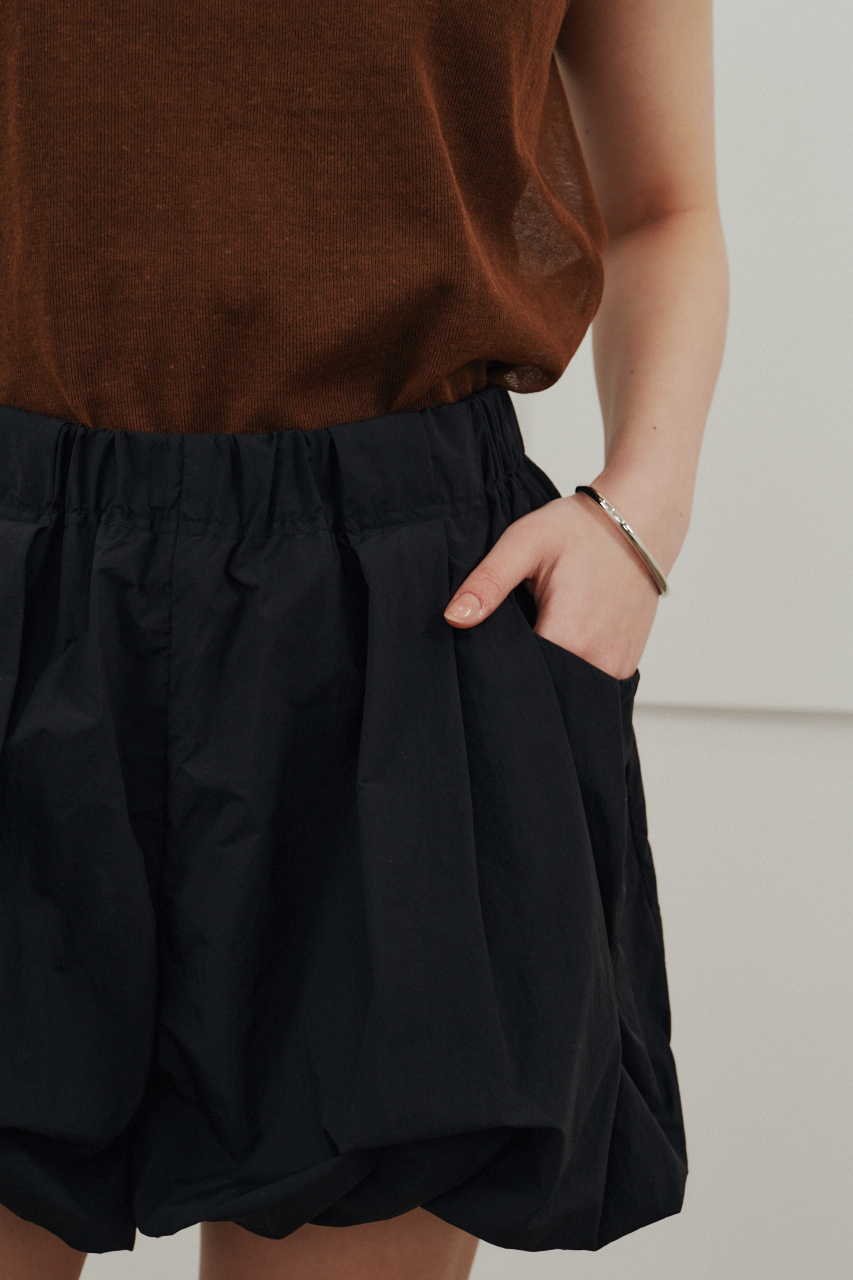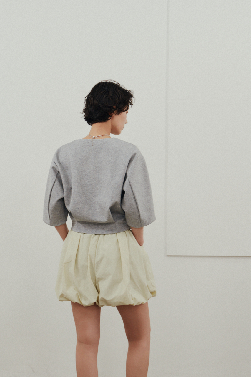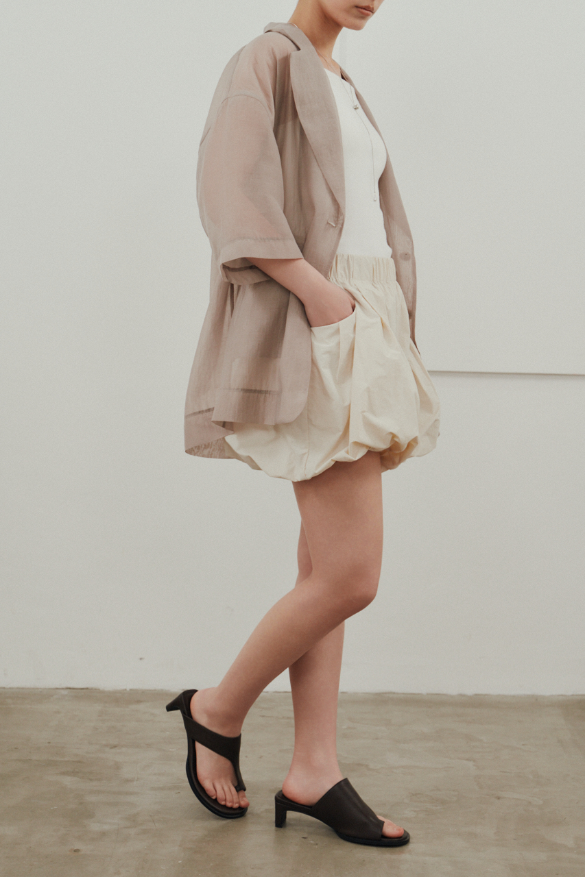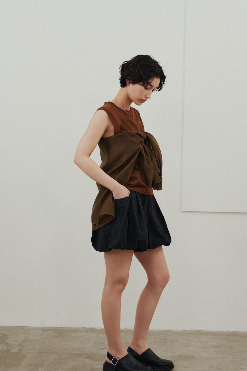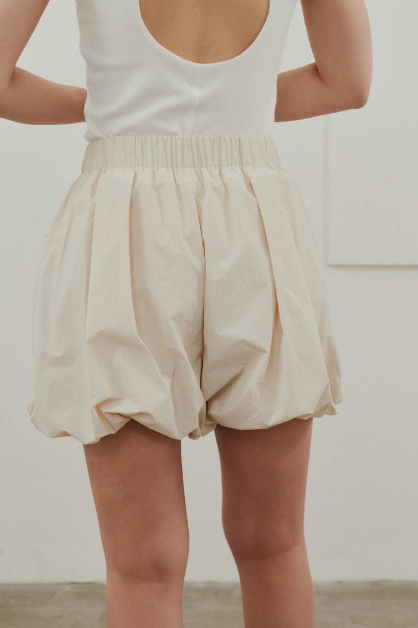 ハリのあるナイロン素材にUVカットと撥水加工を施したバルーンショートパンツ。裏地にはメッシュ素材を使用し、夏でも快適な履き心地を叶えます。ウエストタック奥はホールあきになっており、お好みでベルトを通したスタイリングも楽しめます。デイリーからアウトドアなど様々なシーンで活躍するショートパンツです。ウエストがゴム仕様で、内側の紐でサイズ調節が可能。透け感IVOYややあり、ストレッチなし。