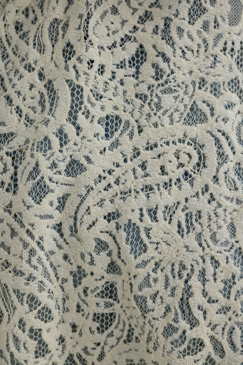 起毛レースを使用したトレンドのレースラップスカーフ。サテン素材でトリミングし上品な印象に仕上げました。ボトムスの上から巻くだけでぐっとこなれた印象に導きます。500JSA70-0251(ニュアンスレースニットカーデ)とのスタイリングもおすすめです。ストレッチなし、透け感あり。