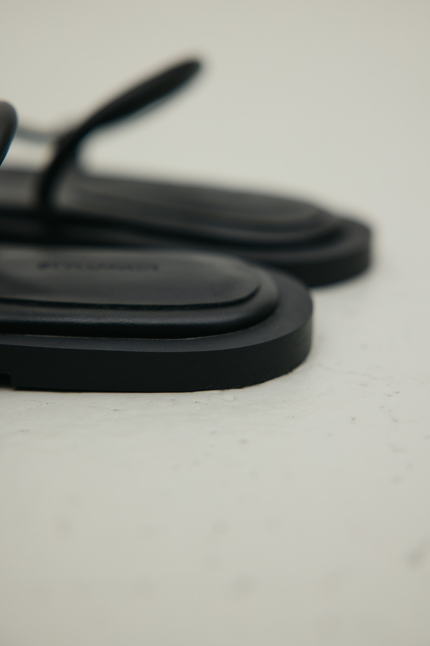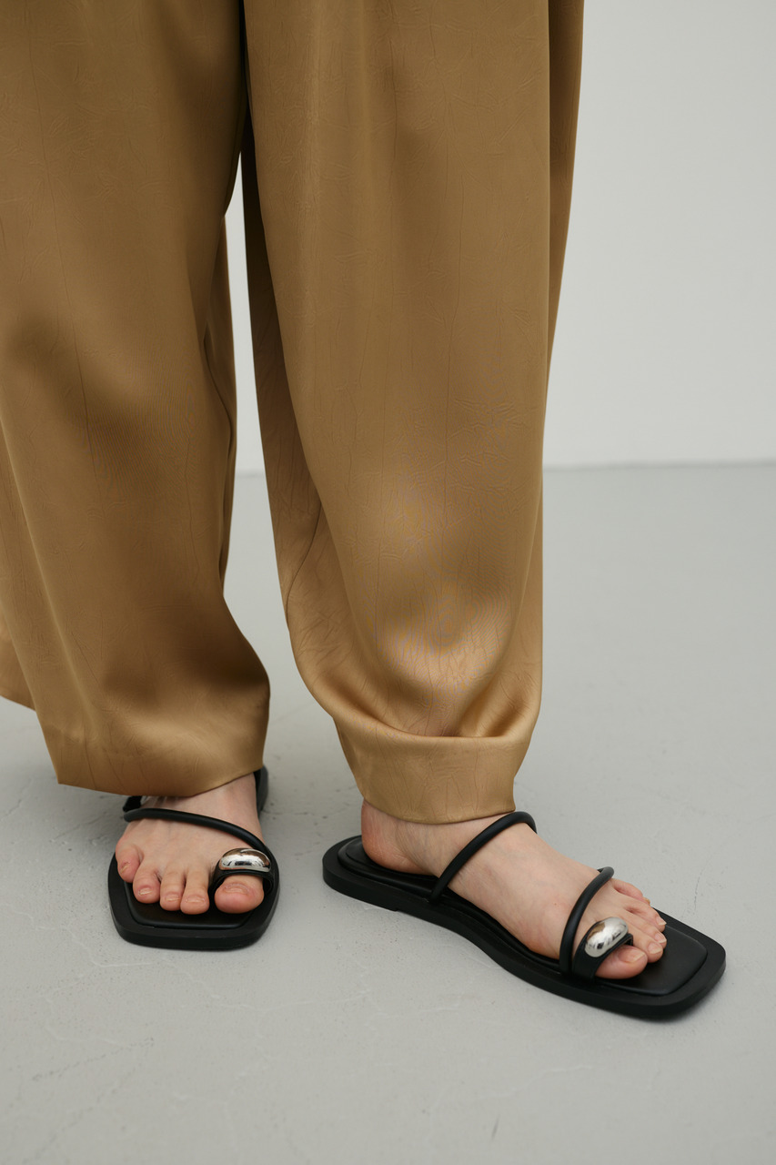 親指部分にあしらったメタルモチーフが目をひくフラットサンダル。シンプルなデザインに程よいアクセントを加え、足元を上品に引き締めます。フラット仕様で歩きやすく、デイリー使いにもぴったり。カジュアルからきれいめまで幅広いスタイリングにマッチする一足です。
