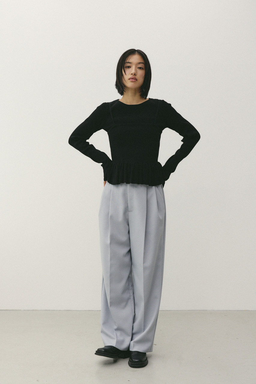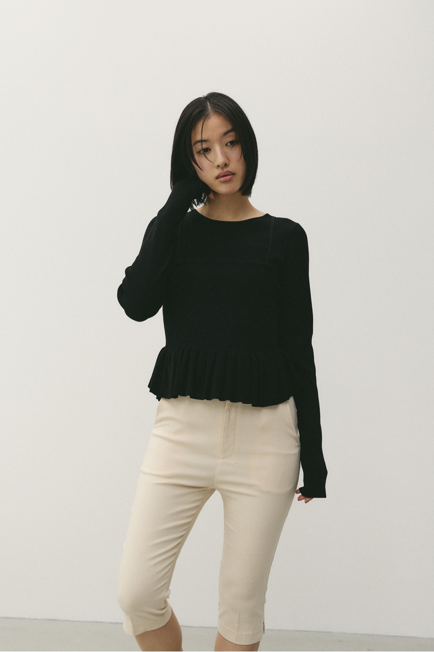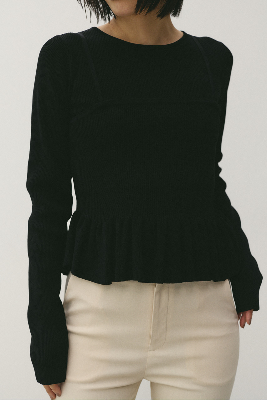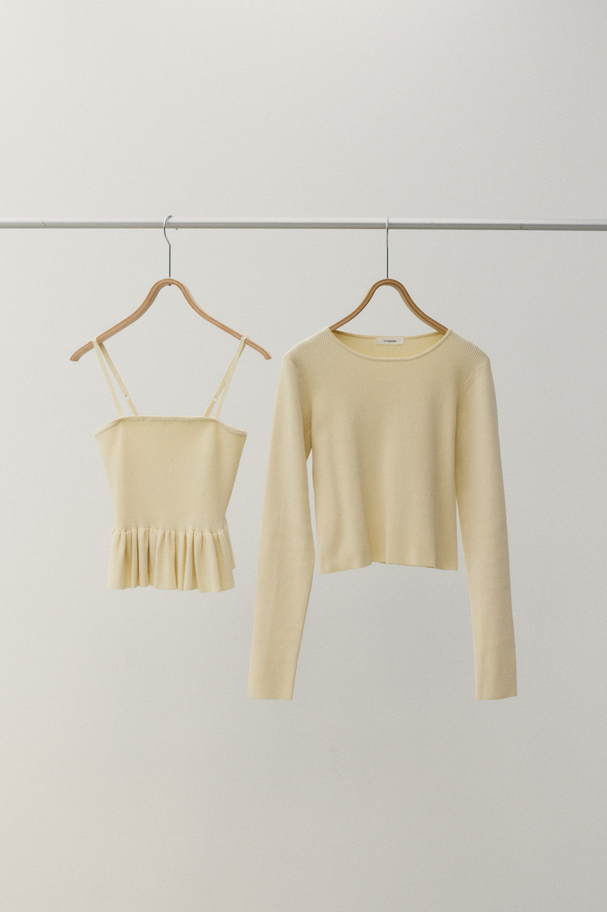 ペプラムキャミソールとコンパクトなリブトップスがセットになった、着回し力の高いセットアイテム。立体感のあるペプラムシルエットが女性らしさを演出しつつ、シンプルなリブトップスとの組み合わせで甘さを程よく抑えたデザイン。それぞれ単品使いも可能なため、スタイリングの幅が広がるのも嬉しいポイント。キャミソールには肩紐の長さを調整できるアジャスター付きで、バランスよく着用いただけます。ストレッチあり、透け感なし