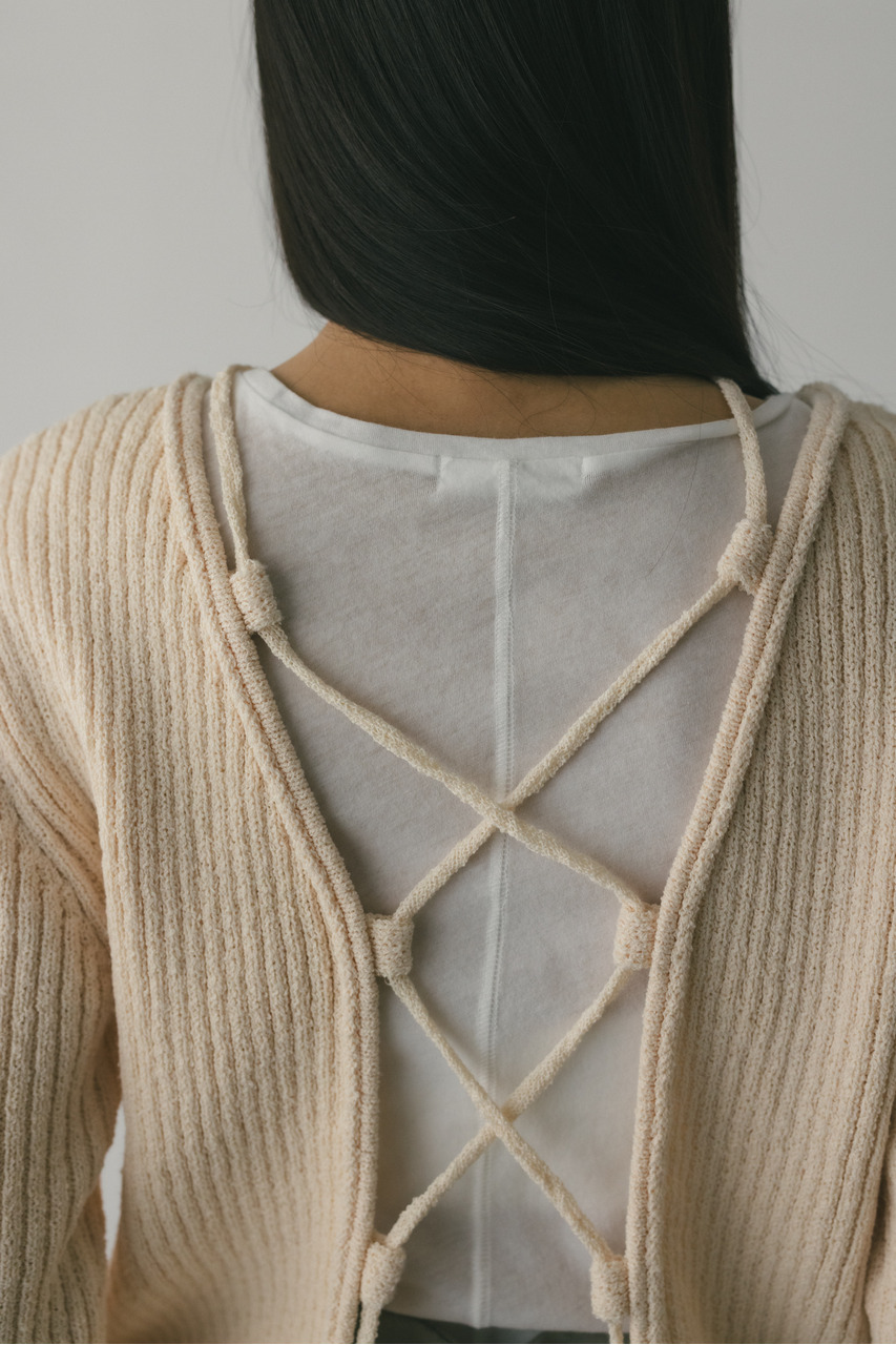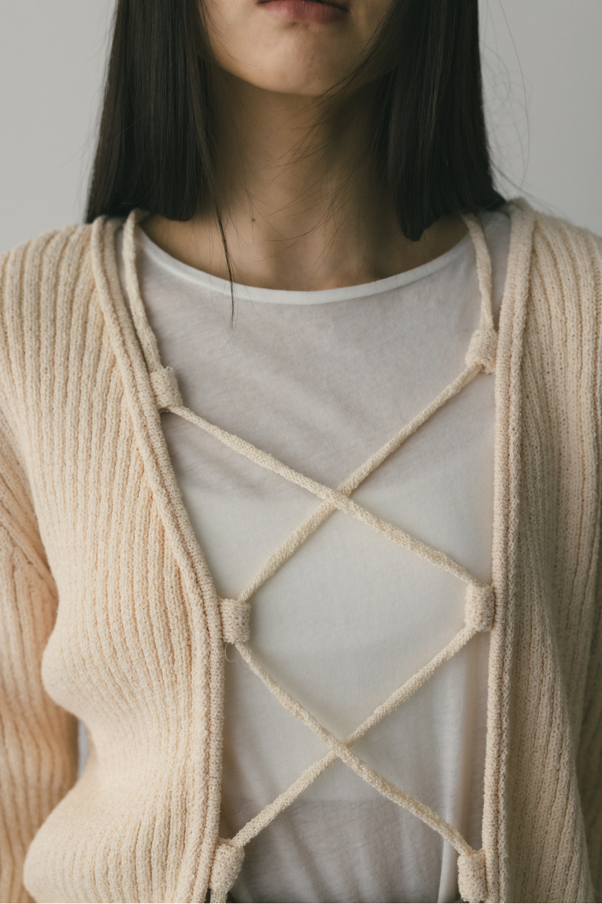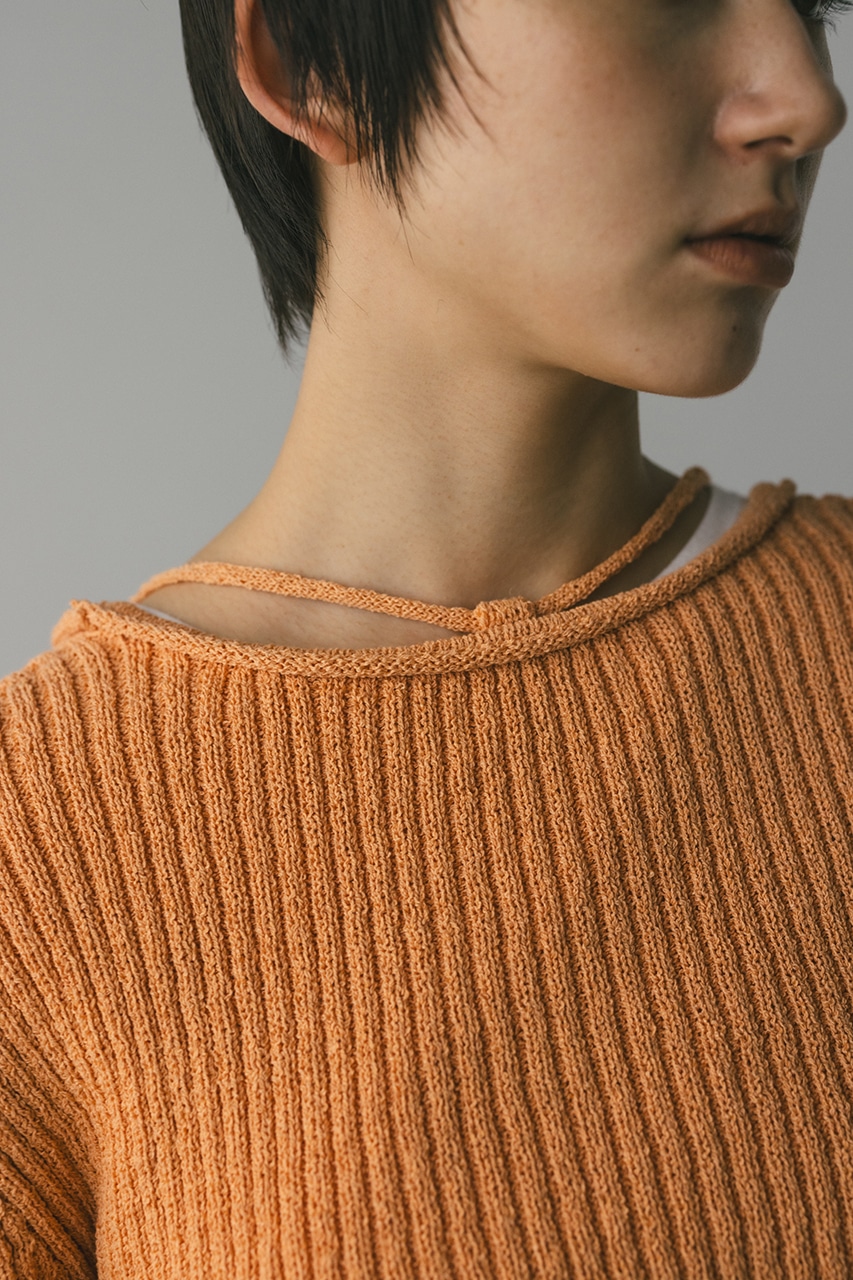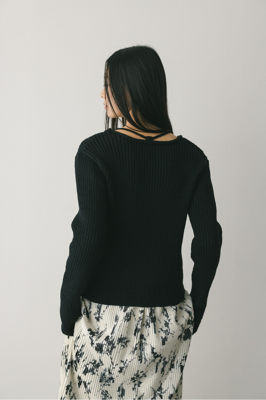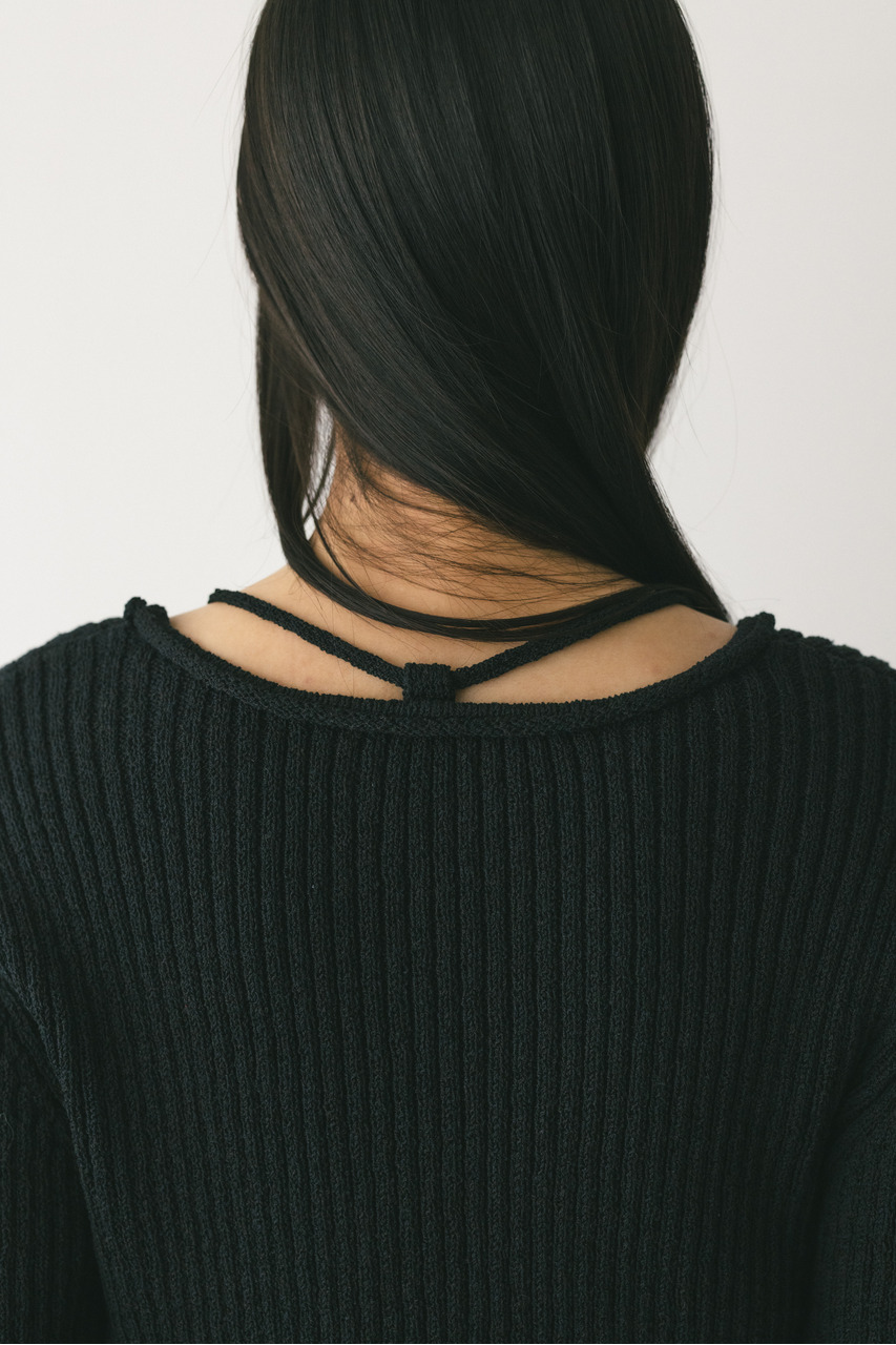 レースアップリブニットトップ