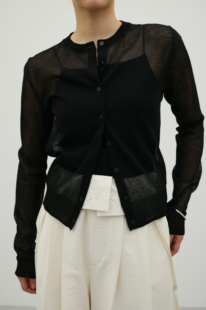 ドライタッチで程よいハリ感にこだわりぬいたリネン混のニットカーディガン。ルーズなサイズ感で抜け感もあり。Tシャツやタンクトップの上に羽織るのはもちろん、ボタンを閉じてプルオーバー風に着るのもおすすめ。ベーシックなデザインで、デイリーからきれいめスタイルまで幅広く合わせやすいアイテムです。透け感あり、ストレッチあり。
