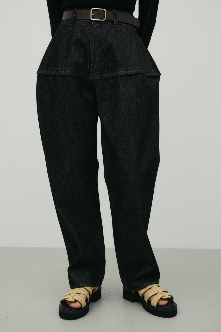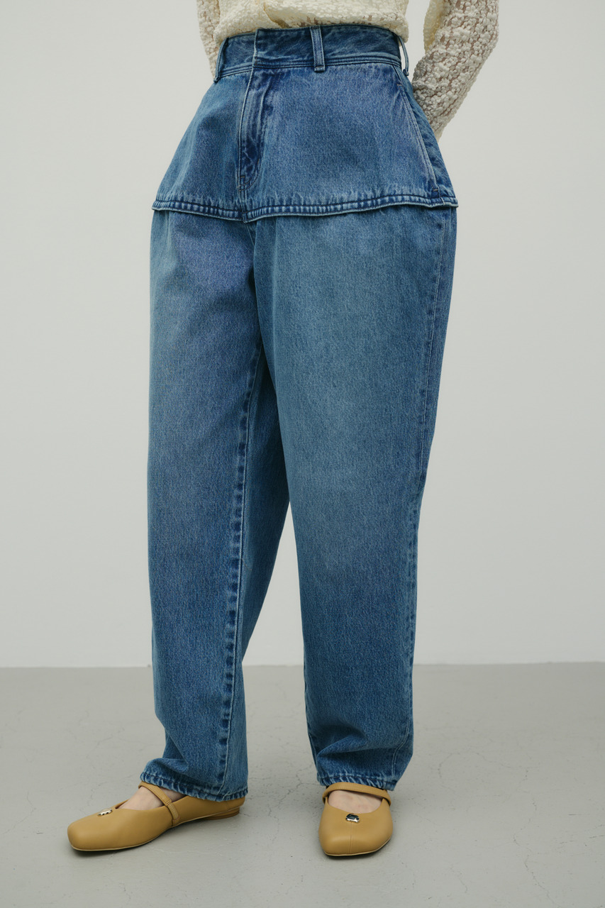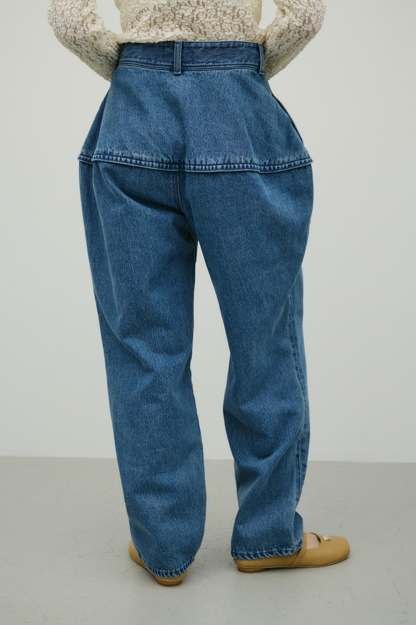 独特のランタンシルエットが特徴のデニムパンツ。加工感のある素材で、こなれた表情を演出しつつカジュアルスタイルにアクセントをプラス。ゆったりとした腰まわりから裾に向かって細くなるランタン型で、動きのあるシルエットが楽しめます。シンプルなトップスと合わせるだけで、トレンド感のあるデイリースタイルが完成する一枚です。透け感なし、ストレッチなし。