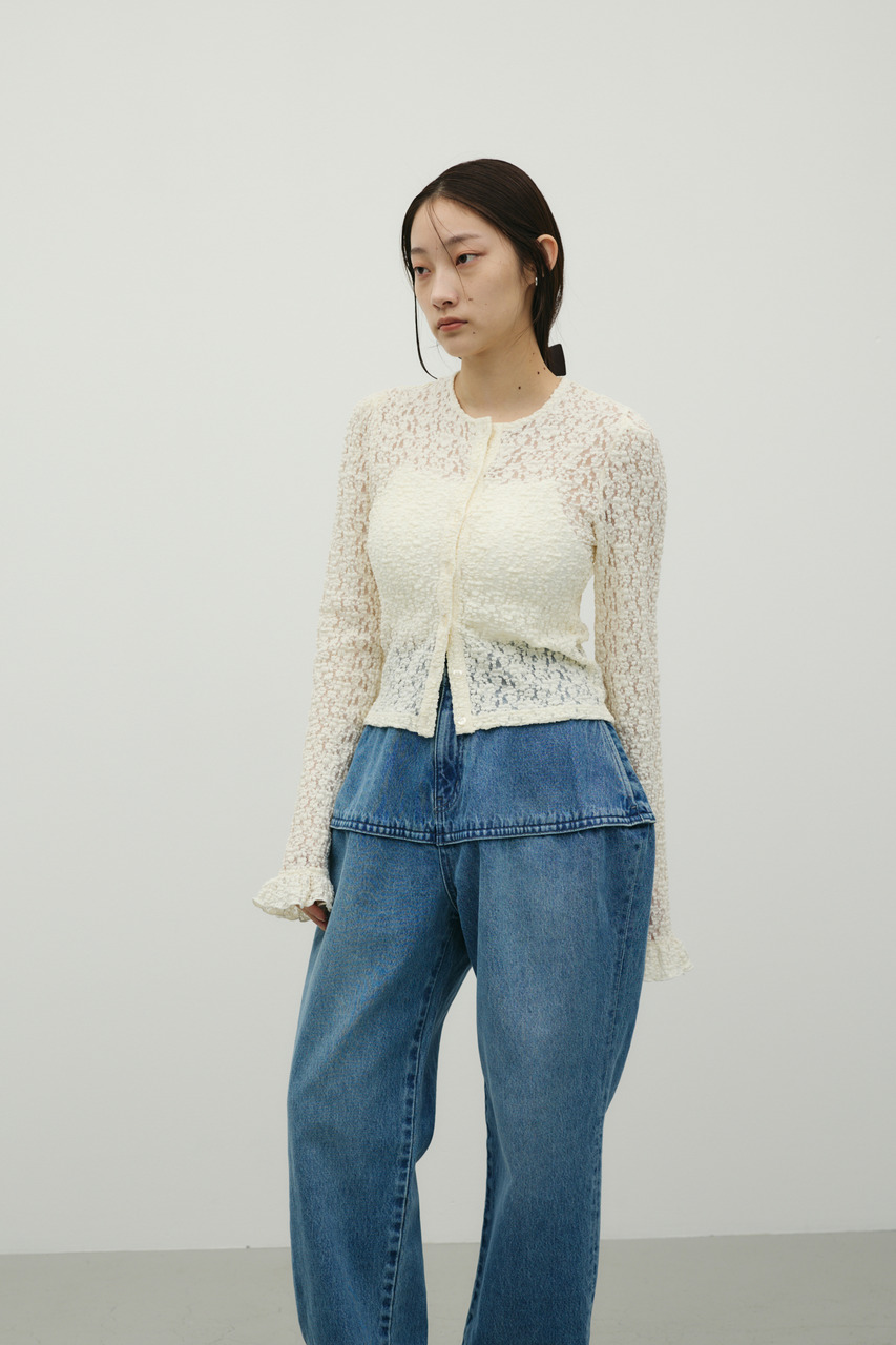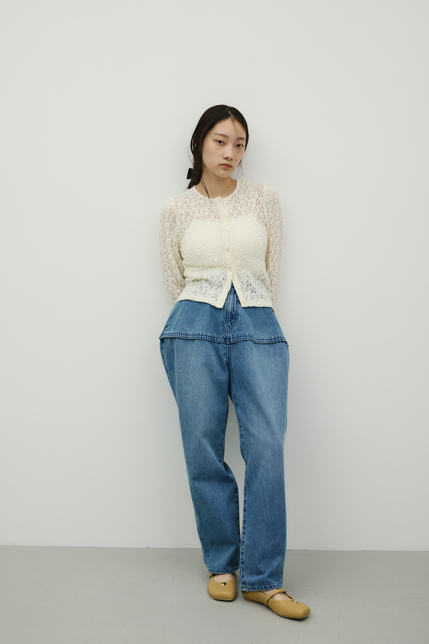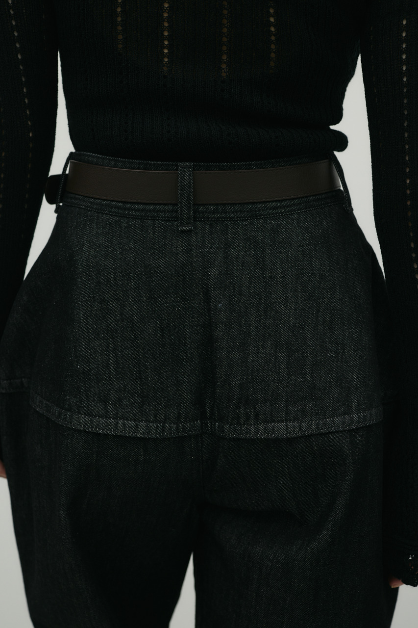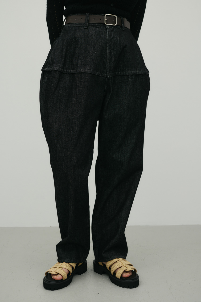 独特のランタンシルエットが特徴のデニムパンツ。加工感のある素材で、こなれた表情を演出しつつカジュアルスタイルにアクセントをプラス。ゆったりとした腰まわりから裾に向かって細くなるランタン型で、動きのあるシルエットが楽しめます。シンプルなトップスと合わせるだけで、トレンド感のあるデイリースタイルが完成する一枚です。透け感なし、ストレッチなし。