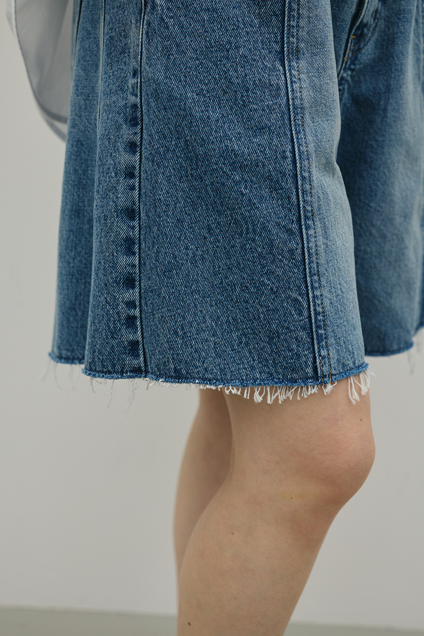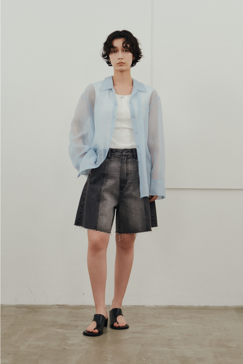 パネルごとにカラー差をつけた立体感のあるリメイク風デザインが魅力のハーフデニム。異なるトーンを組み合わせることで奥行きが生まれ、履くだけでこなれた印象に導きます。シンプルなTシャツと合わせるだけでコーディネートが完成する主役級アイテムで、コンパクトなトップスやショート丈アイテムと合わせるとよりバランスよく着こなせます。ストレッチなし、透け感なし。