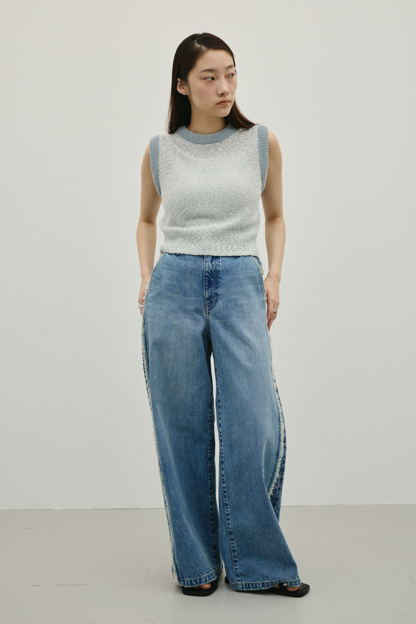 サイドフリンジワイドデニム