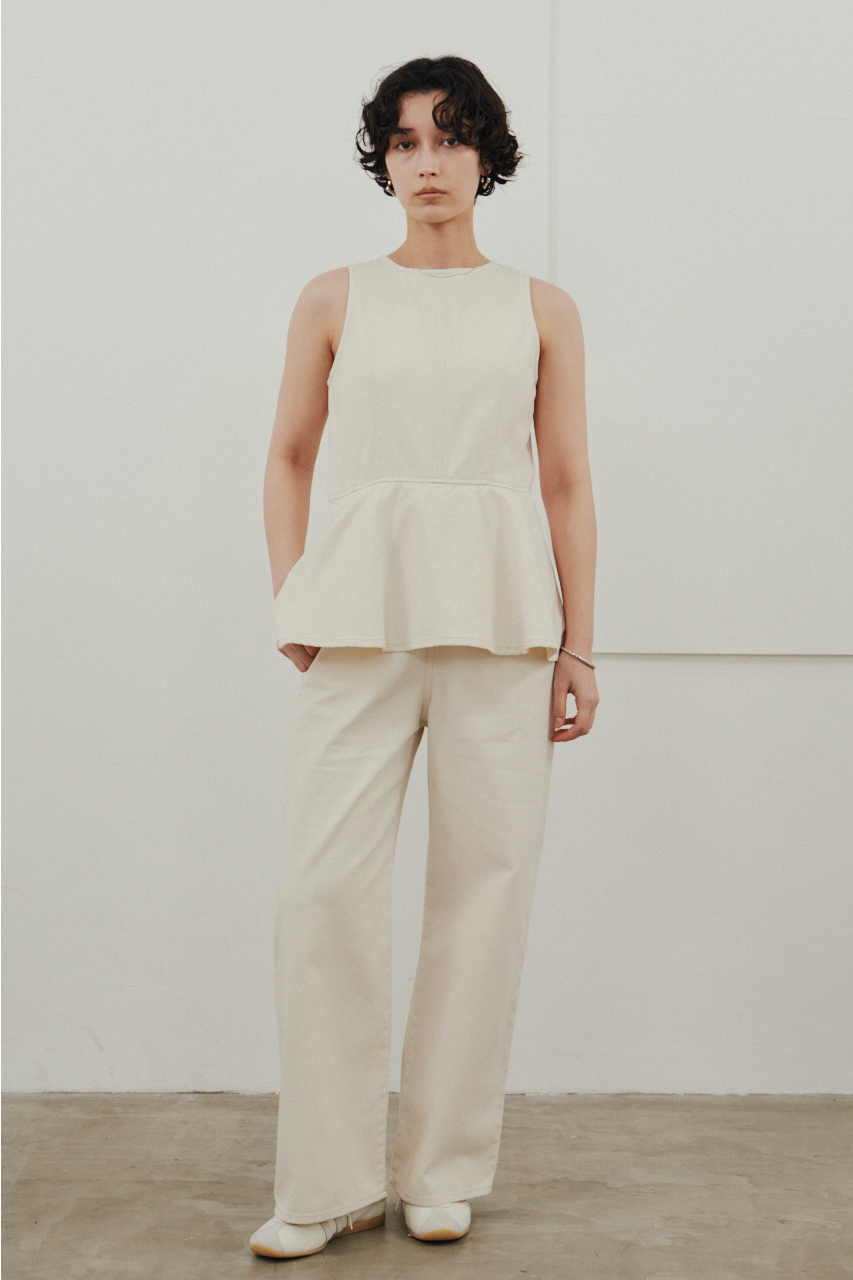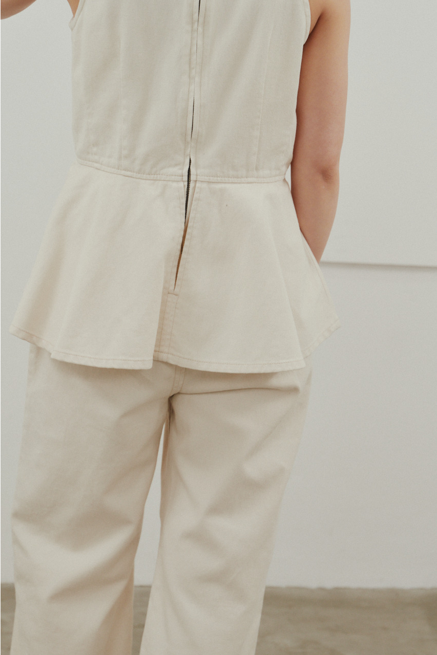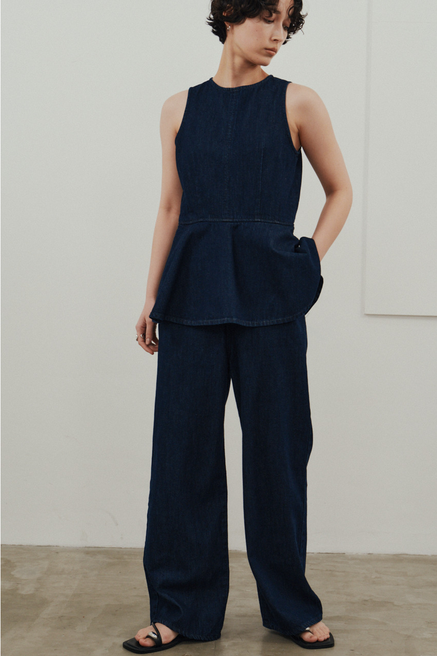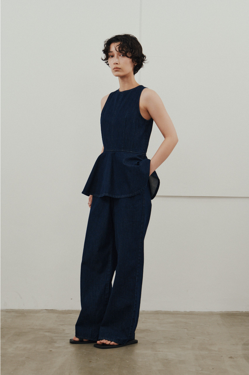 ペプラムデザインをあしらったデニムオールインワン。ウエストまわりは女性らしいシルエットを作りつつ、パンツラインはゆとりのあるストレートで動きやすく快適な着心地に仕上げました。カジュアルながらスタイリッシュに着こなせる一着です。ストレッチなし、透け感なし。