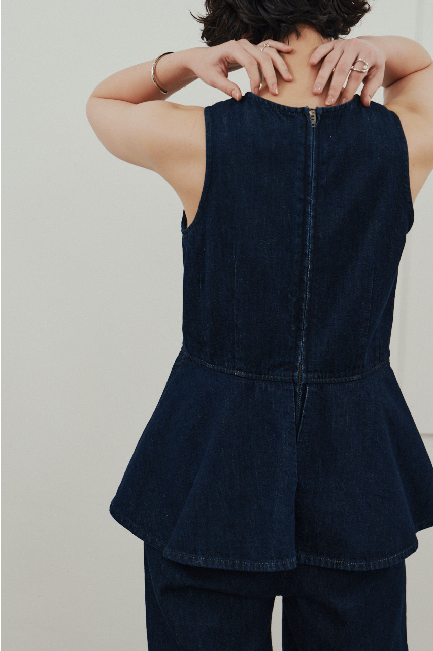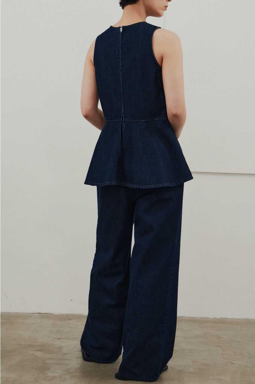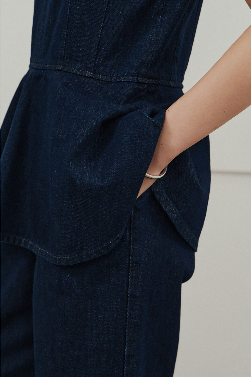 ペプラムデニムオールインワン
