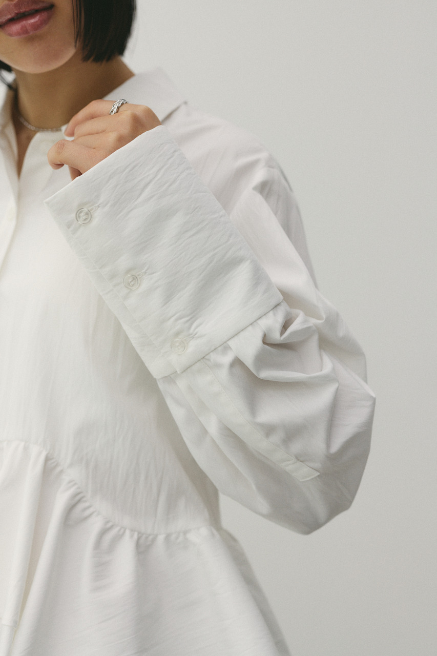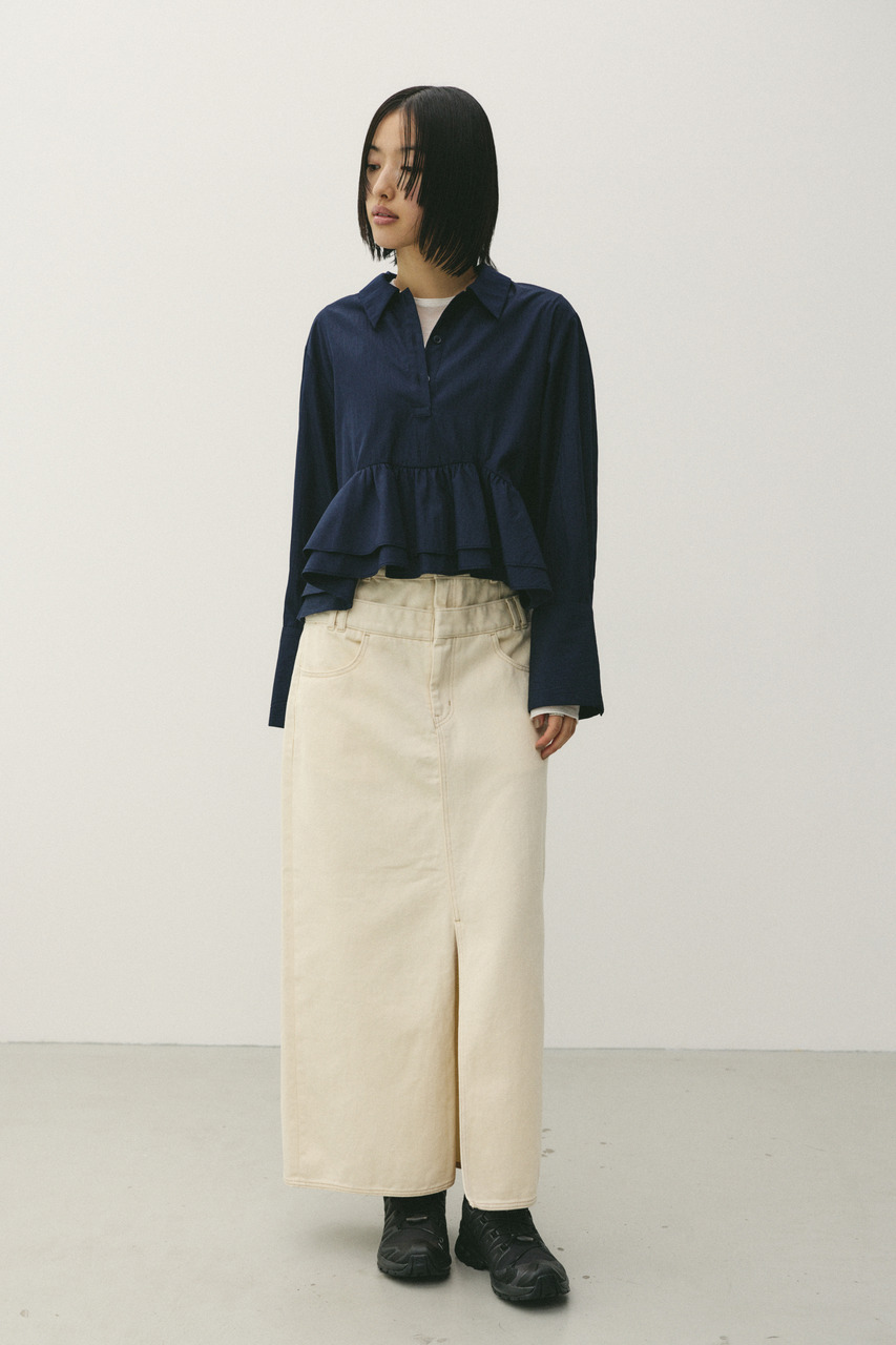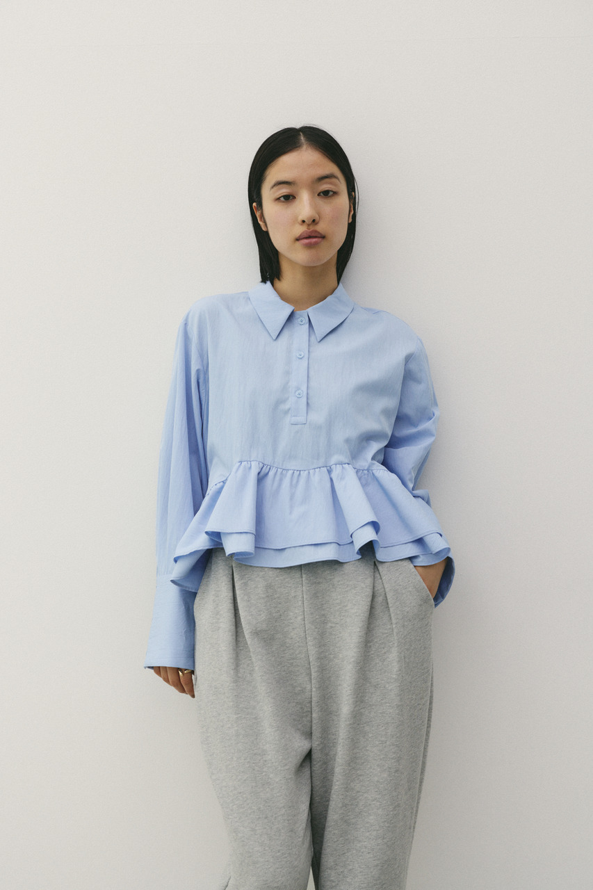 裾のフリルがアクセントになるヘムフリルシャツ。女性らしさをプラスし、デイリーからきれいめまで幅広く活躍します。デニムやワイドパンツと合わせた大人カジュアルスタイルもおすすめ。一枚で主役になる、着映えトップスです。透け感WHTややあり、ストレッチなし。
