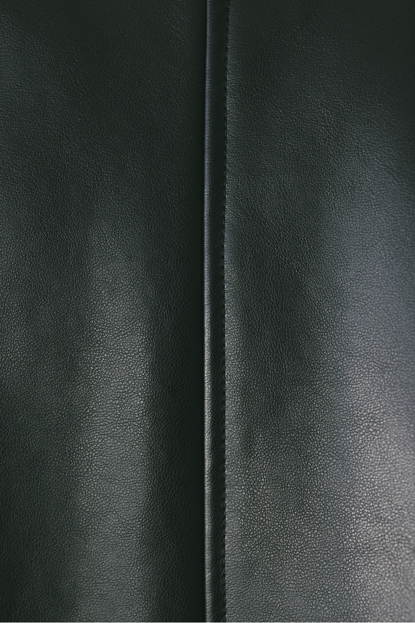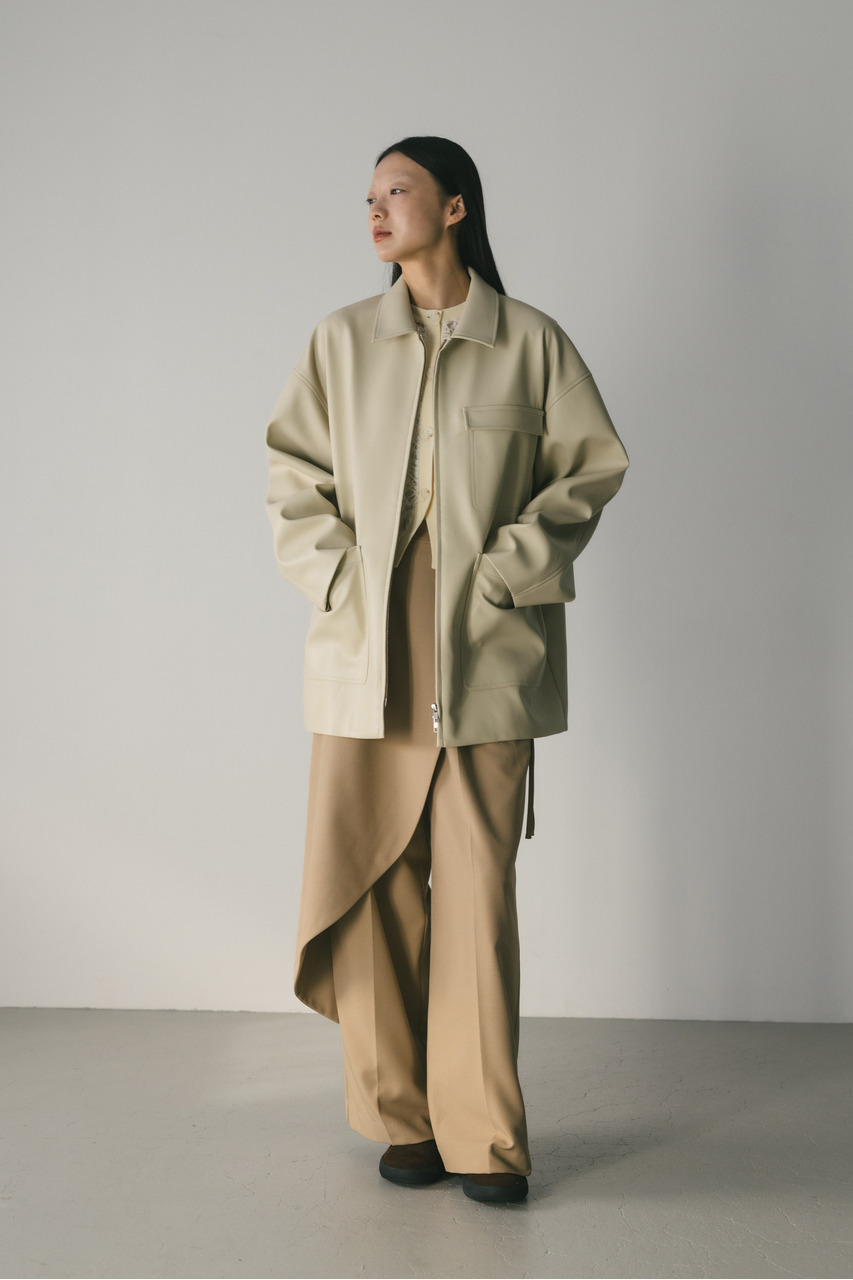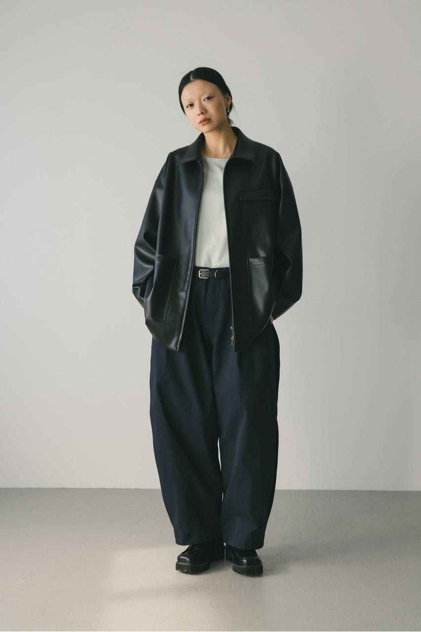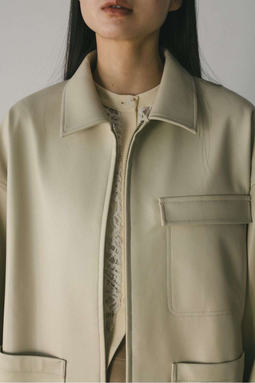 すっきりとした襟とオーバーなサイズ感がポイントのレザージャケット。タックを施した丸みのある背中のシルエットとボリューム感のある袖が可愛いアウター。ビッグポケットがデザインポイント。シンプルながらも存在感のあるシルエットが、洗練された印象を与えます。柔らかなフェイクレザー素材は馴染みやすく、重ねても羽織りやすい一枚。ヒップラインが隠れる長め丈で、気になる腰回りもカバーしてくれます。ストレッチ無し、透け感なし。