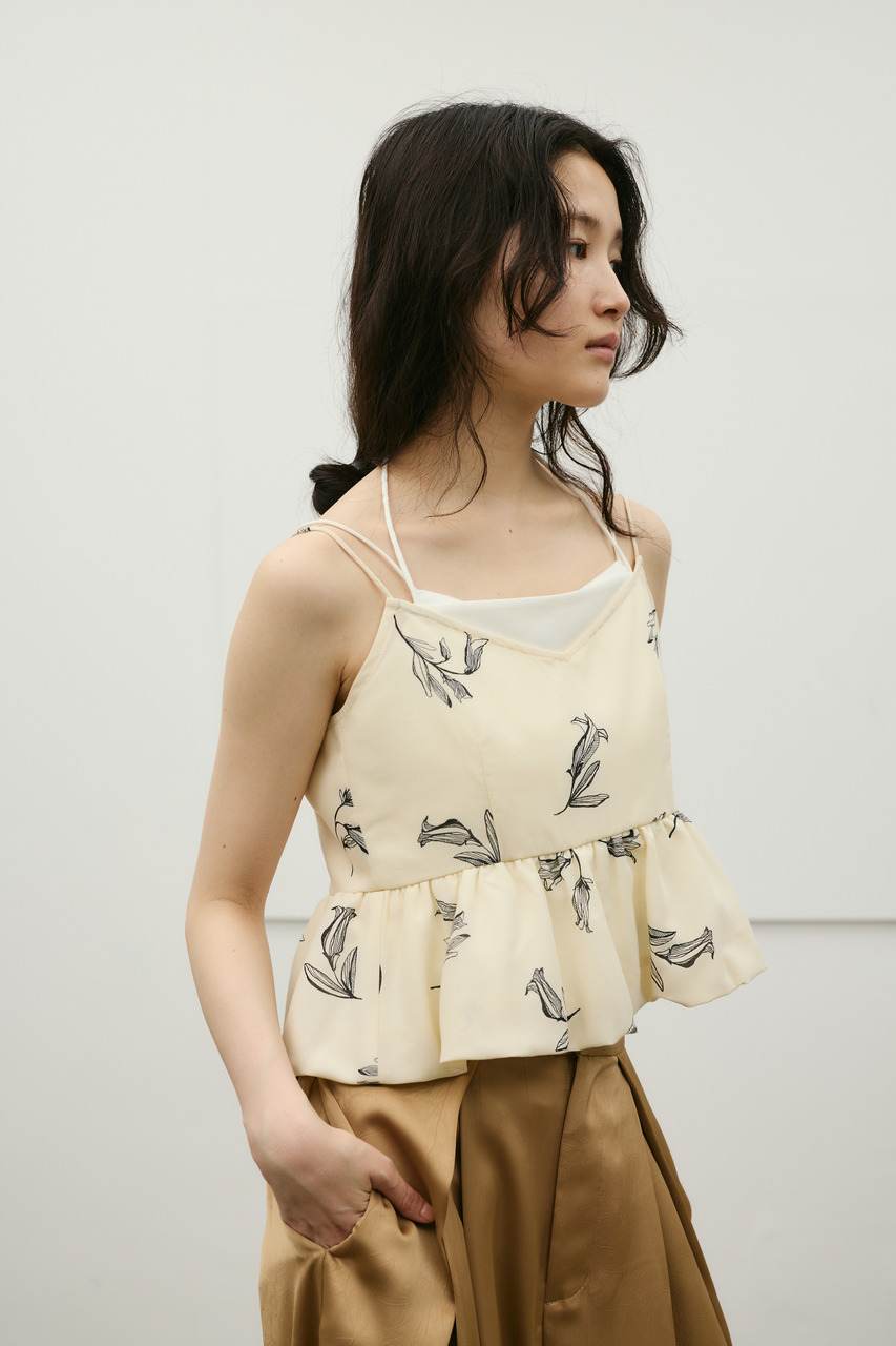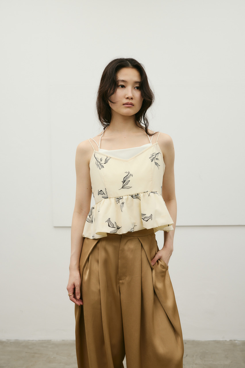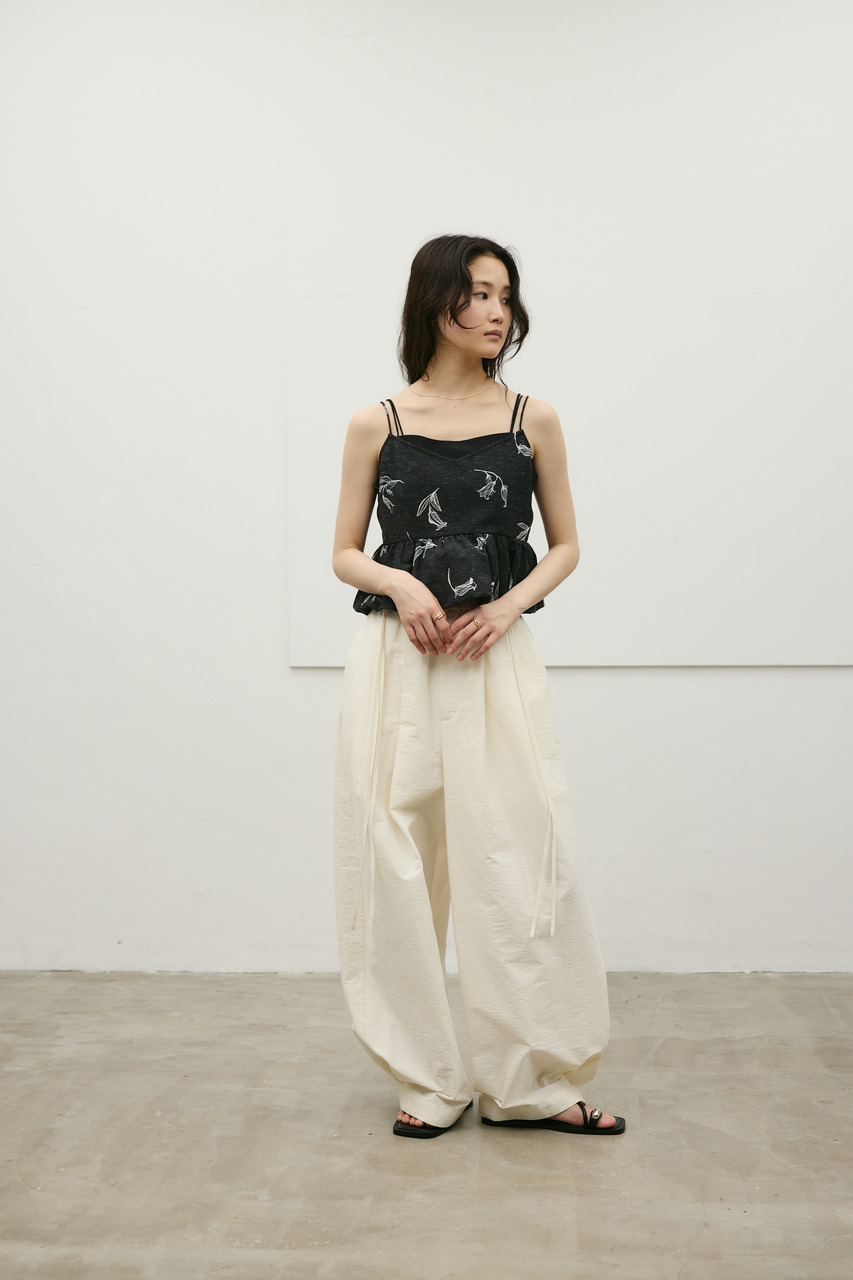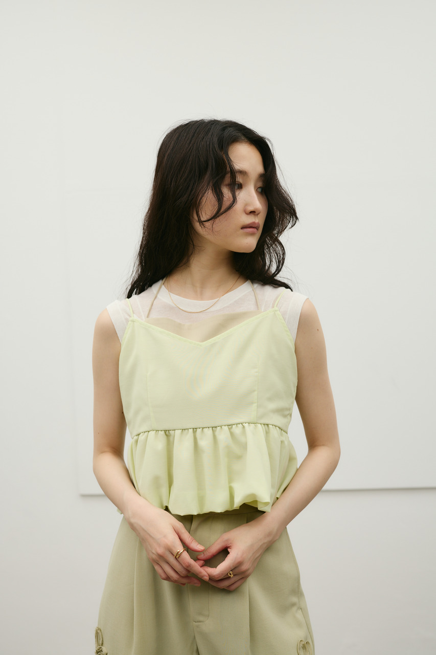 キャミソールをレイヤードしたようなデザインが印象的なリネンミックスバルーンキャミ。