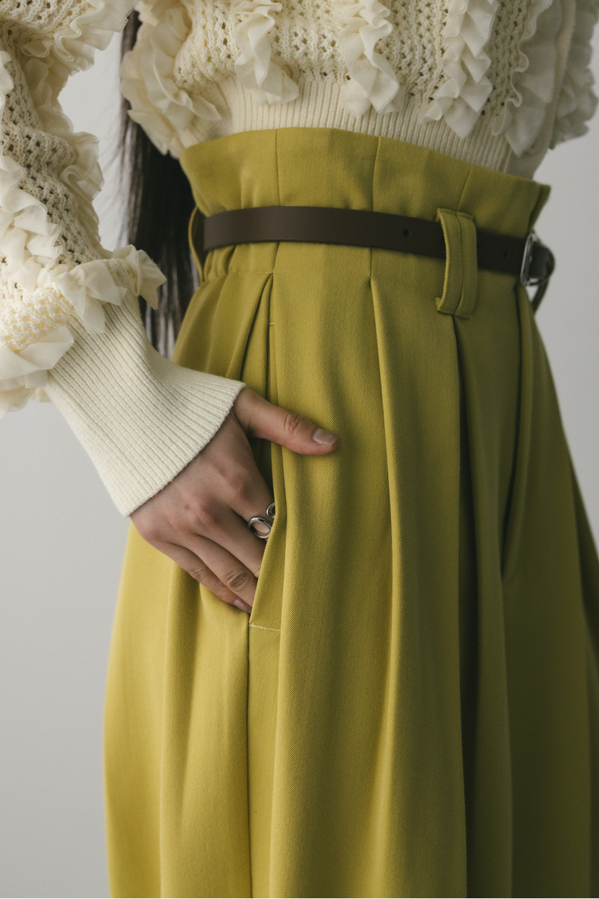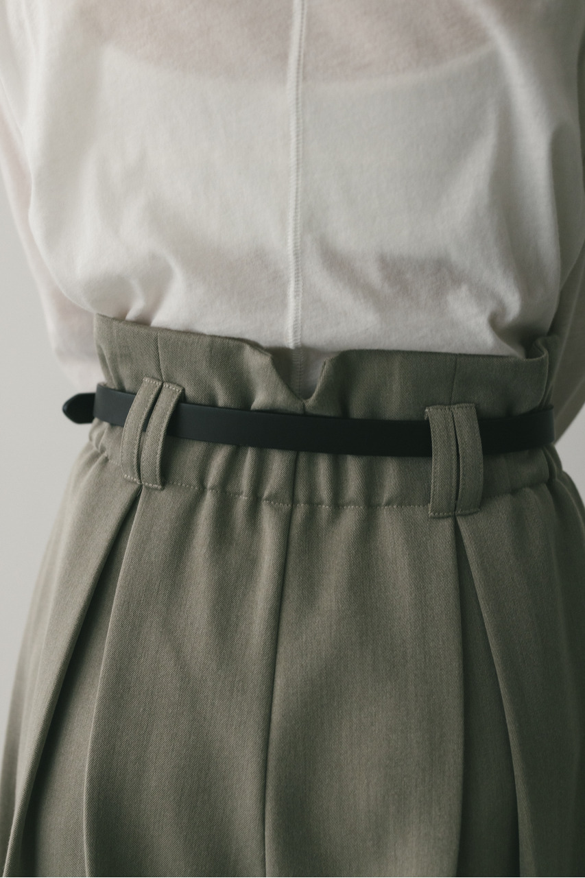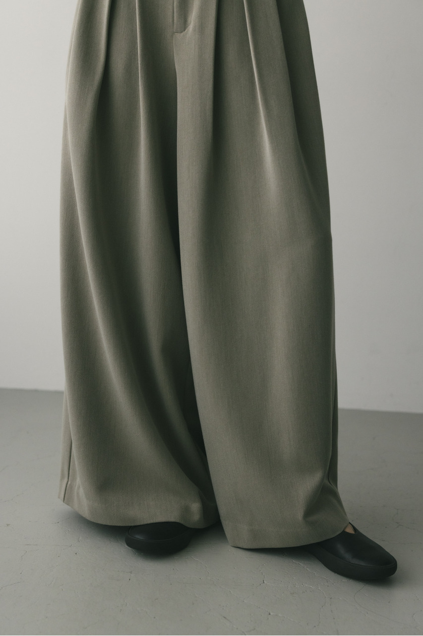 フロントにタックを入れ、しっかりとワイドシルエットに仕上げたモード感のあるハンサムなワイドスラックス。シワになりにくいしなやかな素材を使用しており着回し力抜群な一枚です。トップスインしてすっきり着こなすのもおすすめです。ストレッチなし、透け感なし。