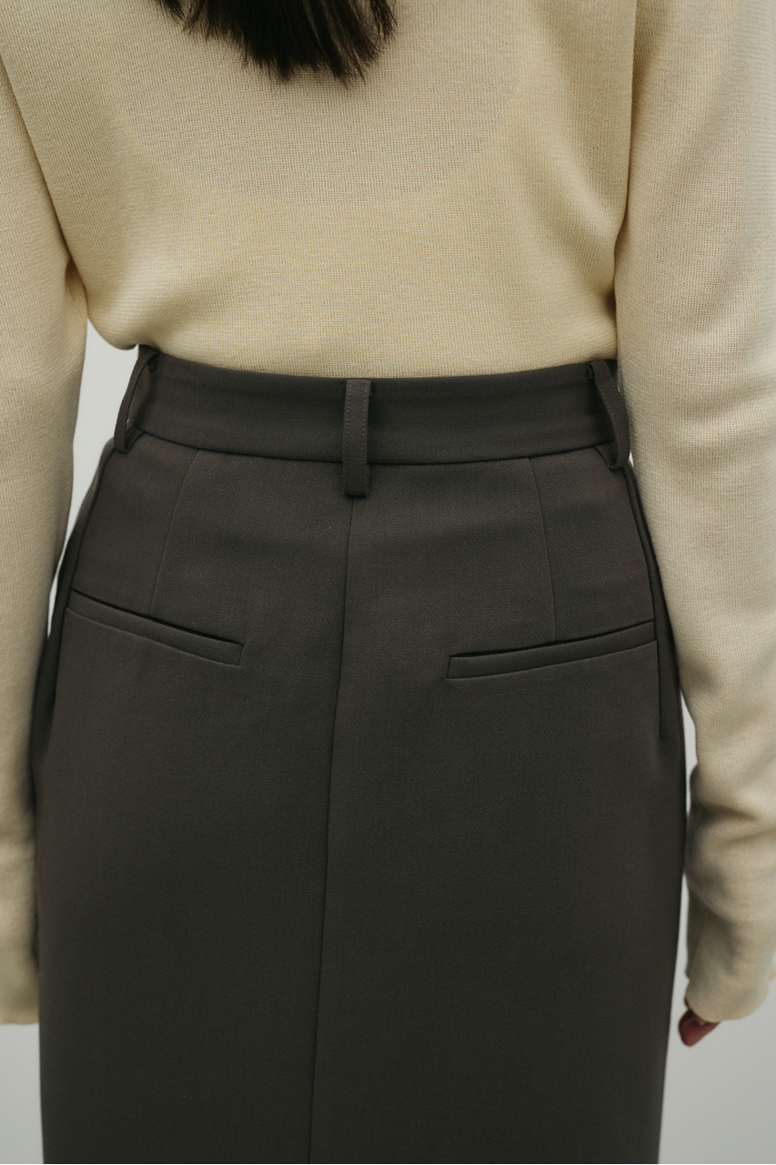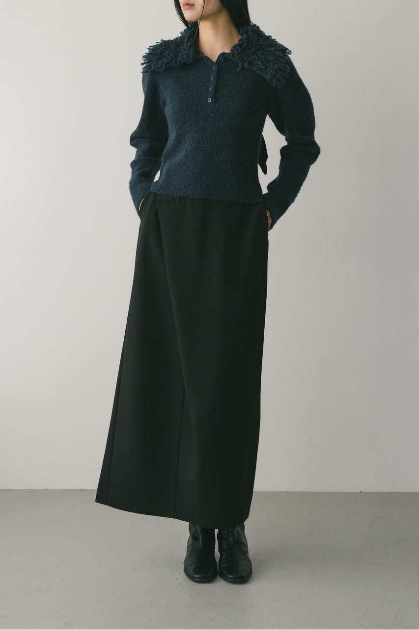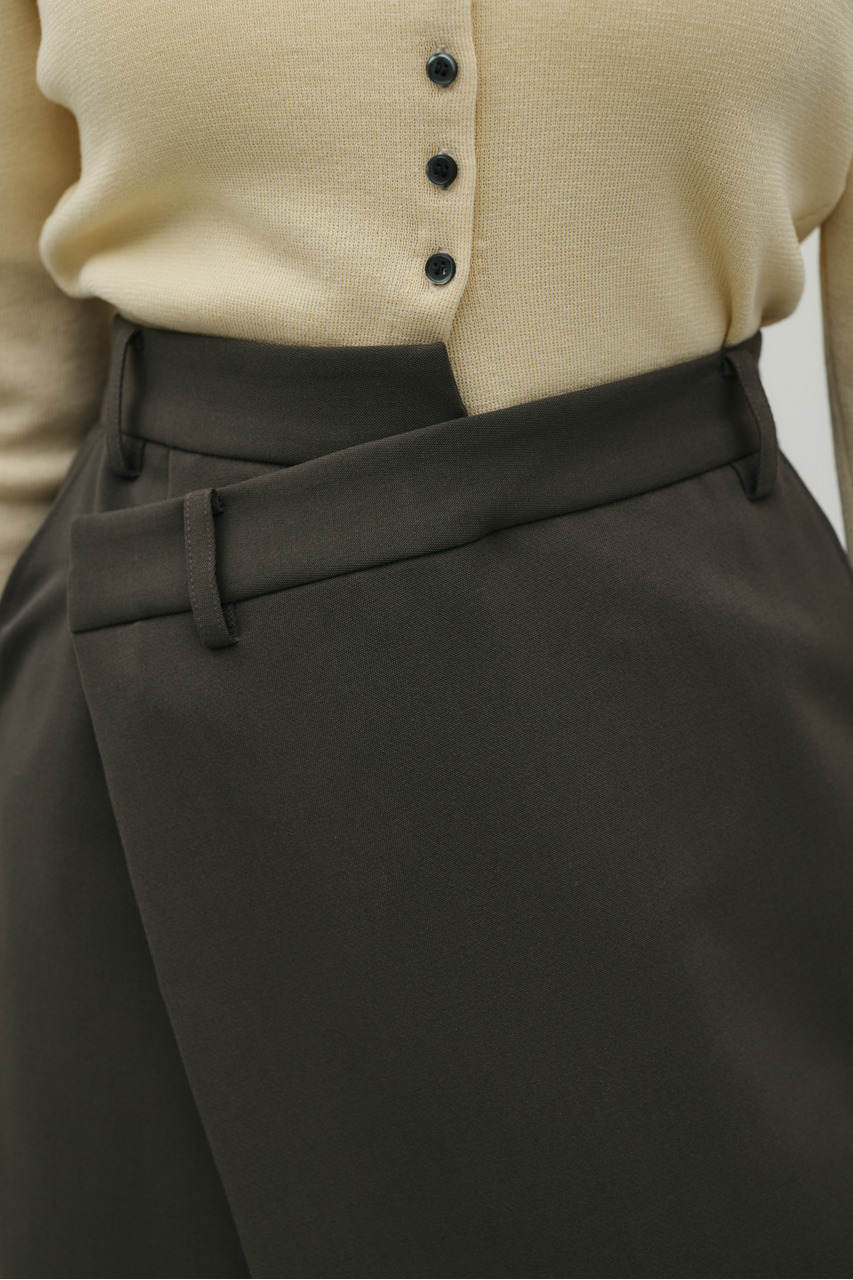 着るだけで映えるラップ風デザインスカート。すっきりとしたIラインシルエットでスタイルアップ見えが叶う一枚。シンプルなトップスとも合わせやすく、着回し力の高いアイテムです。透け感なし、ストレッチなし。