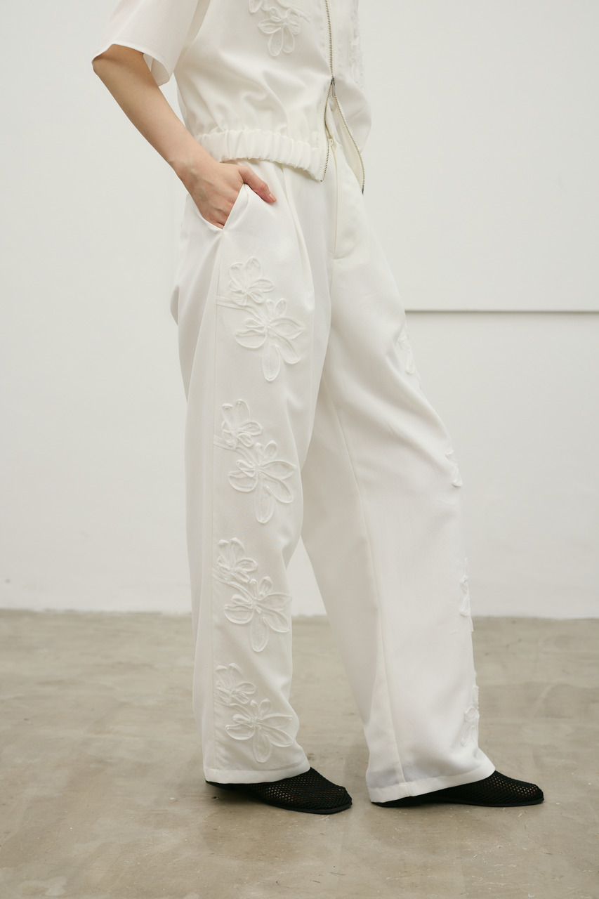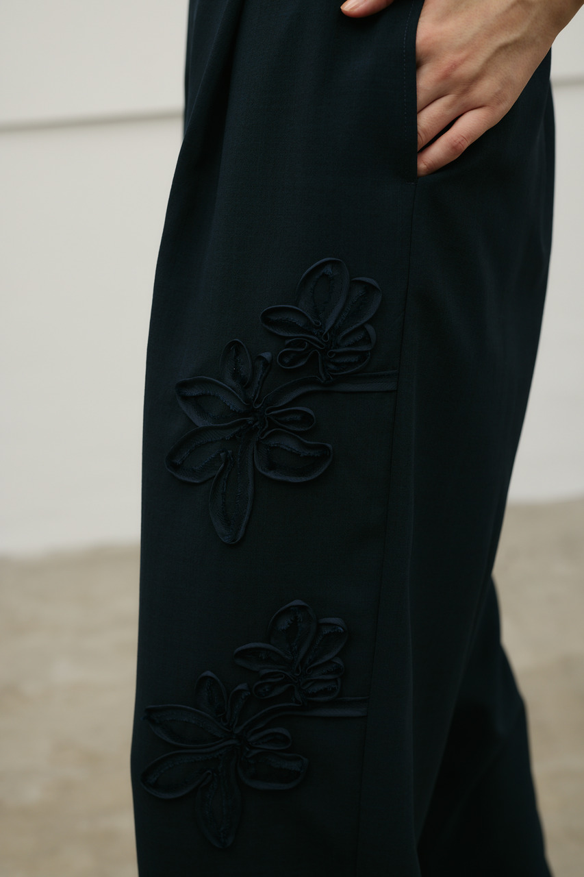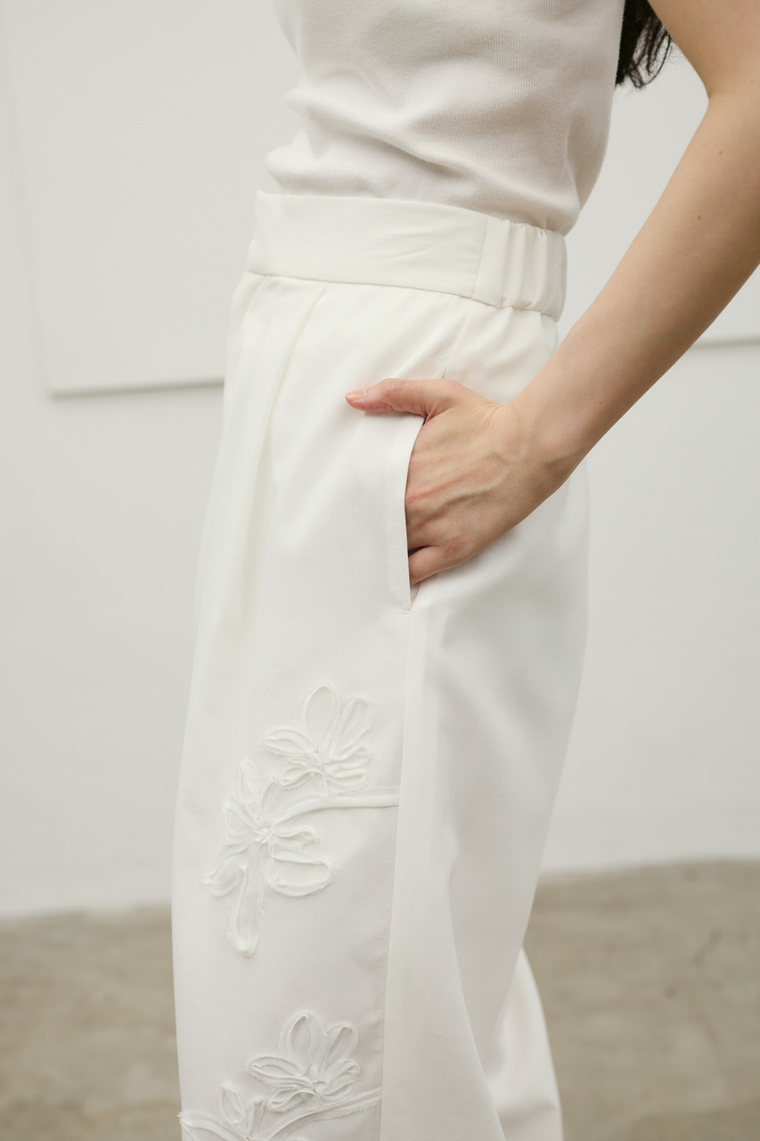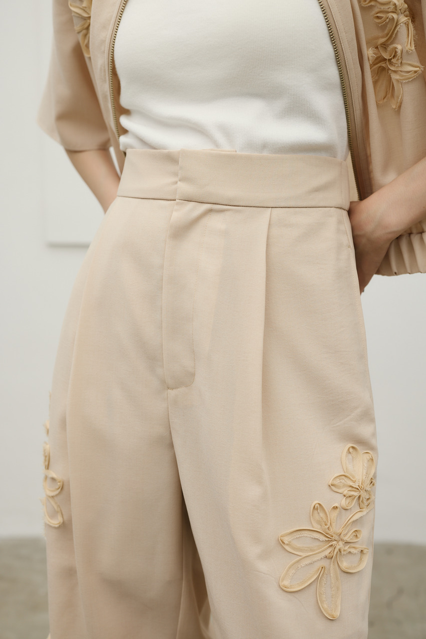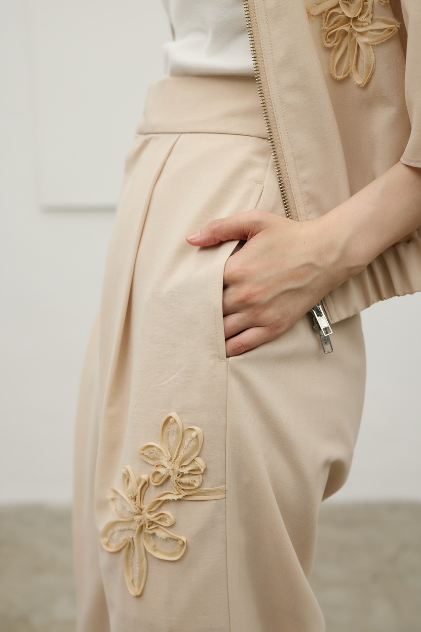 フラワーエンブロイダリータックパンツ