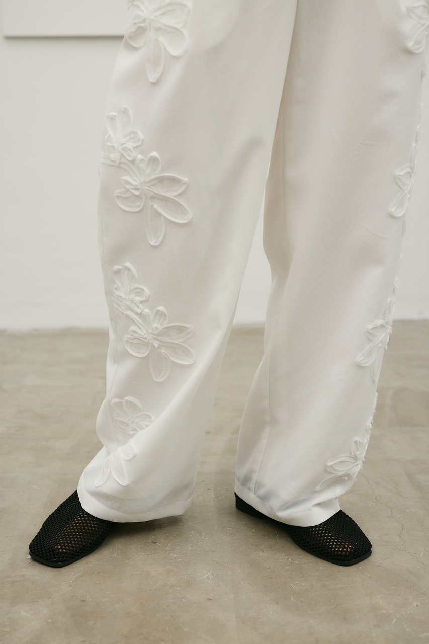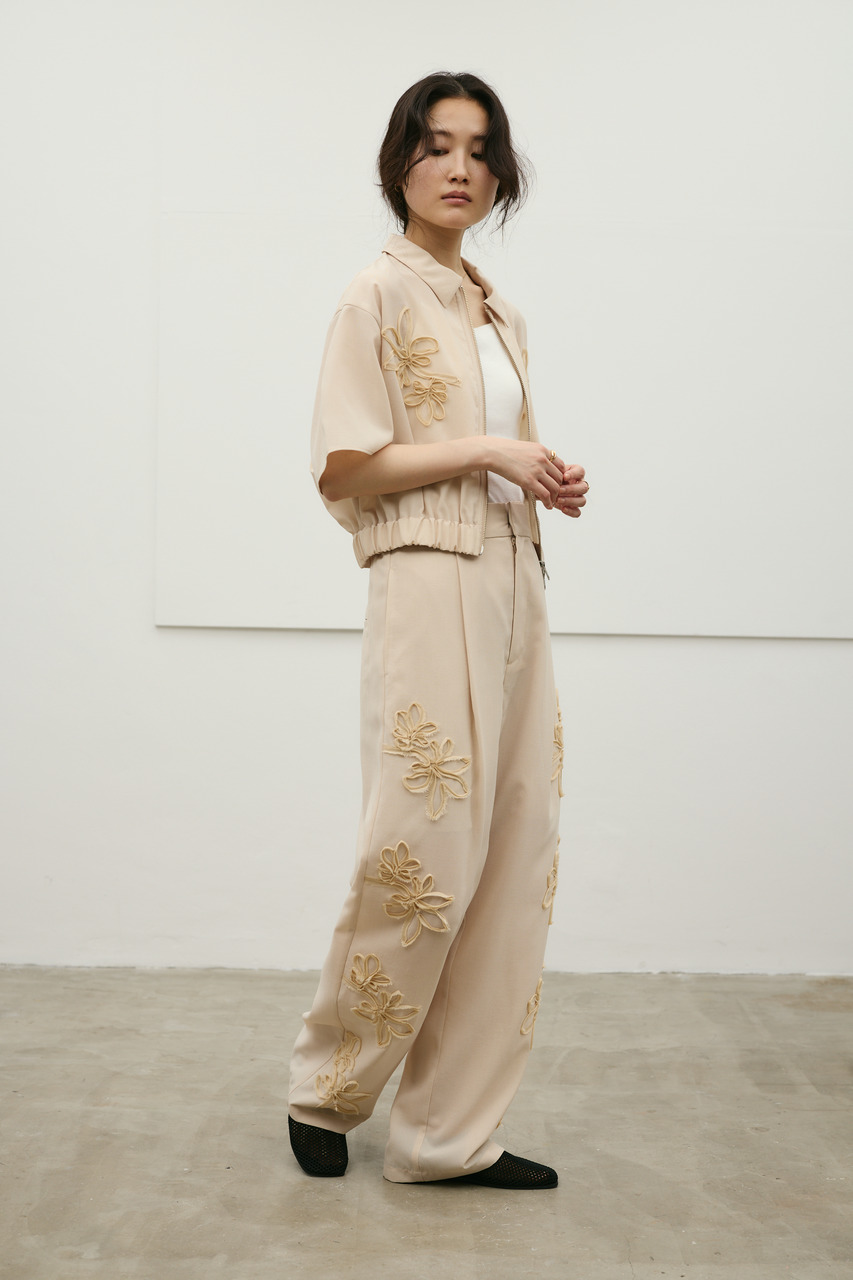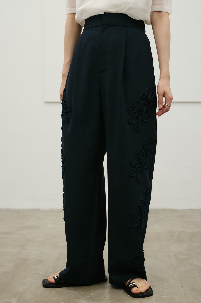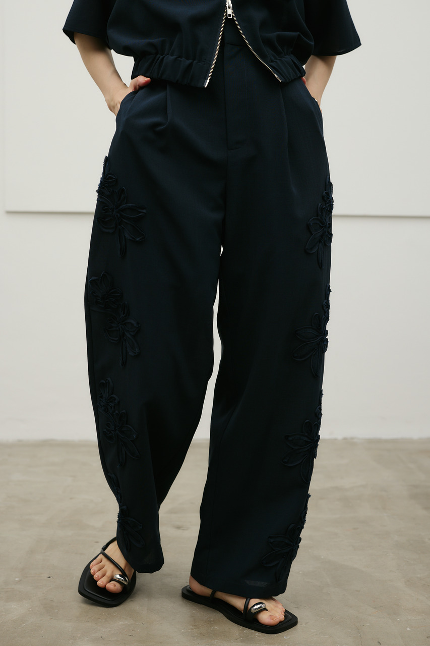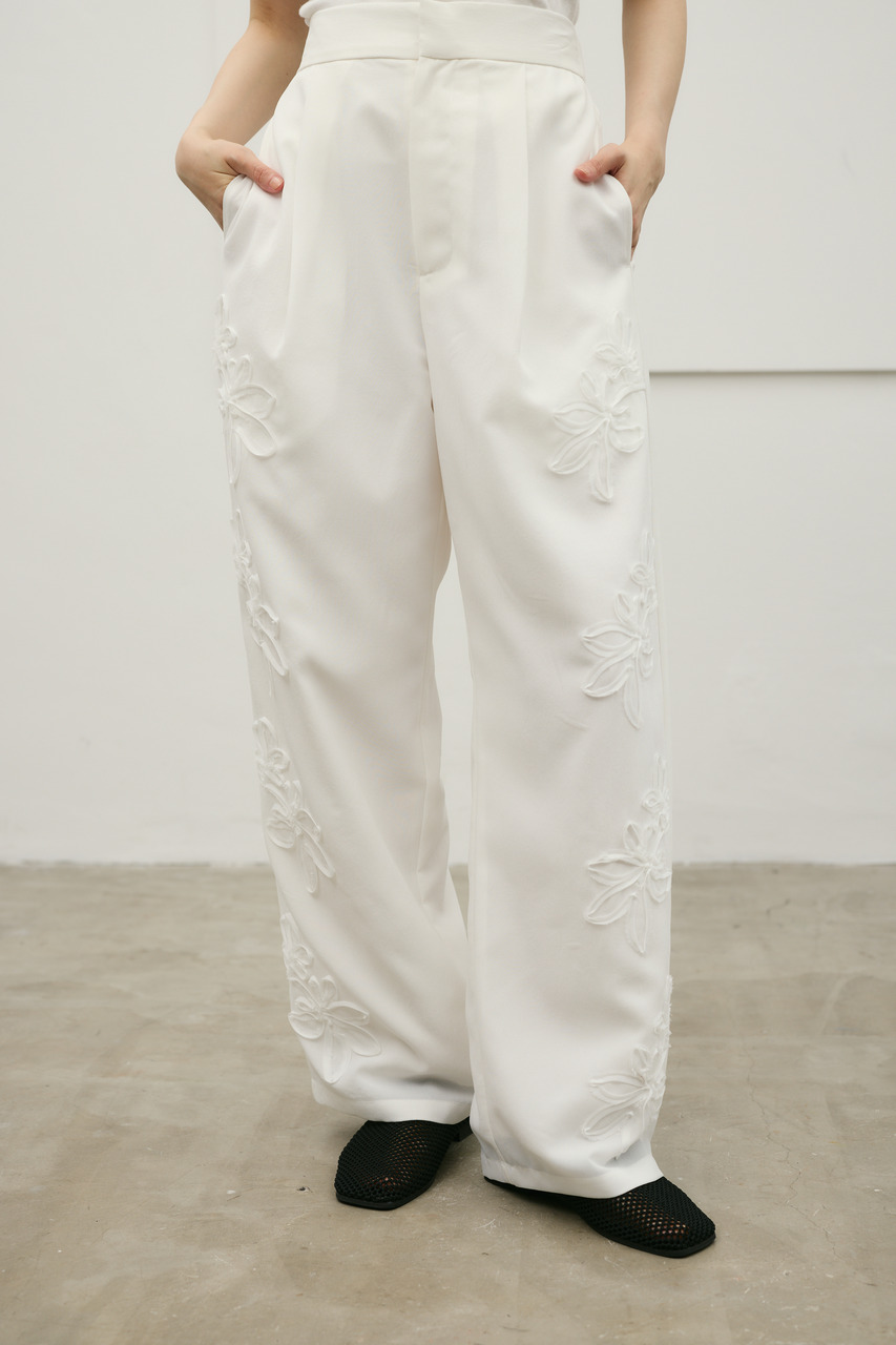 フラワーエンブロイダリータックパンツ