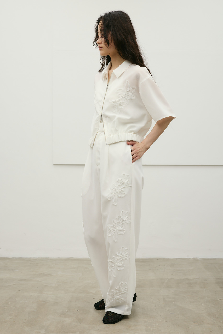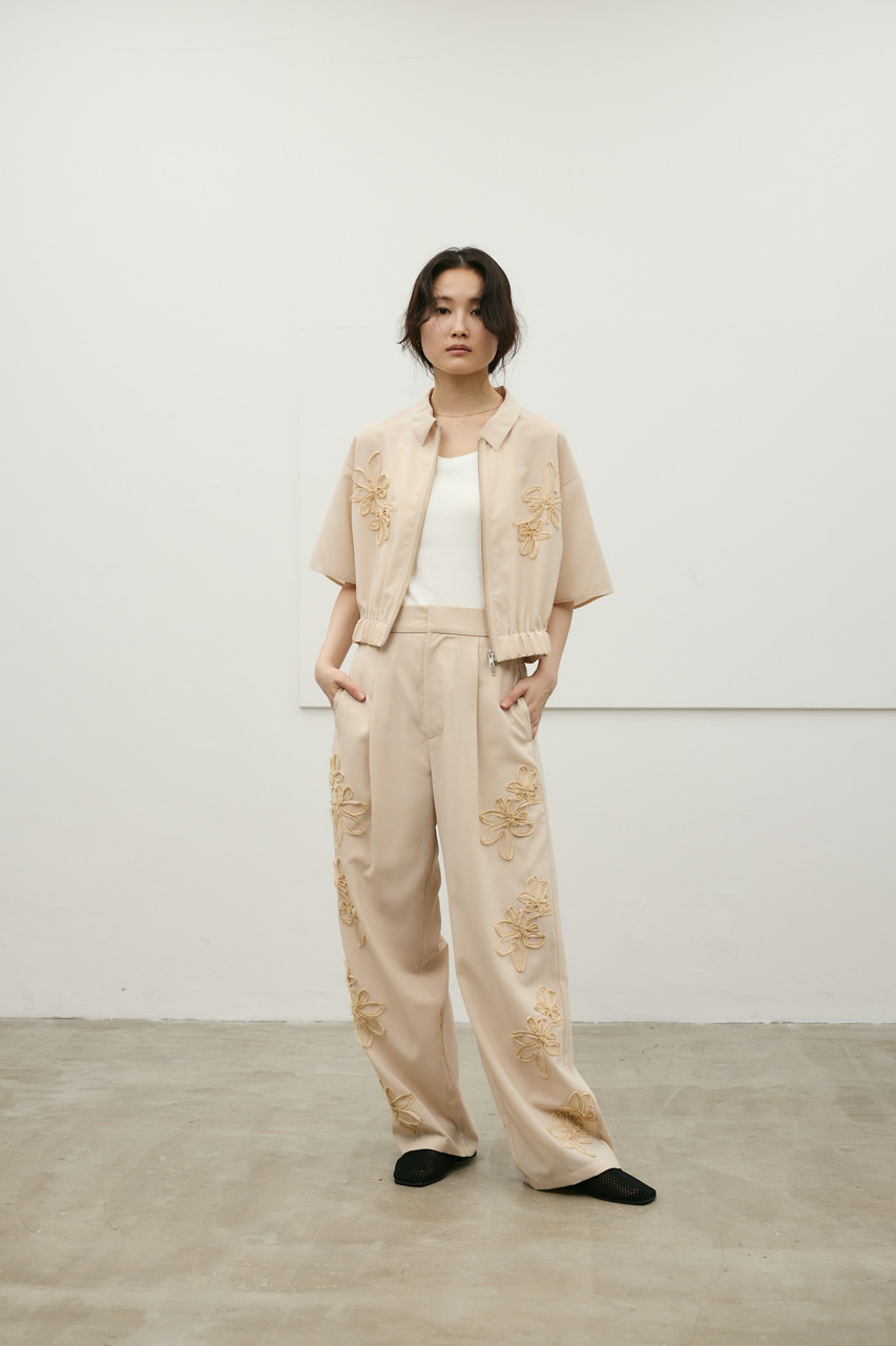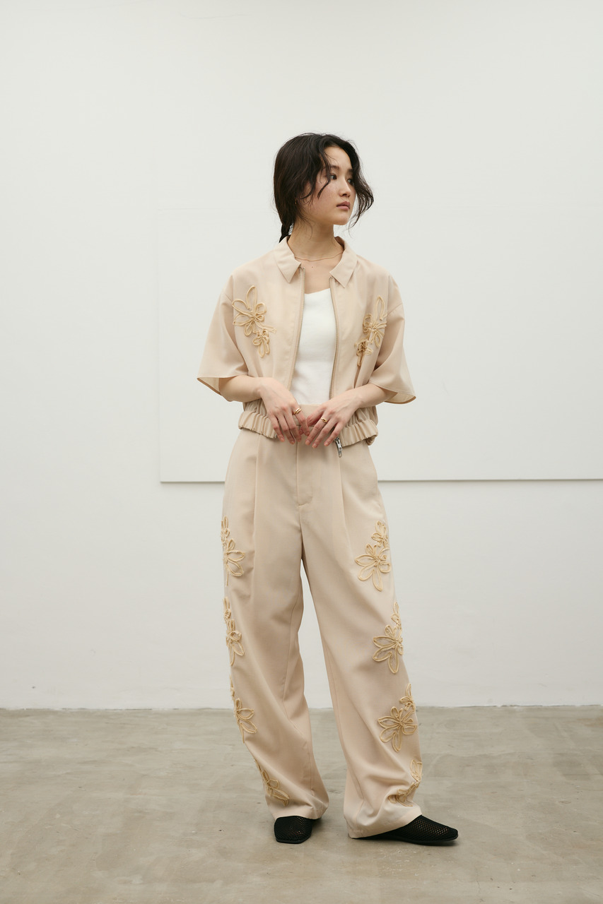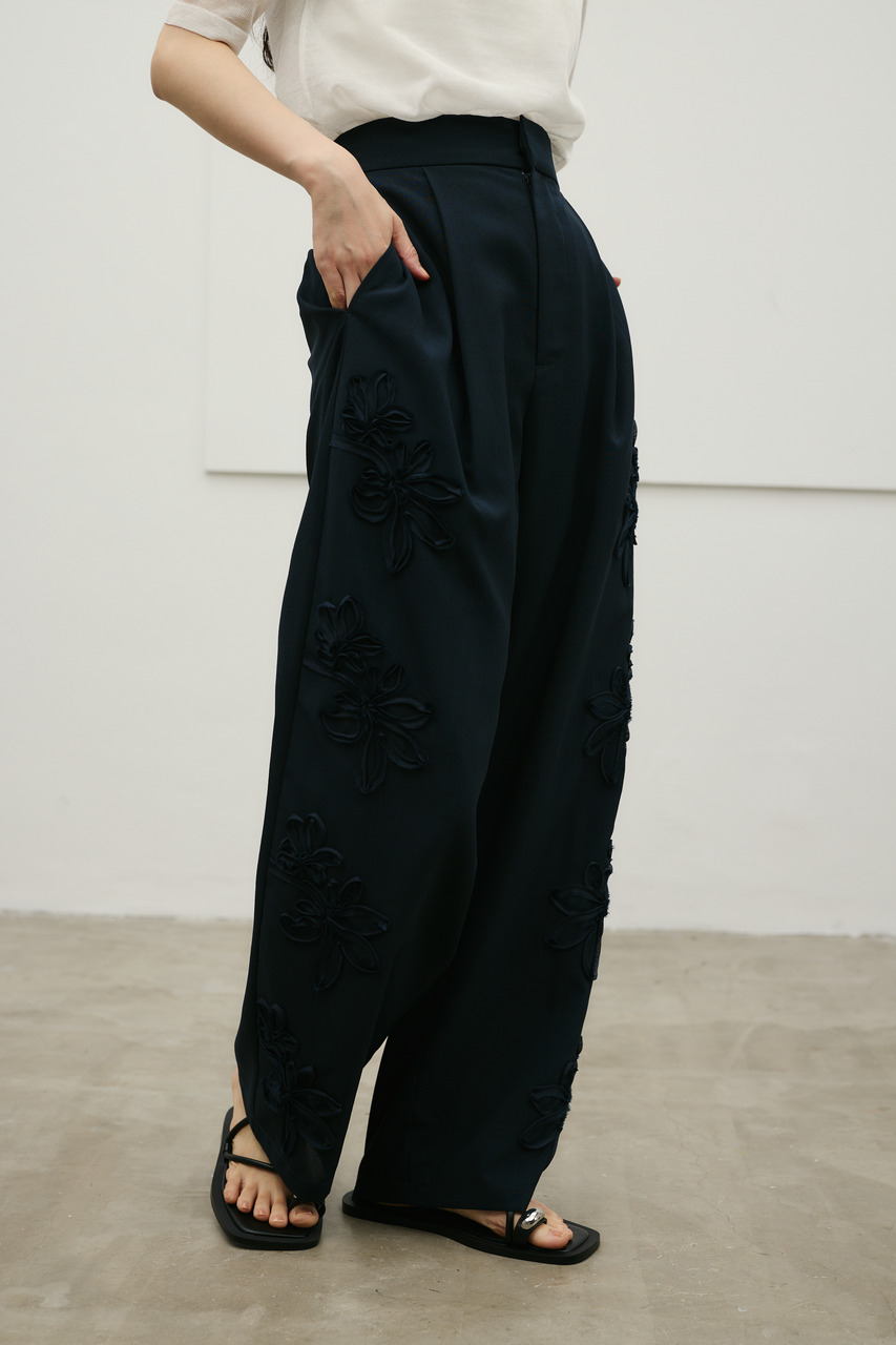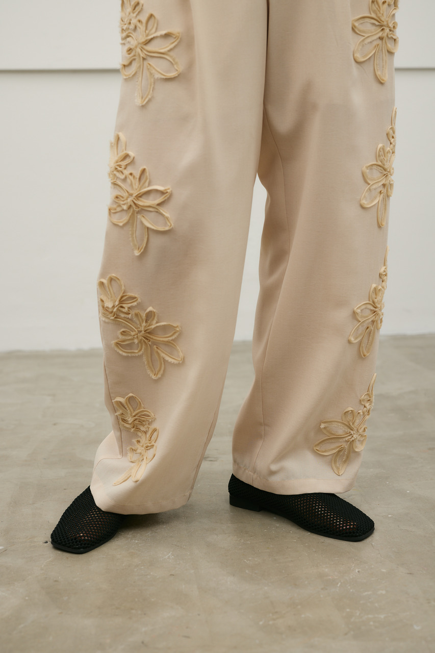 フラワーエンブロイダリータックパンツ