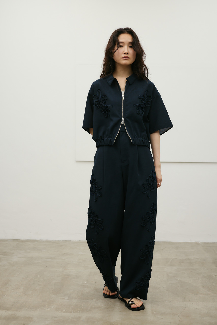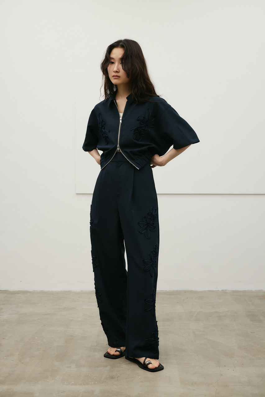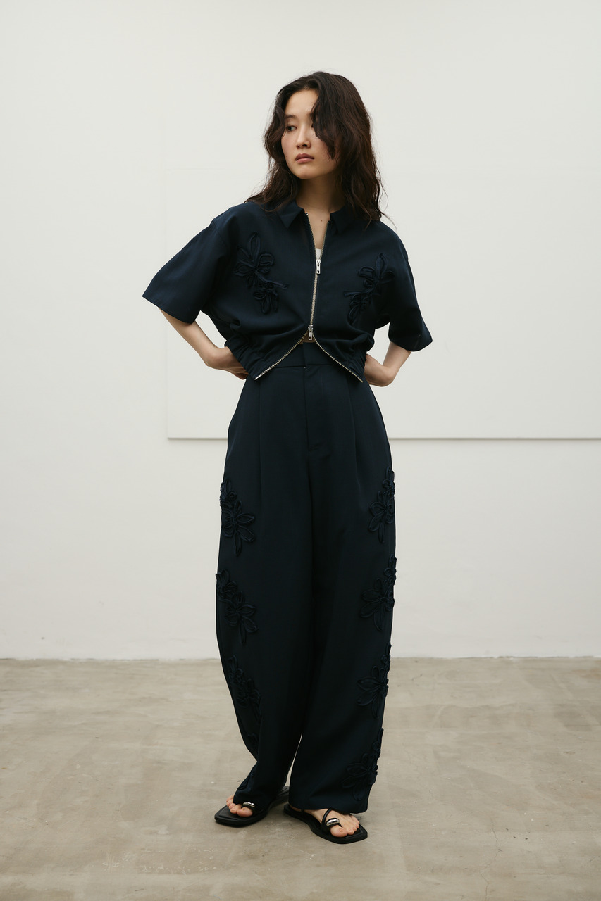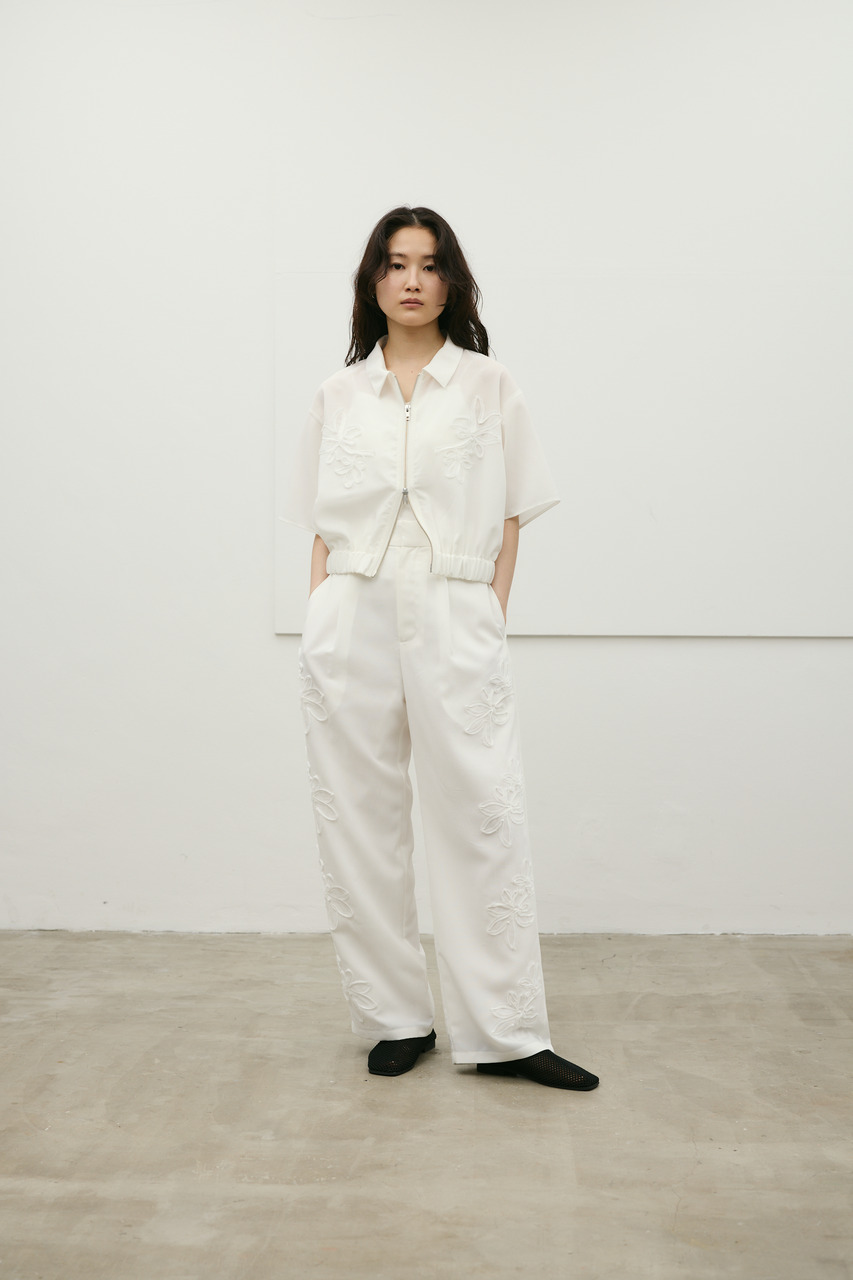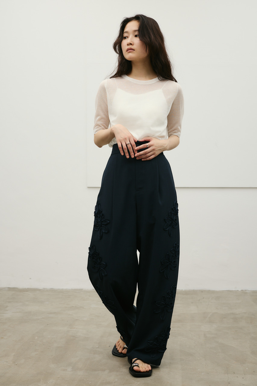 フラワーエンブロイダリータックパンツ