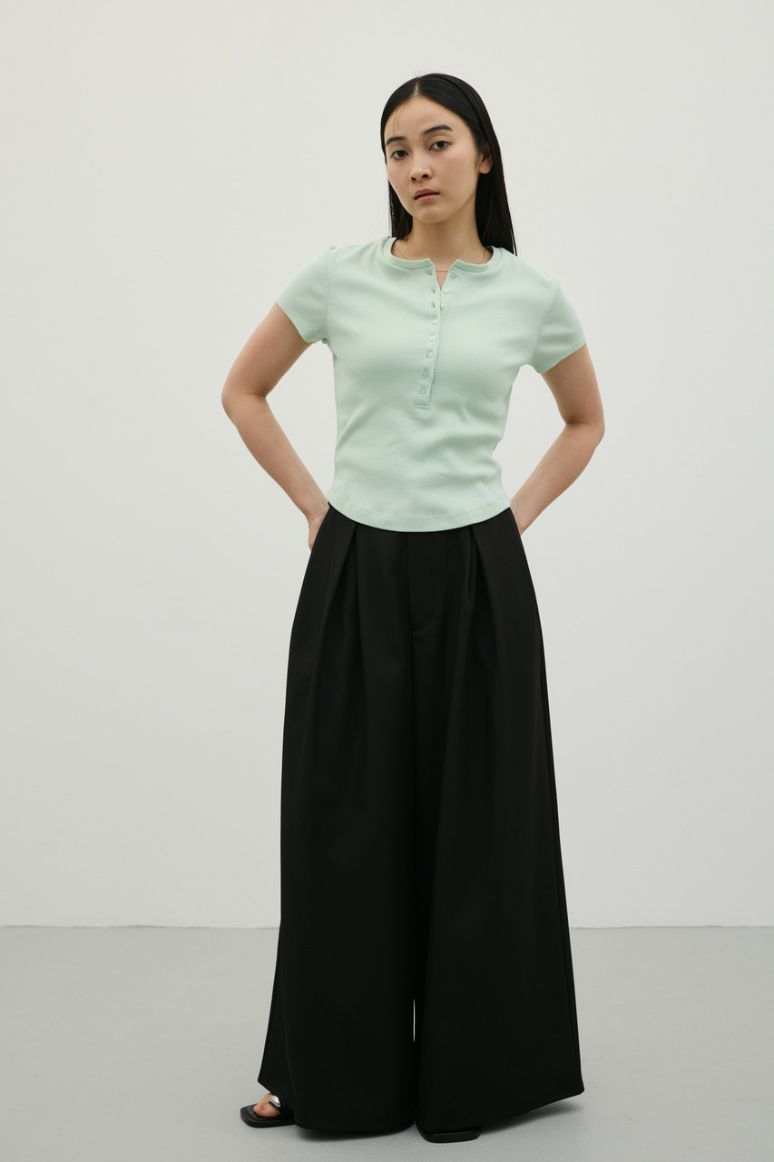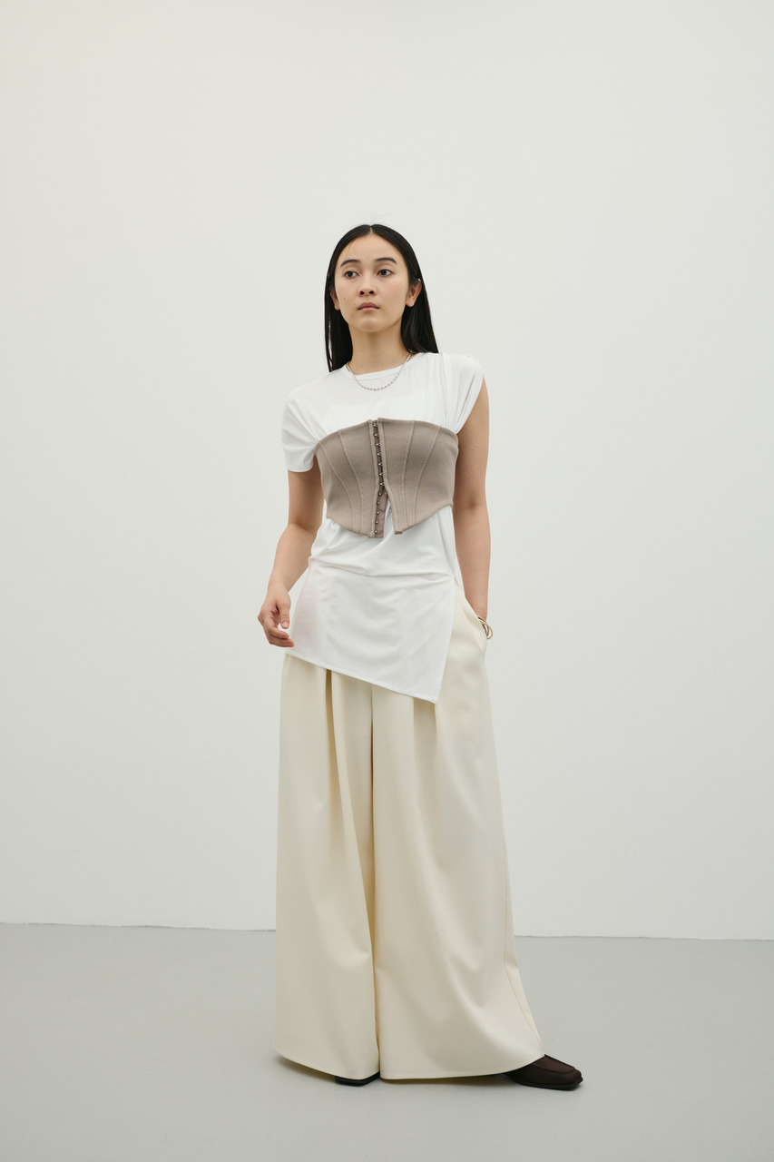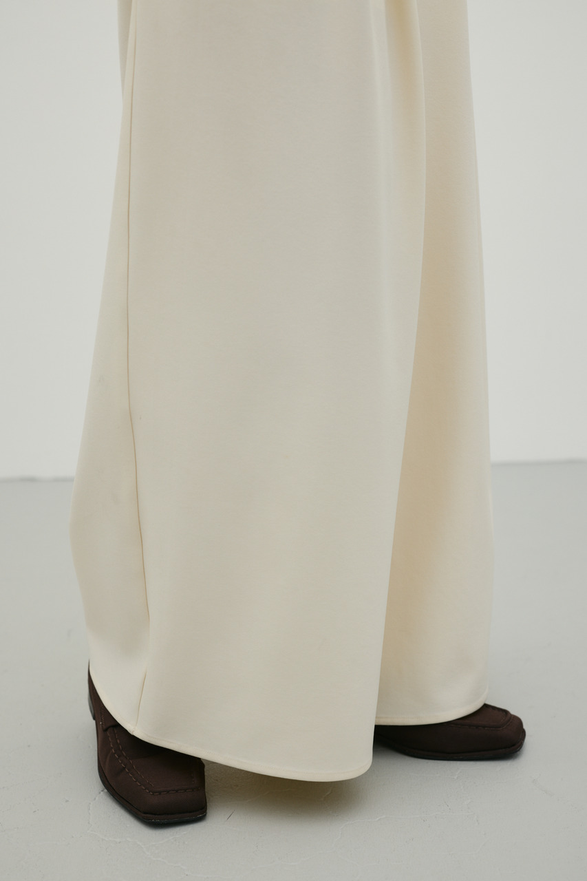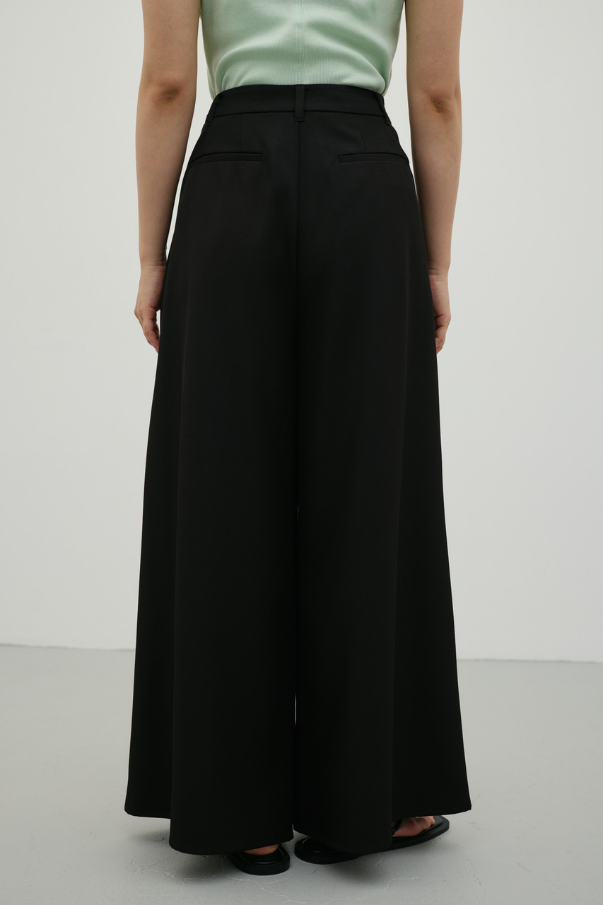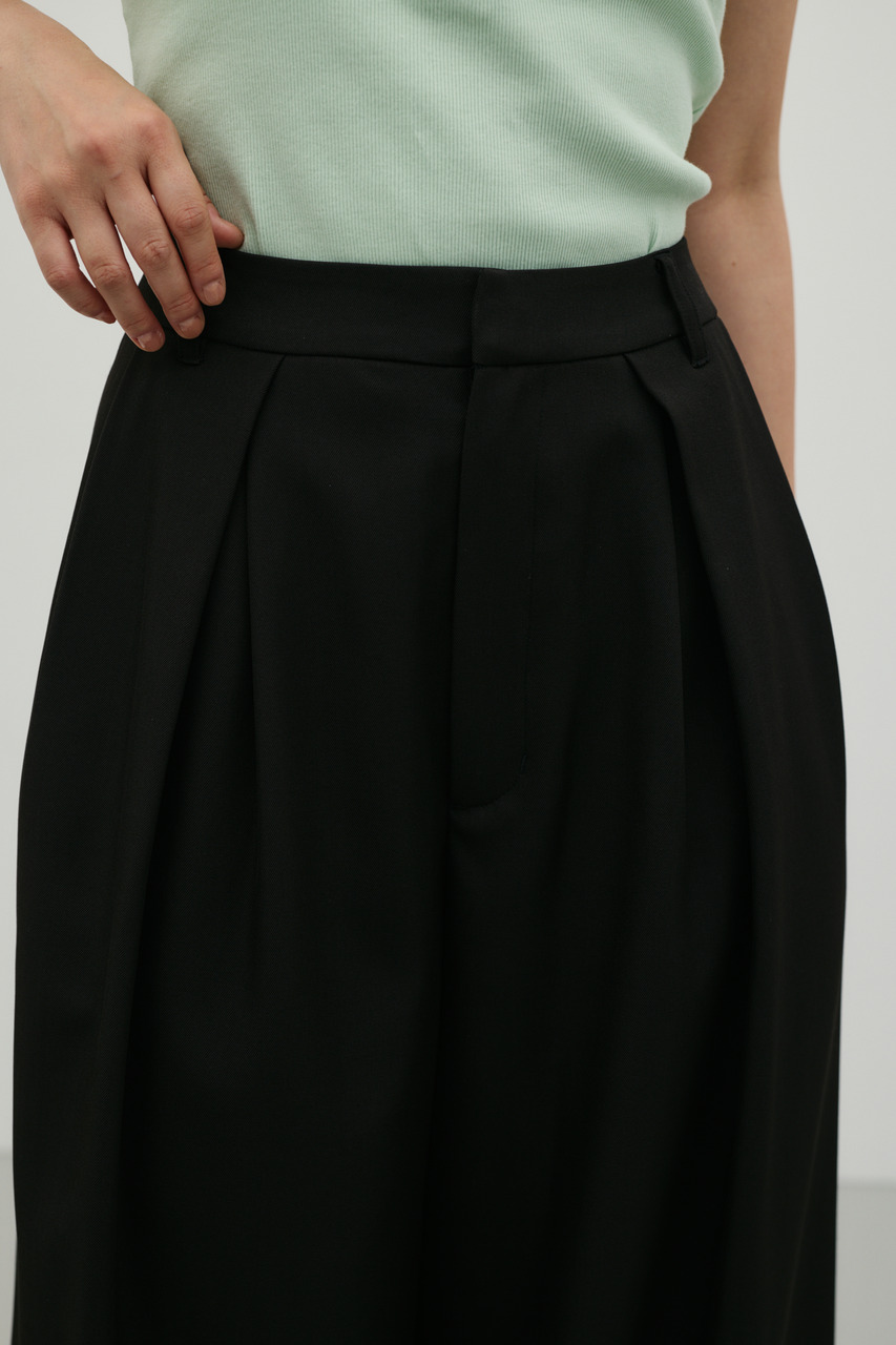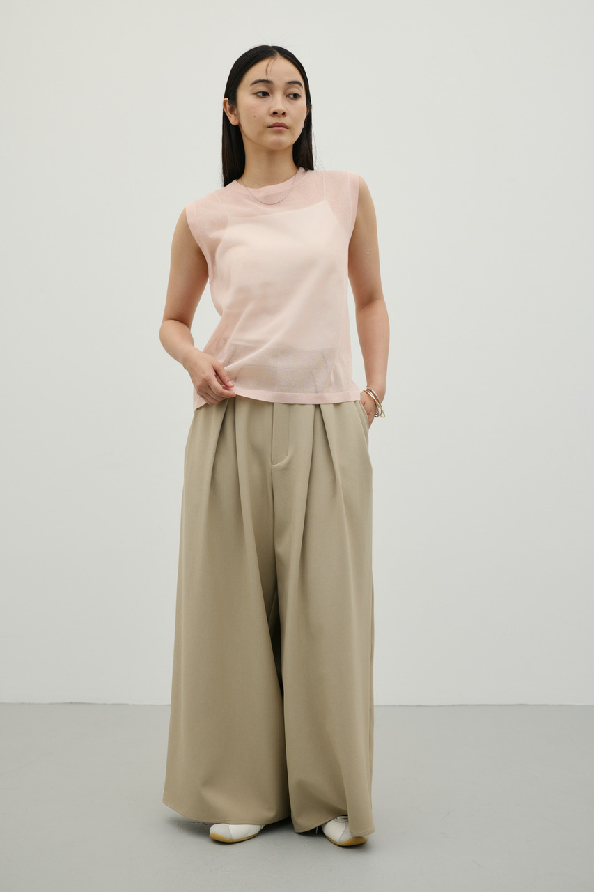 ロ―ウエストデザインがトレンド感を演出するタックワイドパンツ。フロントに施したタックが立体感を生み、ワイドながらもすっきりとしたシルエットに仕上げました。程よくルーズなサイズ感で、気になる腰回りや脚のラインを自然にカバー。リラックス感のある履き心地ながら、きちんと見えも叶える一枚です。コンパクトなトップスやクロップド丈と合わせれば、バランスの良い旬なスタイリングに。カジュアルからきれいめまで幅広いコーディネートに対応し、デイリーに活躍します。透け感なし、ストレッチなし。