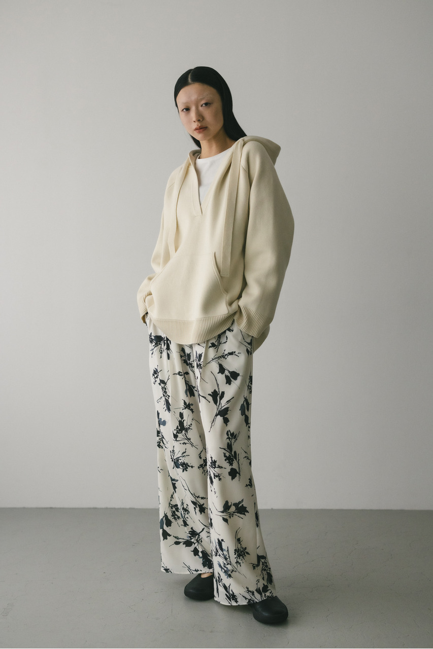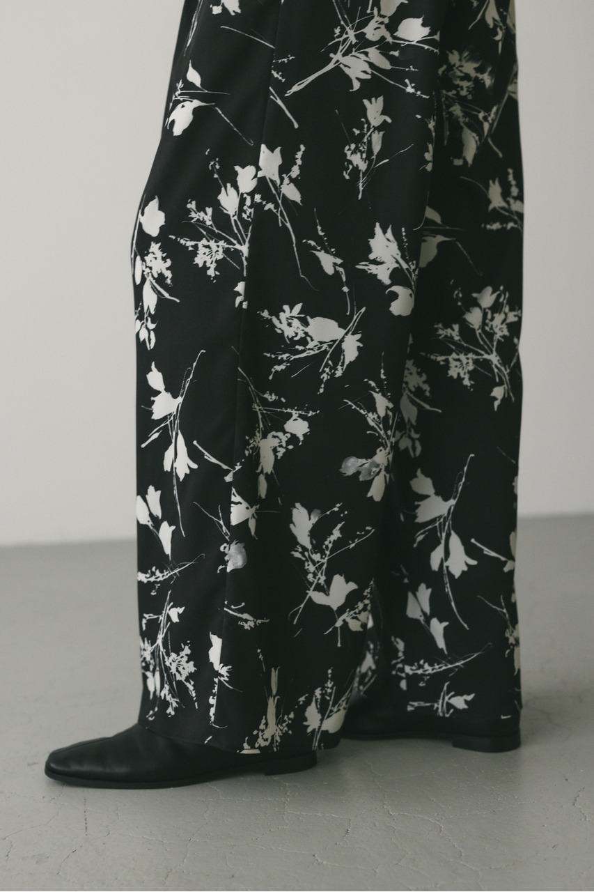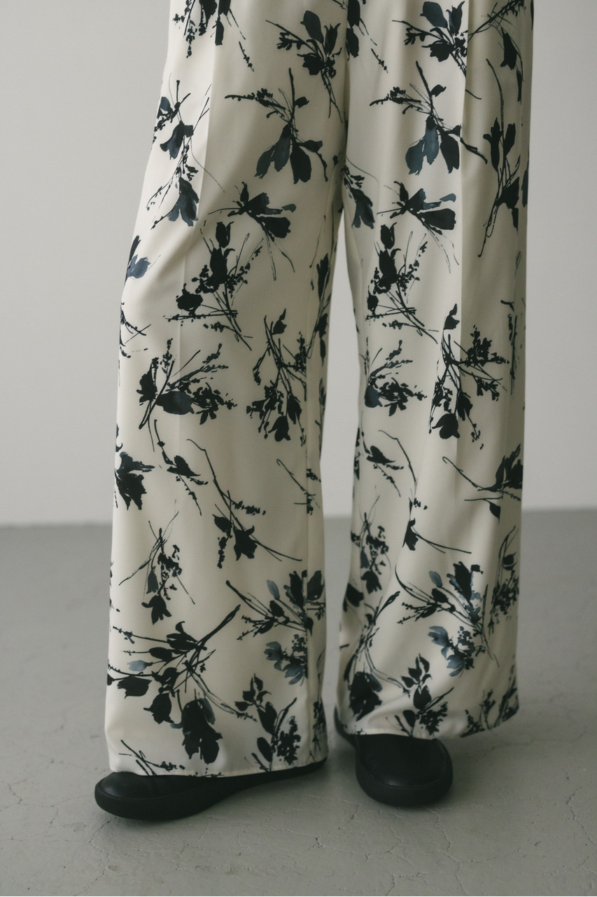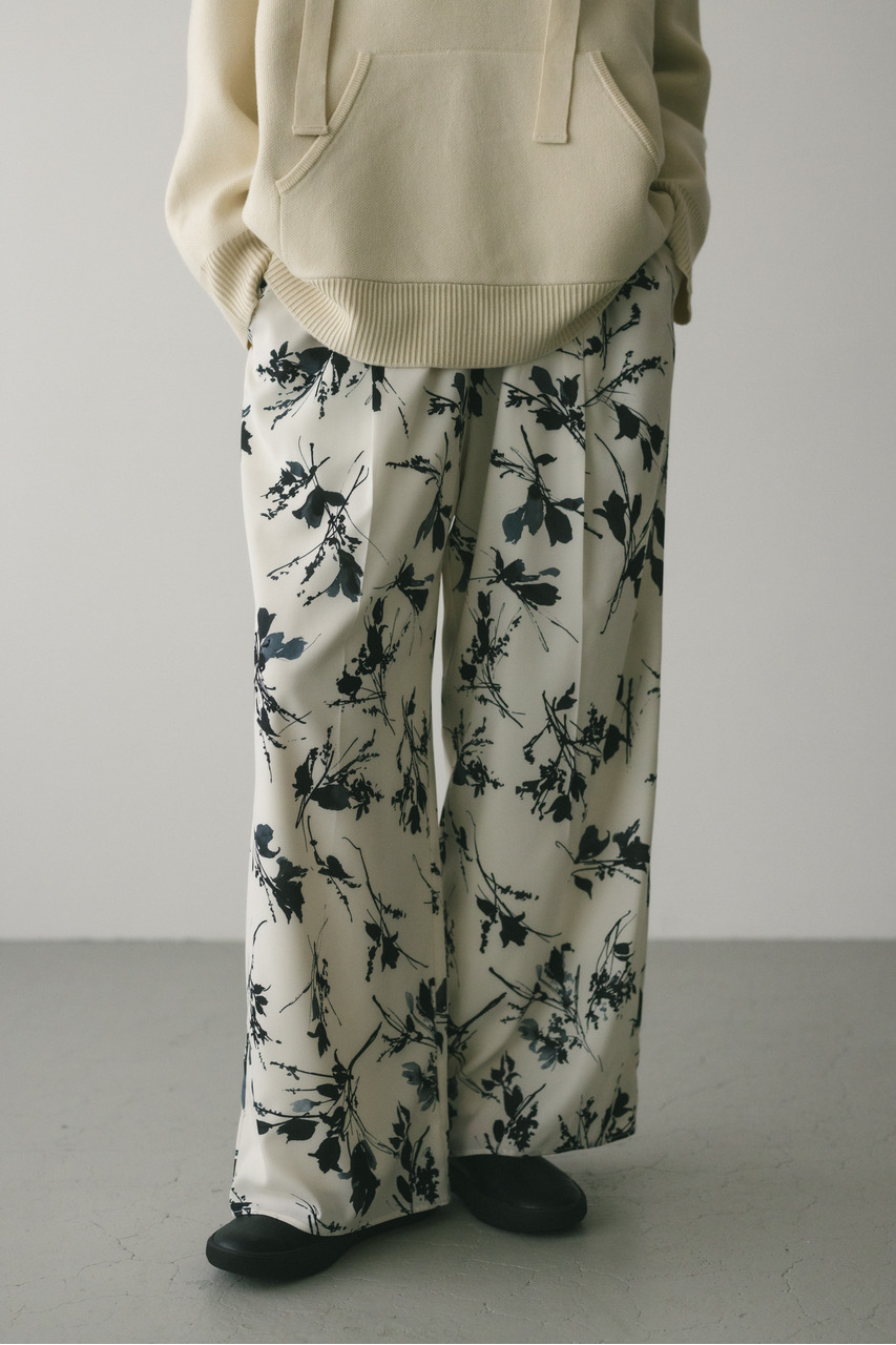 オリジナルのフラワープリントを施したウエストゴムのリラックスパンツ。春を感じさせる柔らかく軽やかな素材で仕上げました。ストレッチなし、透け感なし。