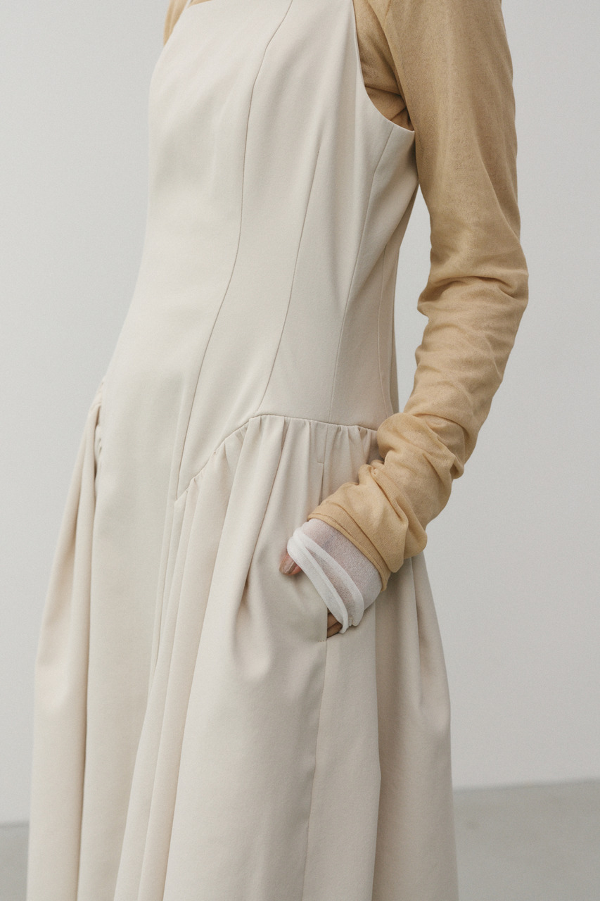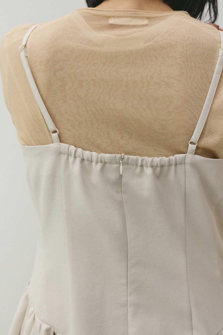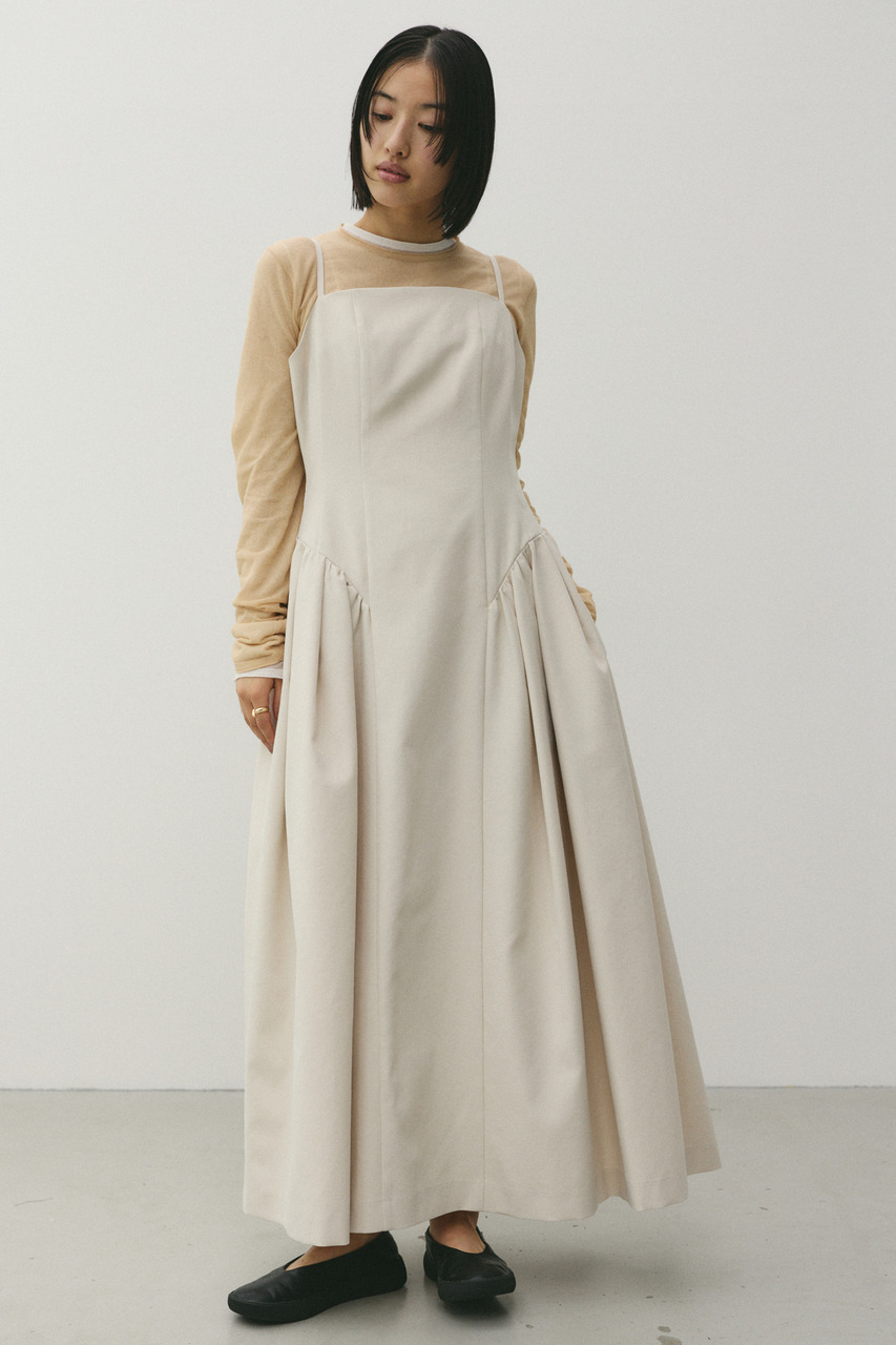 パネル切替デザインが印象的なキャミワンピース。スカート部分はトレンドの立体的なシルエットで、動きのある表情と美しいラインを演出します。華奢なキャミストラップが女性らしさを引き立て、インナー次第でロングシーズン着用可能。カットソーやニットとのレイヤードで、幅広いスタイリングが楽しめる一枚です。ストレッチなし、透け感なし。