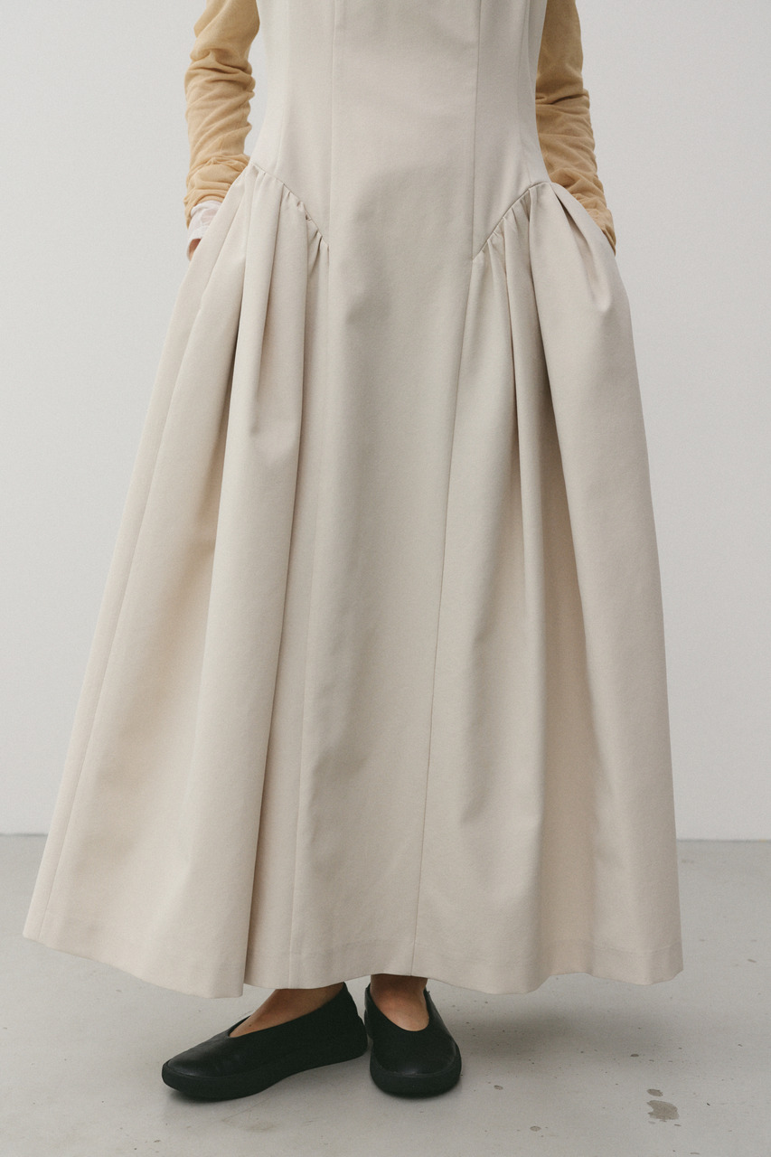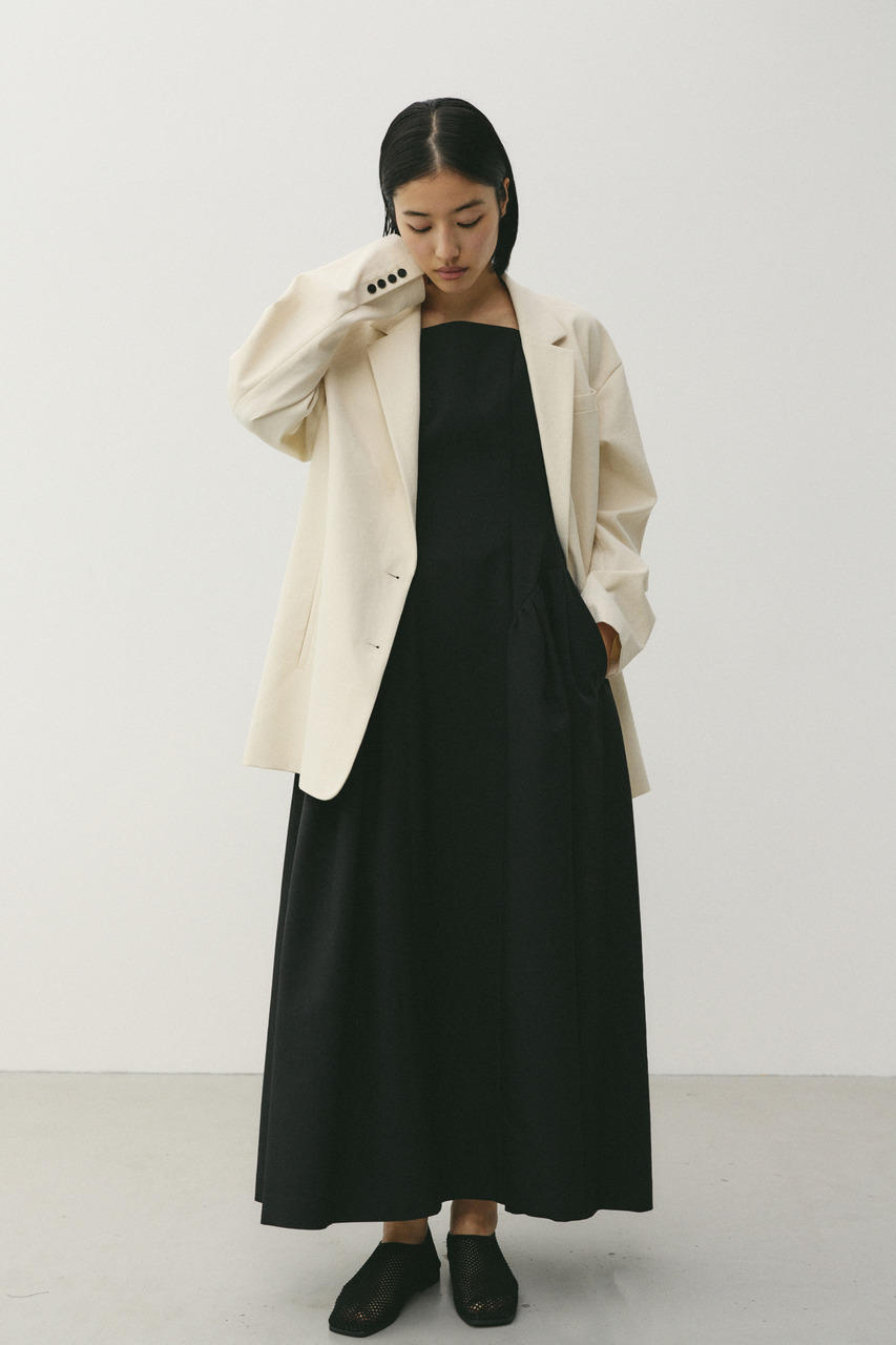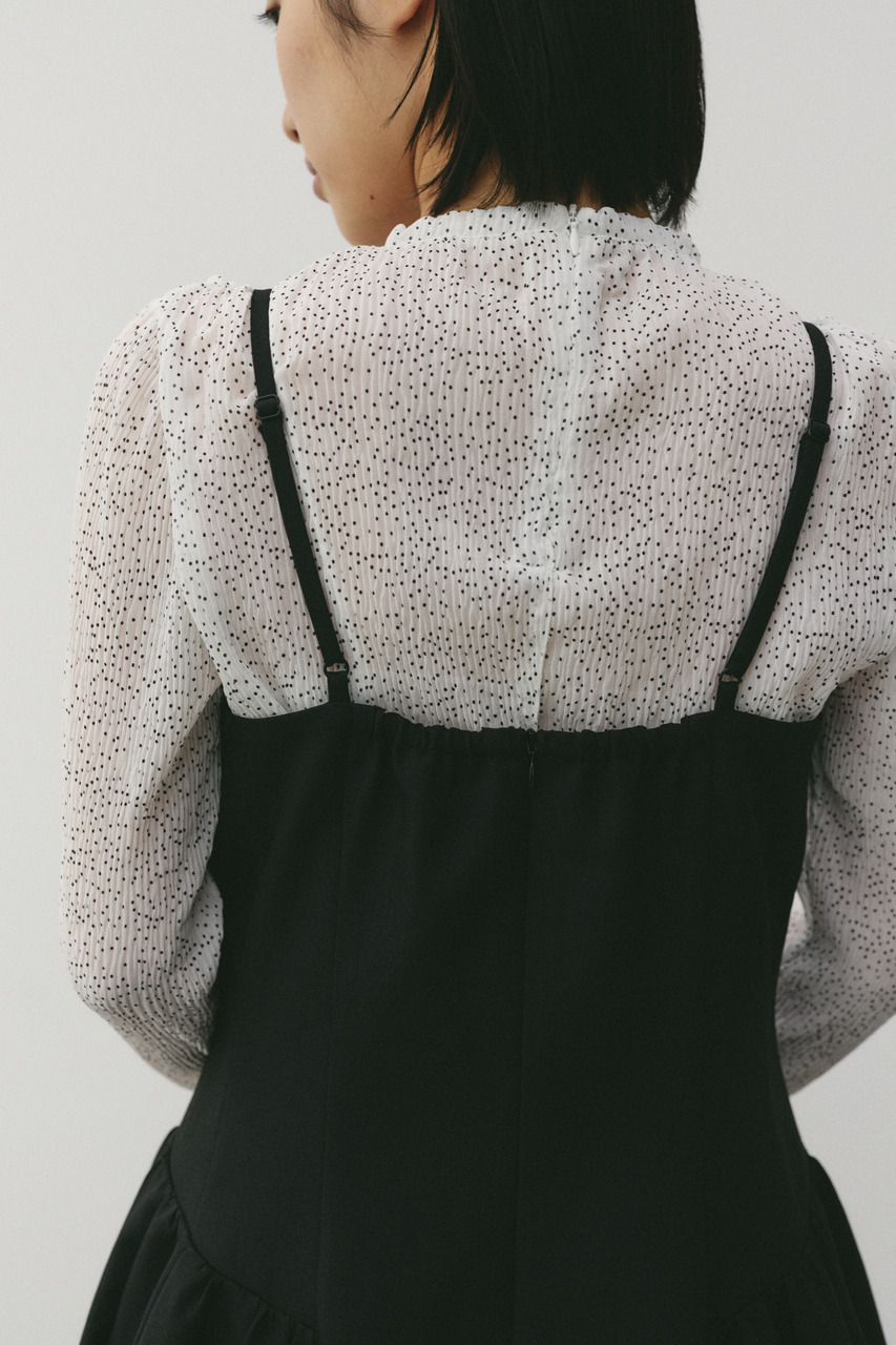 パネル切替デザインが印象的なキャミワンピース。スカート部分はトレンドの立体的なシルエットで、動きのある表情と美しいラインを演出します。華奢なキャミストラップが女性らしさを引き立て、インナー次第でロングシーズン着用可能。カットソーやニットとのレイヤードで、幅広いスタイリングが楽しめる一枚です。ストレッチなし、透け感なし。