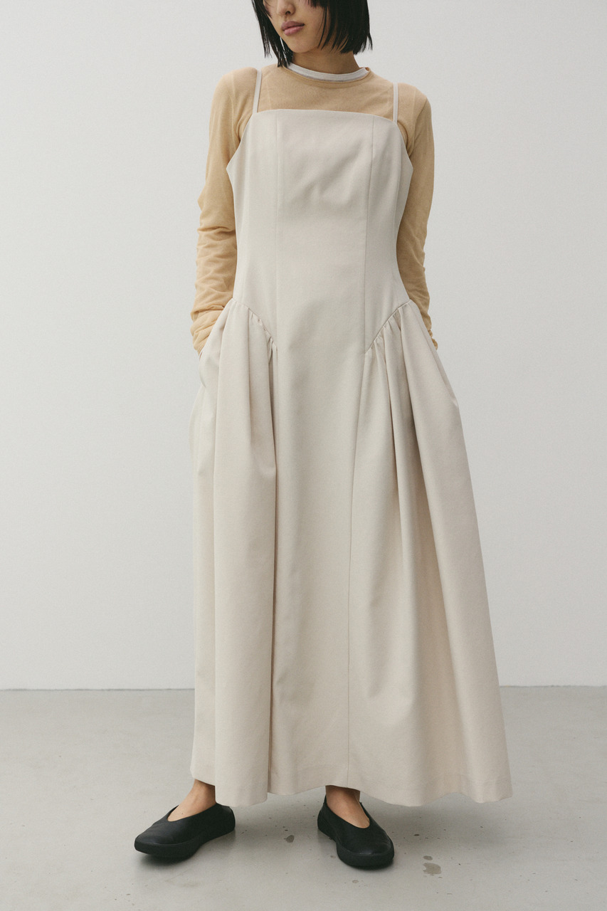 パネル切替デザインが印象的なキャミワンピース。スカート部分はトレンドの立体的なシルエットで、動きのある表情と美しいラインを演出します。華奢なキャミストラップが女性らしさを引き立て、インナー次第でロングシーズン着用可能。カットソーやニットとのレイヤードで、幅広いスタイリングが楽しめる一枚です。ストレッチなし、透け感なし。