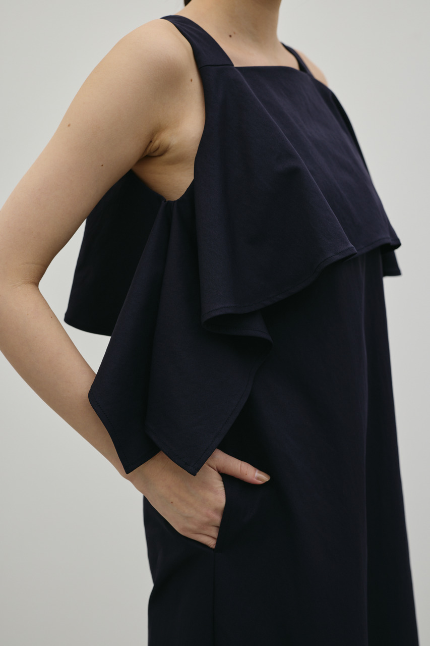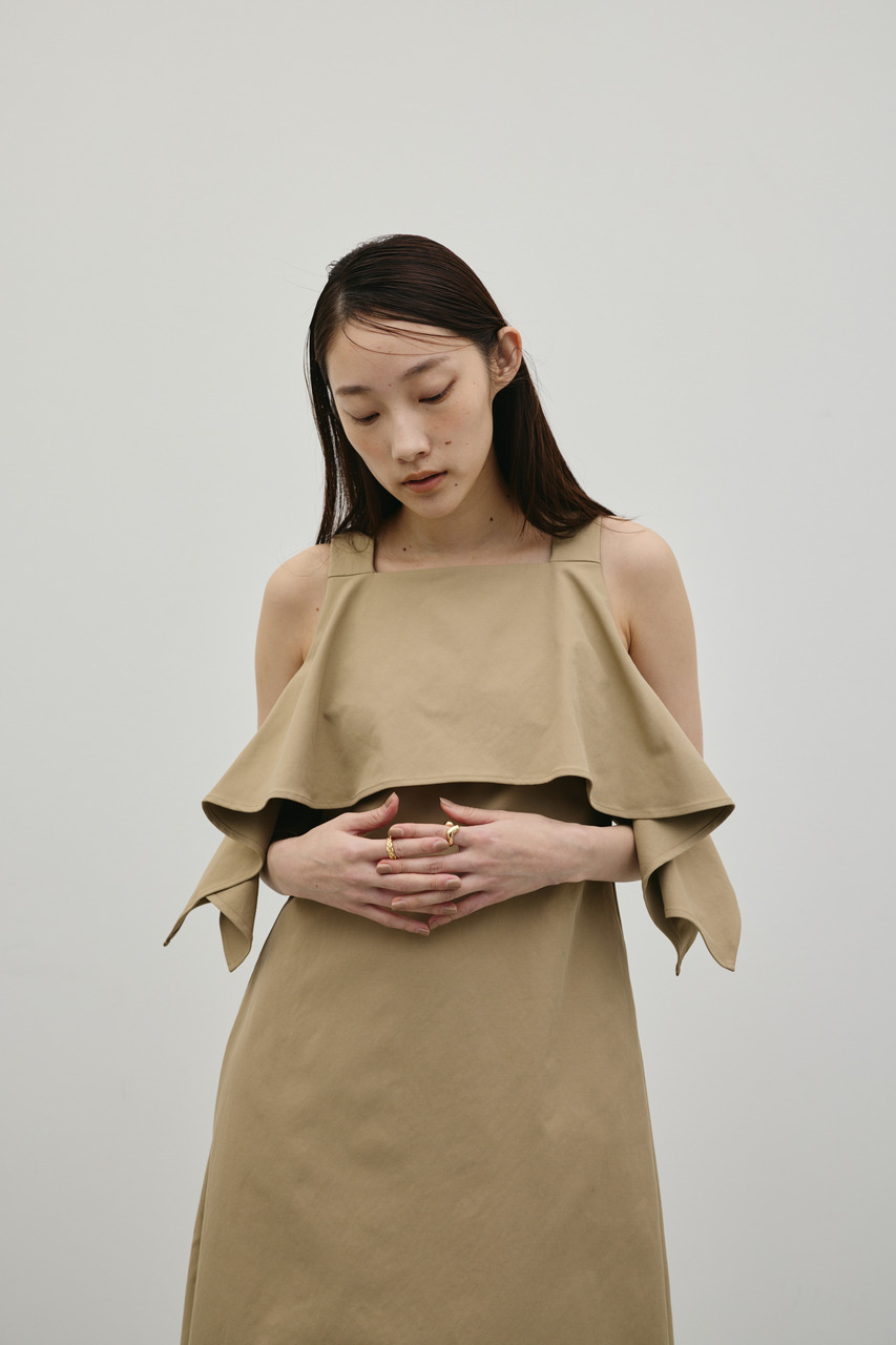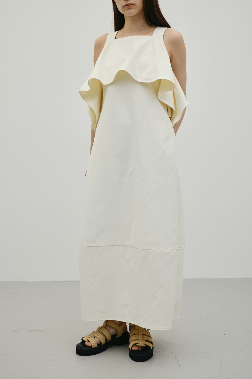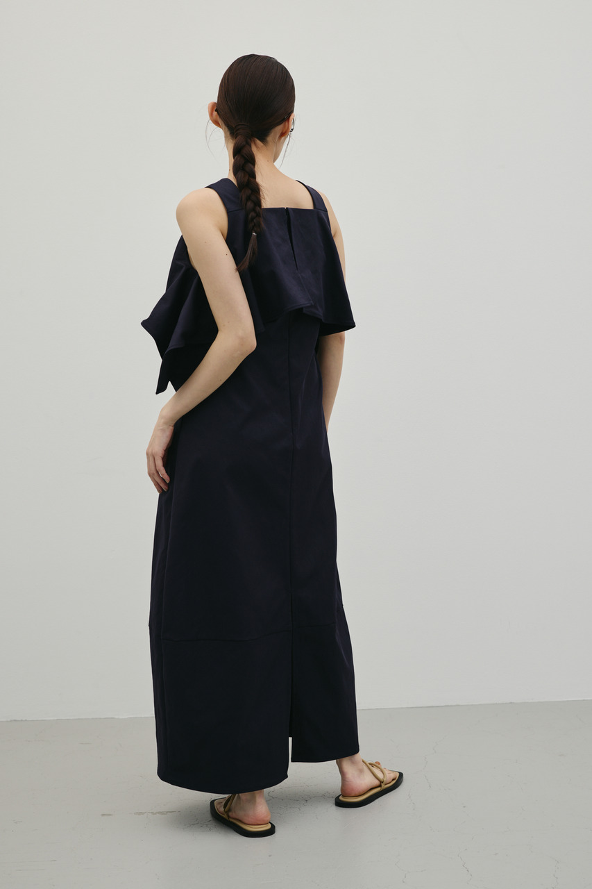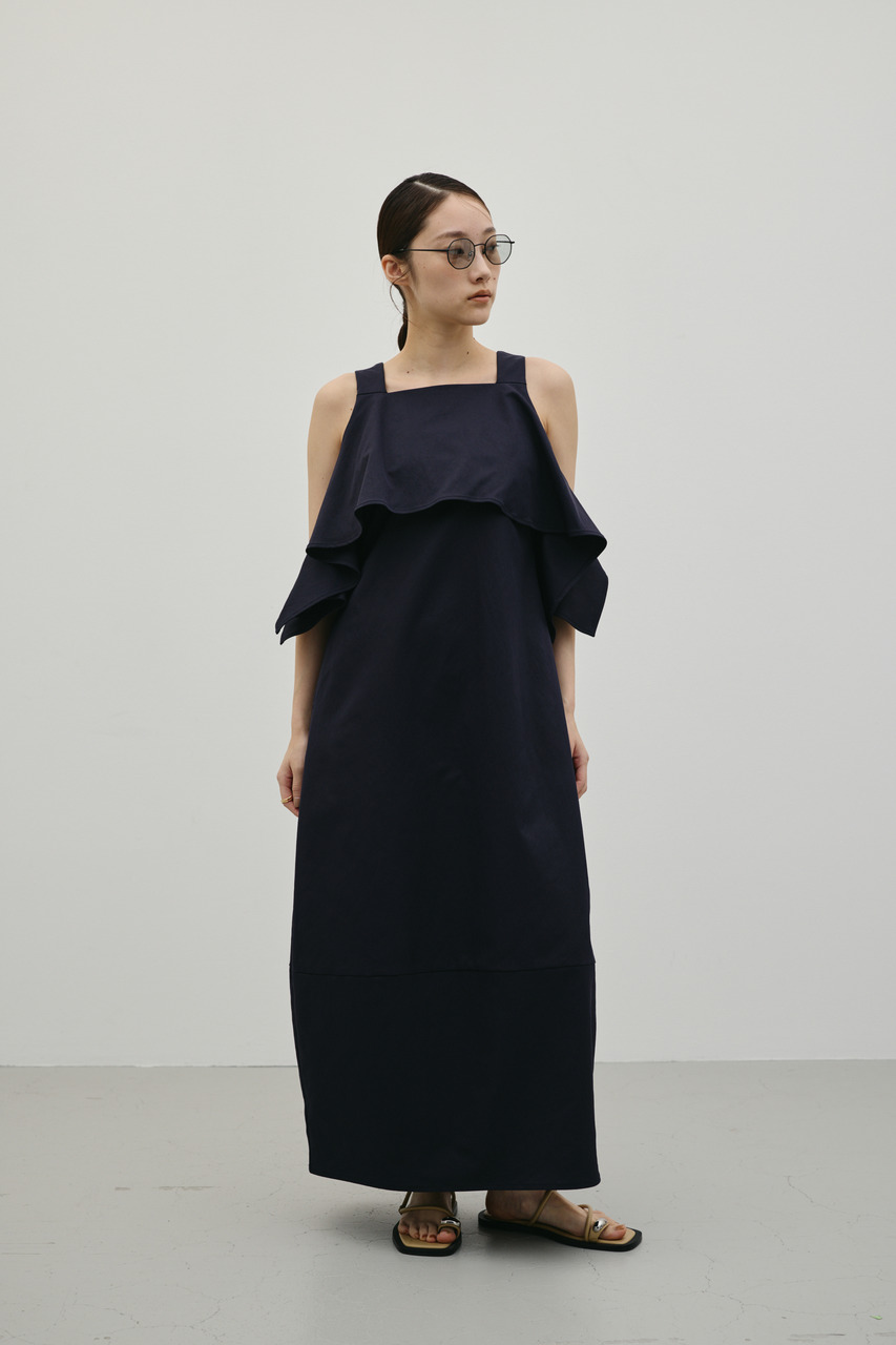 立体感のあるフリルデザインと、丸みのあるコクーンシルエットが魅力のノースリーブワンピース。甘さとモード感をバランスよく取り入れた、シンプルながらも存在感のある一枚。ふんわりとしたコクーンラインが身体のラインをやさしくカバーしつつ、すっきりとしたノースリーブで抜け感をプラス。デイリーからお出かけシーンまで幅広く活躍します。ストレッチあり、透け感なし。