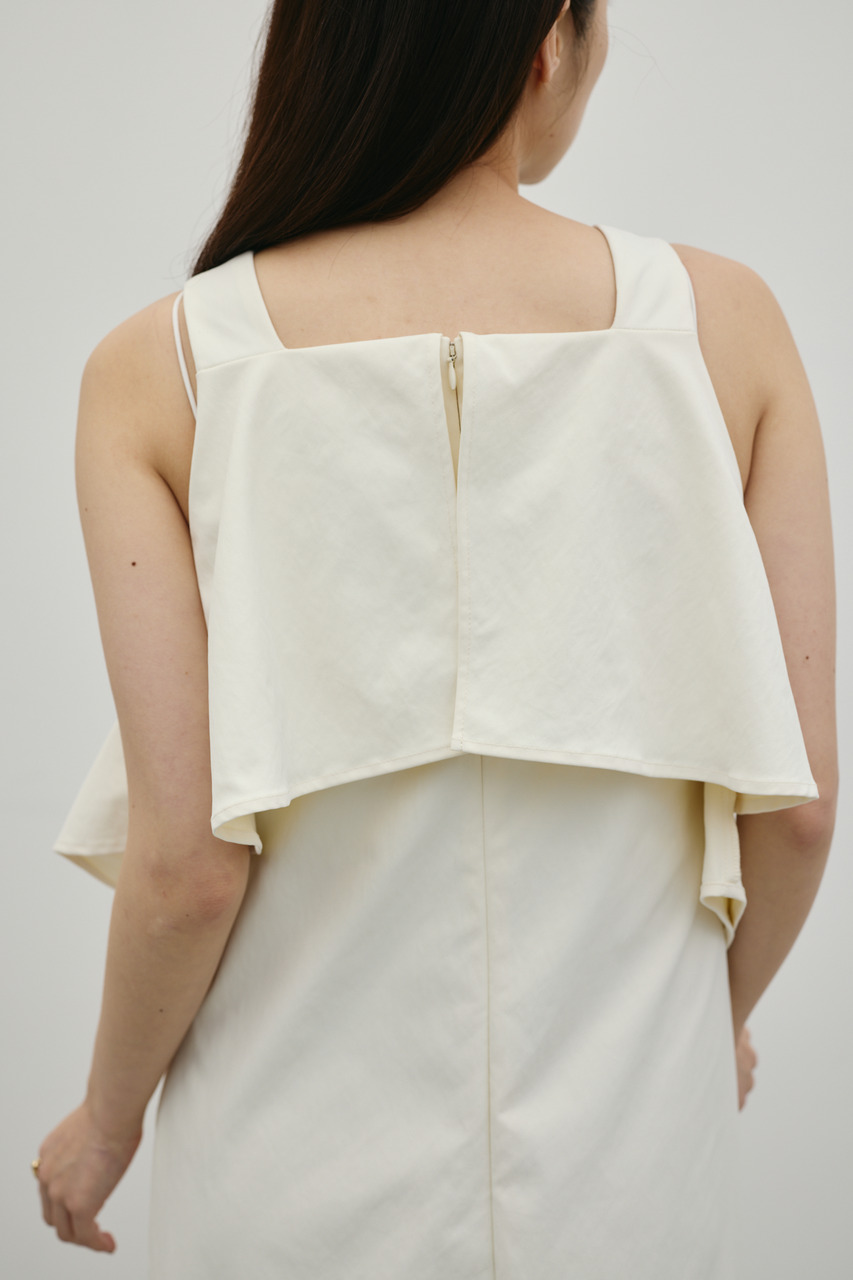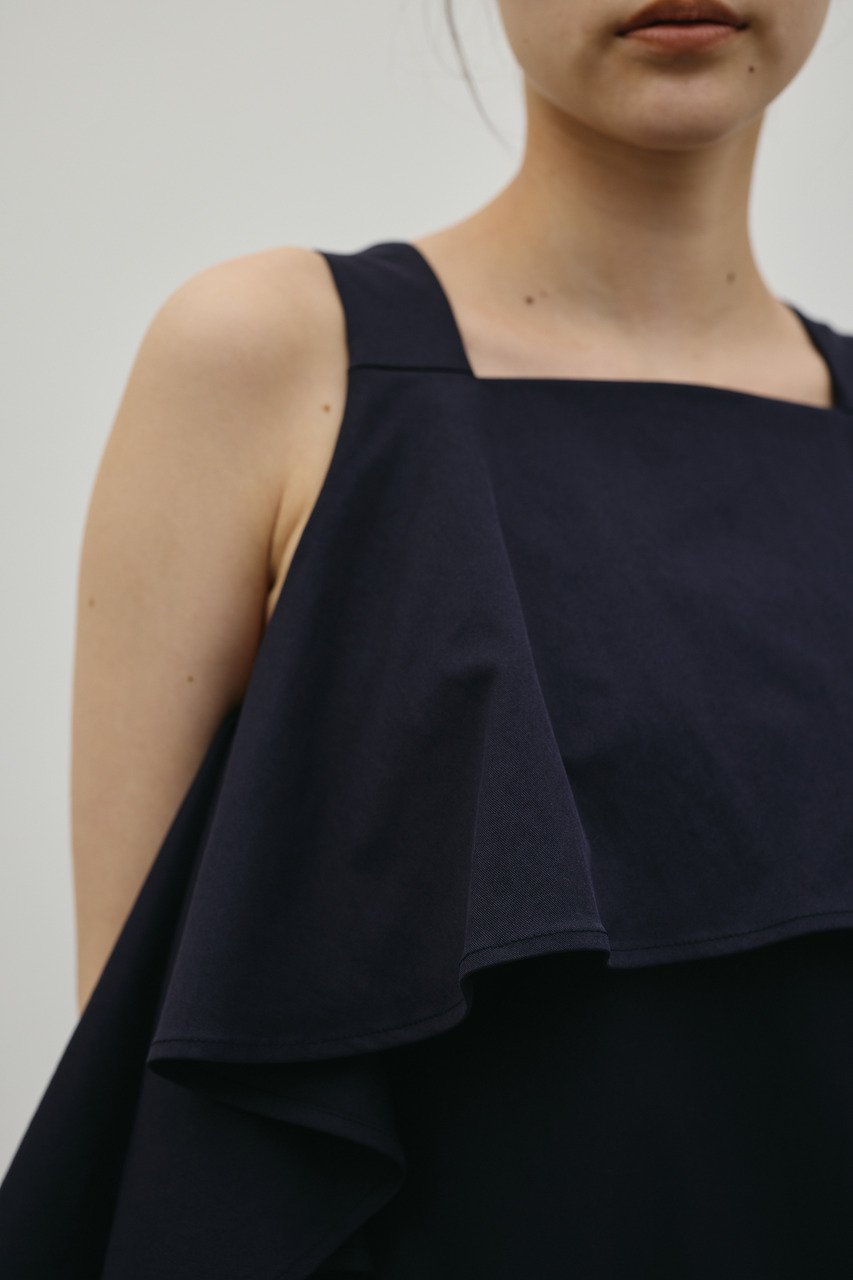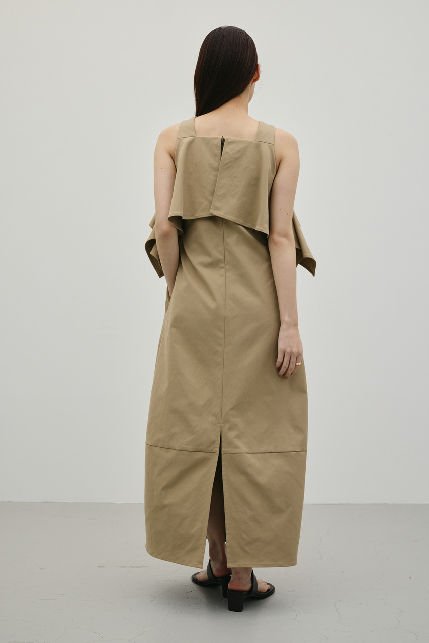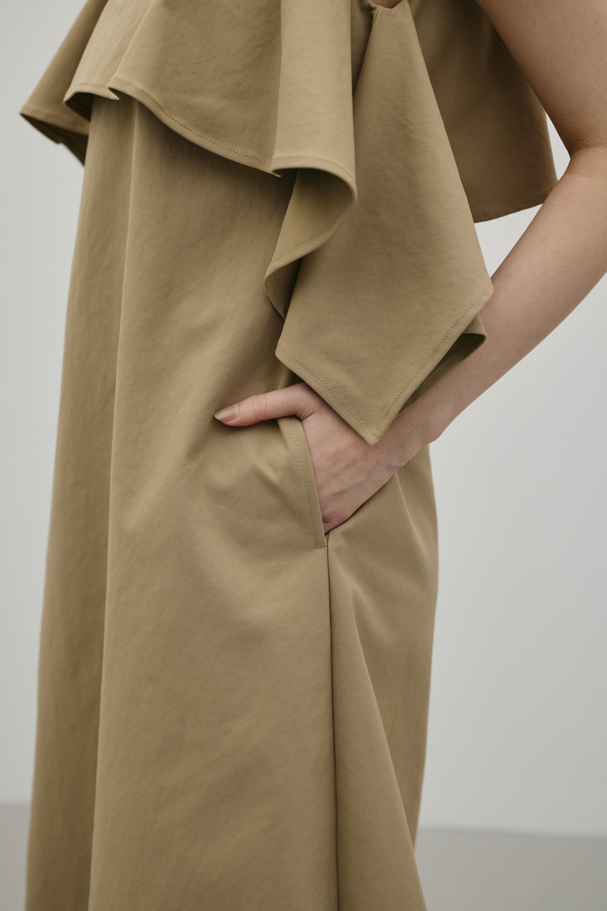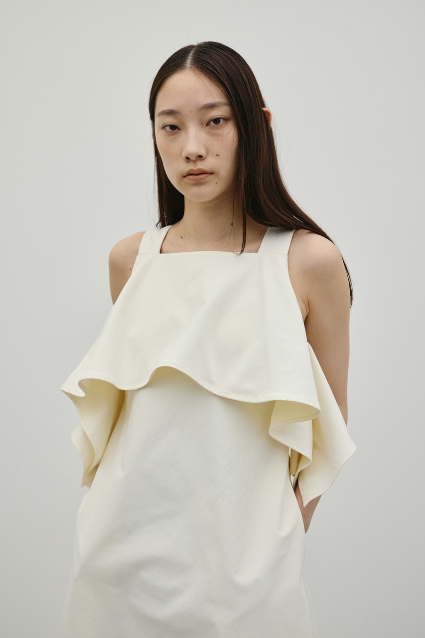 立体感のあるフリルデザインと、丸みのあるコクーンシルエットが魅力のノースリーブワンピース。甘さとモード感をバランスよく取り入れた、シンプルながらも存在感のある一枚。ふんわりとしたコクーンラインが身体のラインをやさしくカバーしつつ、すっきりとしたノースリーブで抜け感をプラス。デイリーからお出かけシーンまで幅広く活躍します。ストレッチあり、透け感なし。