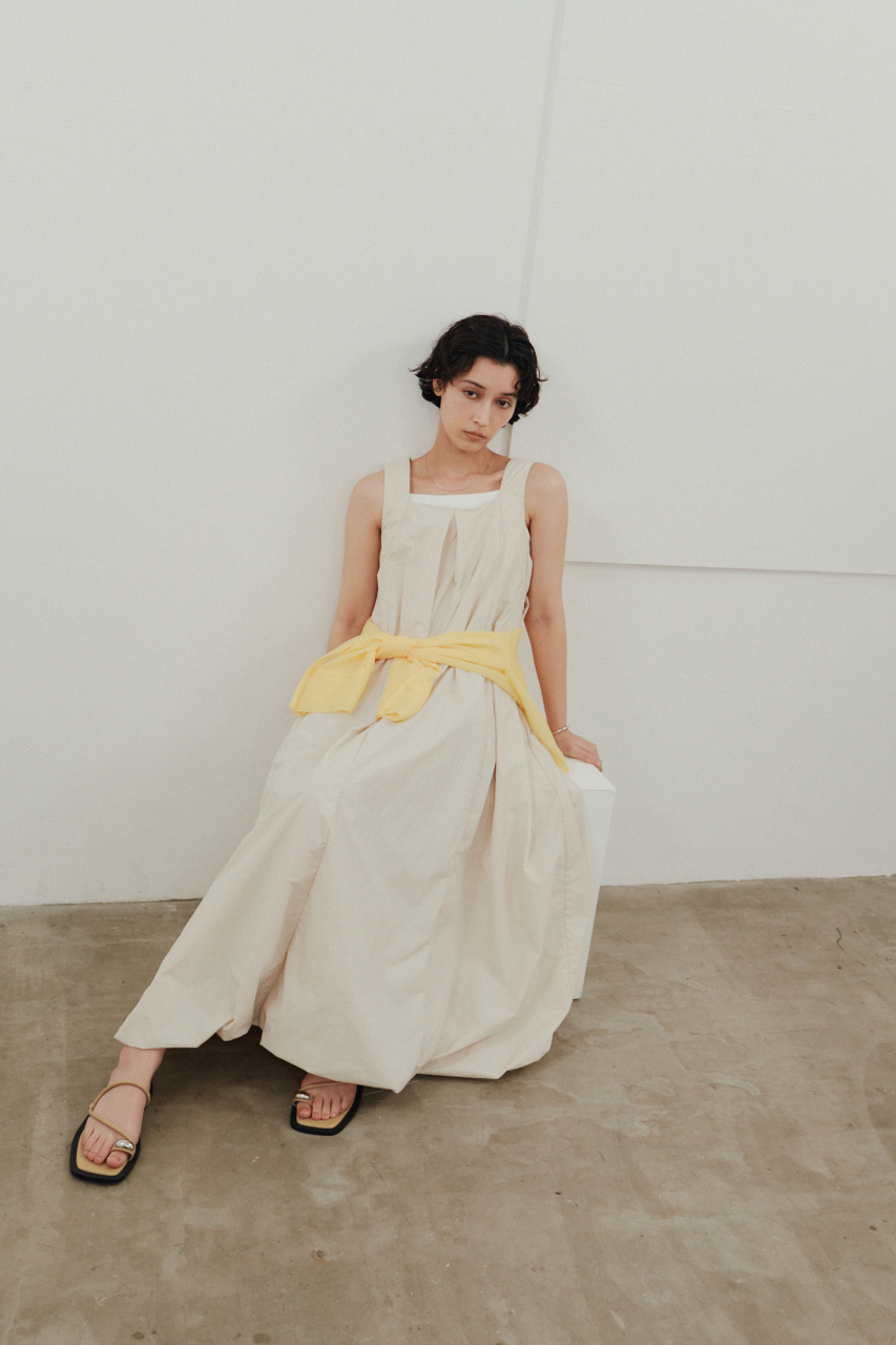 ハリのあるナイロン素材にUVカットと撥水加工を施したバルーンシルエットのワンピース。軽やかで動きやすく、外出時の紫外線対策や雨の日も快適に過ごせます。カジュアルながら女性らしい丸みのあるシルエットで、デイリーからアクティブなお出かけまで幅広く活躍する一着です。ストレッチなし、透け感なし。