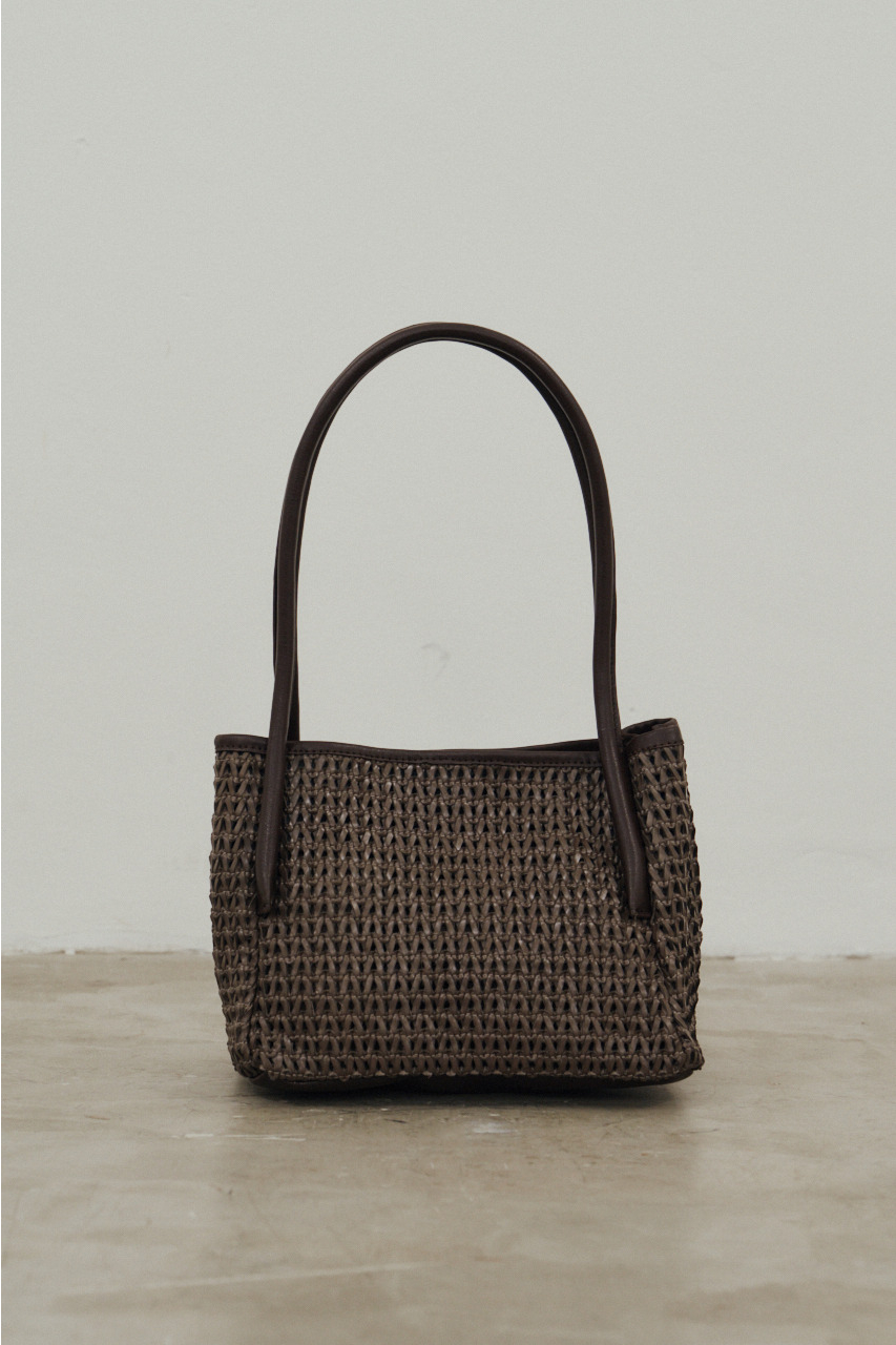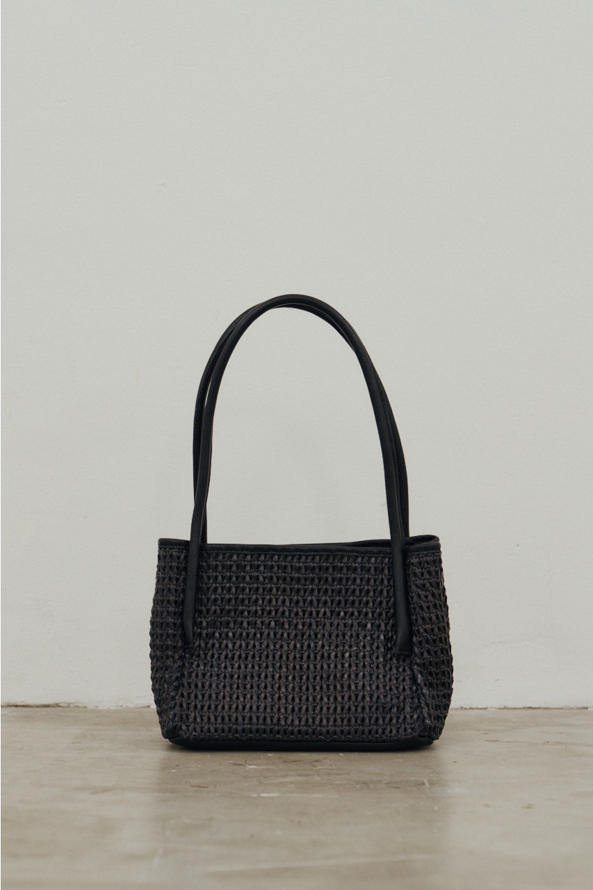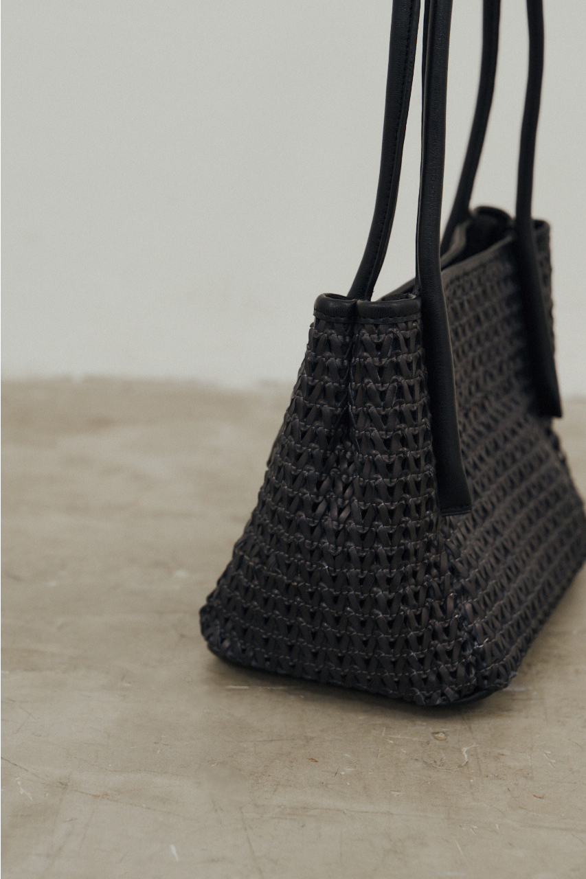 構築的なボックスフォルムに抜け感のあるメッシュデザインを掛け合わせたミニバッグ。直線的なシルエットがスタイリングを引き締めつつ、編み込みの柔らかさが程よい抜け感をプラス。カジュアルにもきれいめにも馴染む、バランスの取れたデザインに仕上げました。コンパクトながらもマチ付きで、見た目以上の収納力。内袋付きで中身が見えにくく、実用性も兼ね備えています。シンプルでありながら存在感のある、デイリーに使いやすい一点です。