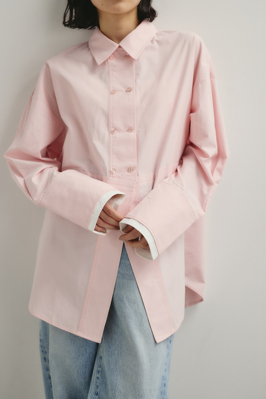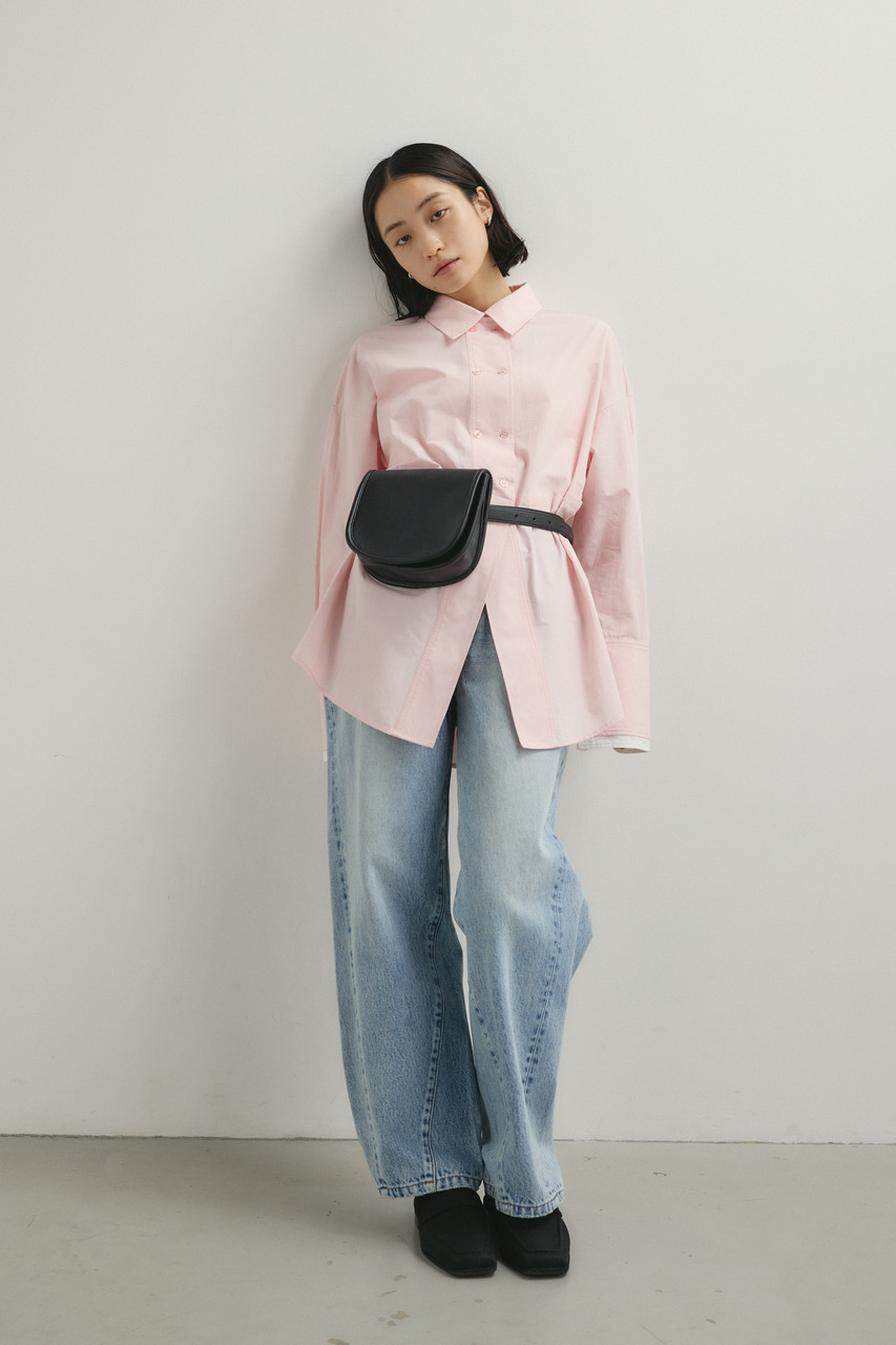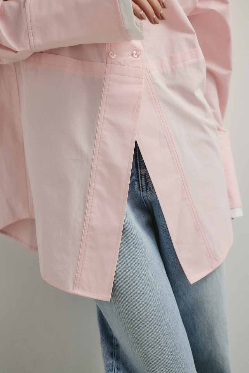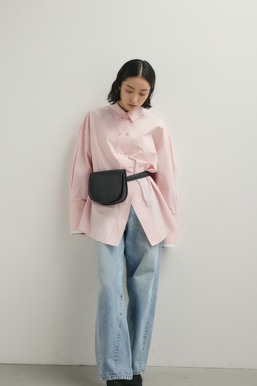 裾広がりのデザインが、一枚で雰囲気が出るオーバーサイズシャツ。ボックスシルエットがモードな印象に導きます。袖口の配色レイヤードデザインがポイント。アウターの中に入れて裾を出すなどレイヤードスタイリングが幅広く楽しめる一枚です。ストレッチなし、透け感WHTややあり。