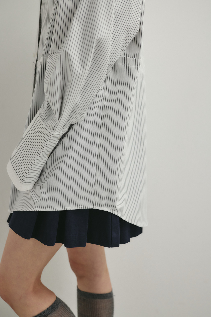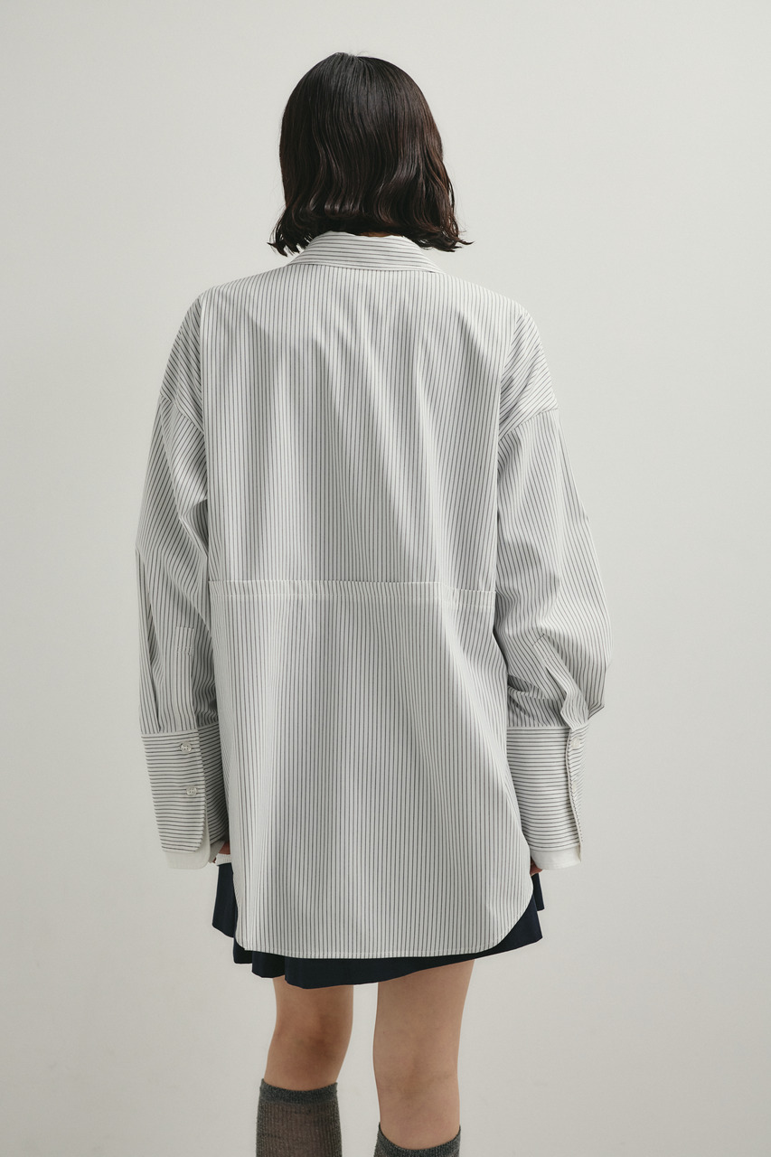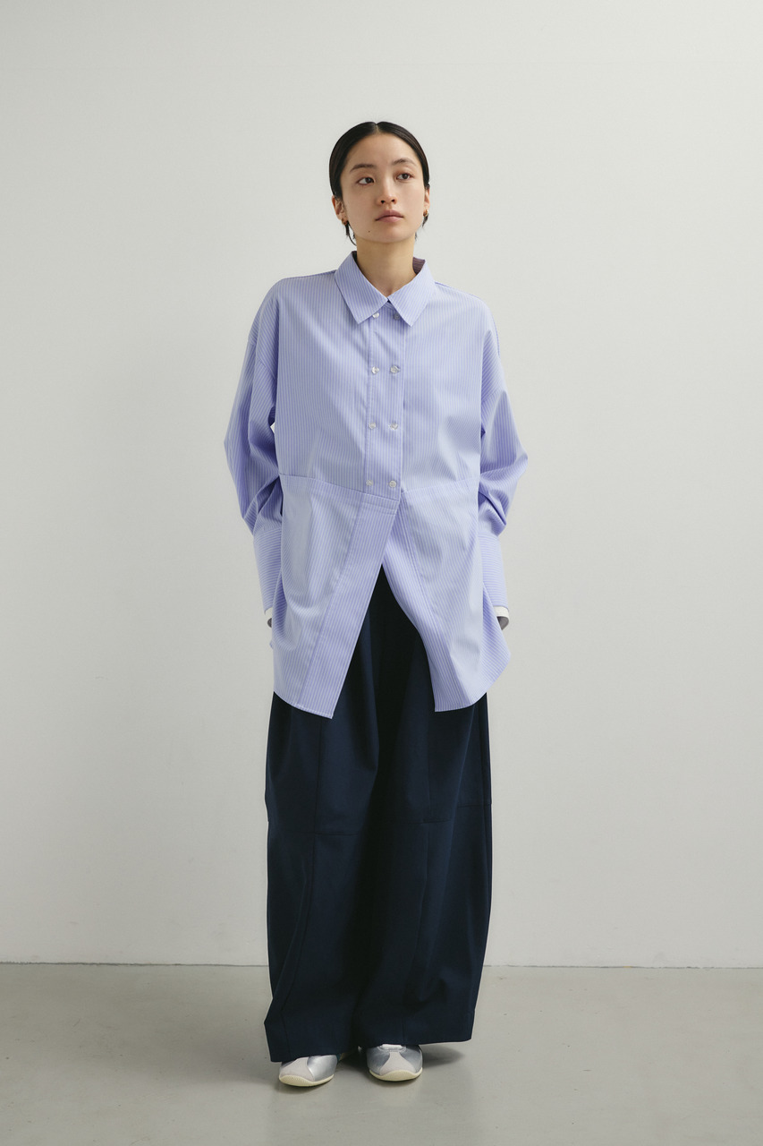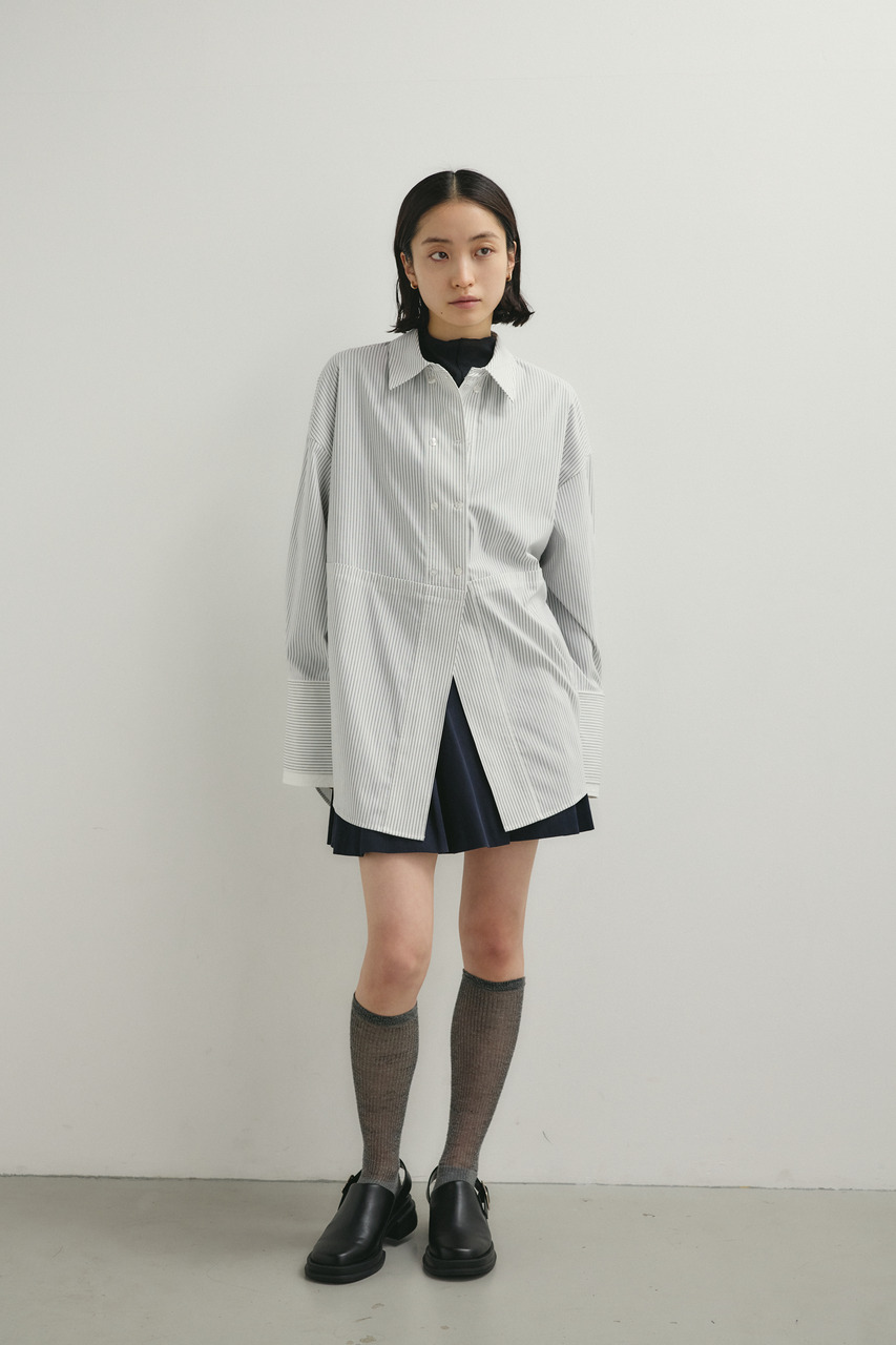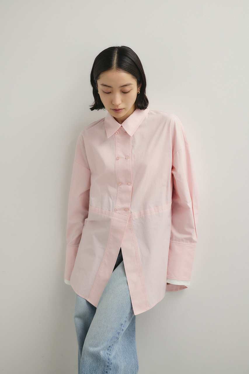 裾広がりのデザインが、一枚で雰囲気が出るオーバーサイズシャツ。ボックスシルエットがモードな印象に導きます。袖口の配色レイヤードデザインがポイント。アウターの中に入れて裾を出すなどレイヤードスタイリングが幅広く楽しめる一枚です。ストレッチなし、透け感WHTややあり。