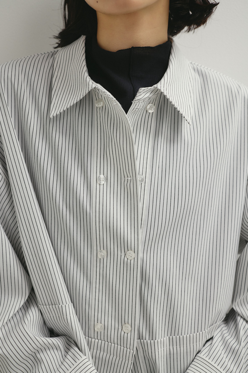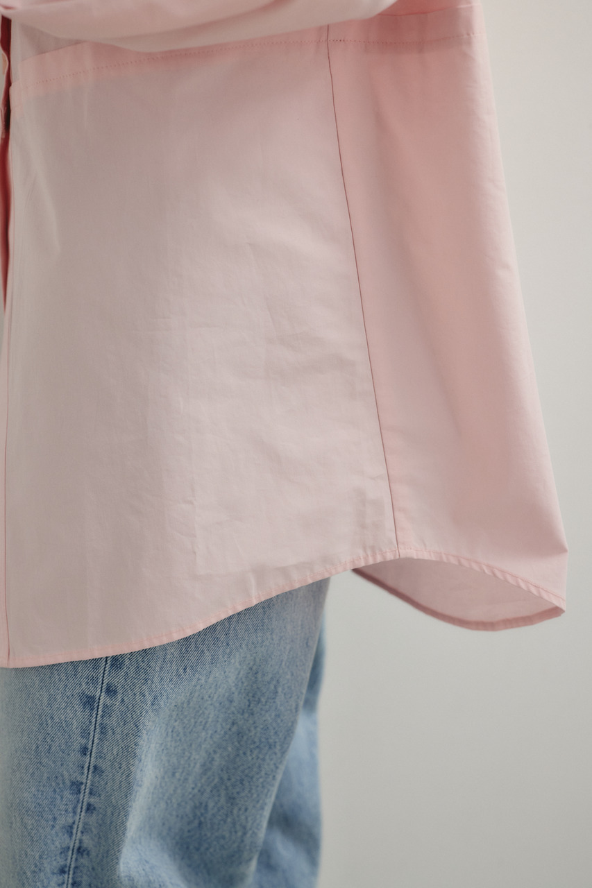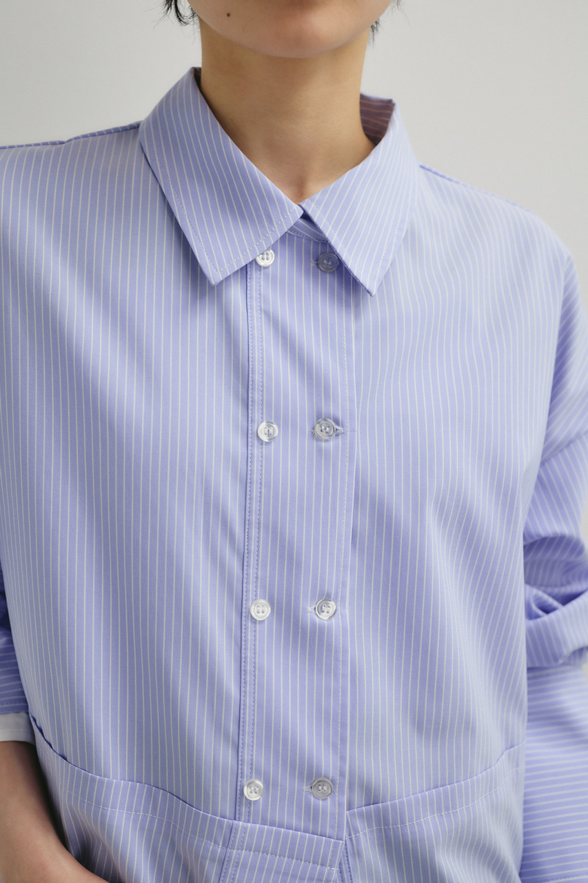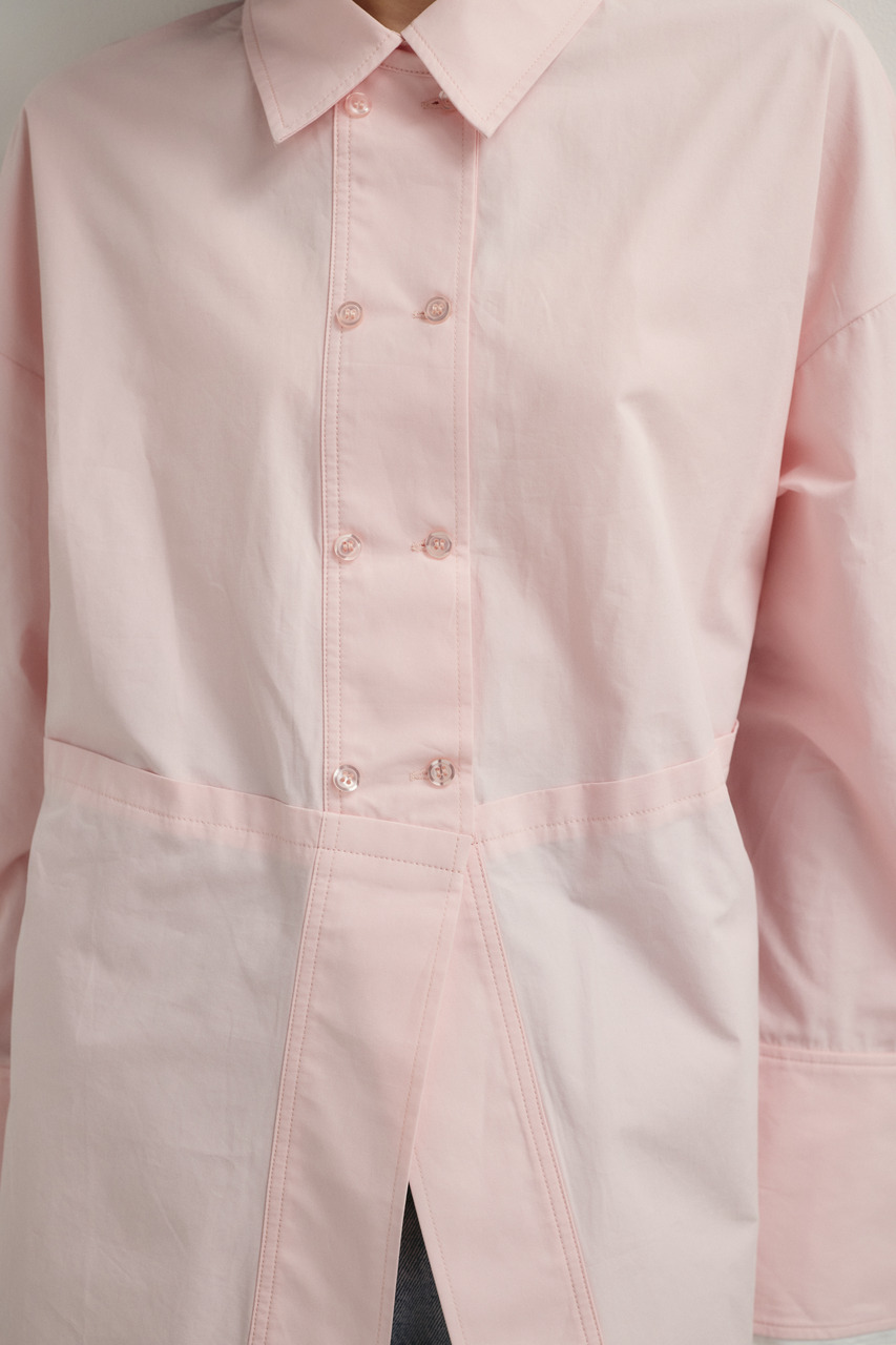 裾広がりのデザインが、一枚で雰囲気が出るオーバーサイズシャツ。ボックスシルエットがモードな印象に導きます。袖口の配色レイヤードデザインがポイント。アウターの中に入れて裾を出すなどレイヤードスタイリングが幅広く楽しめる一枚です。ストレッチなし、透け感WHTややあり。