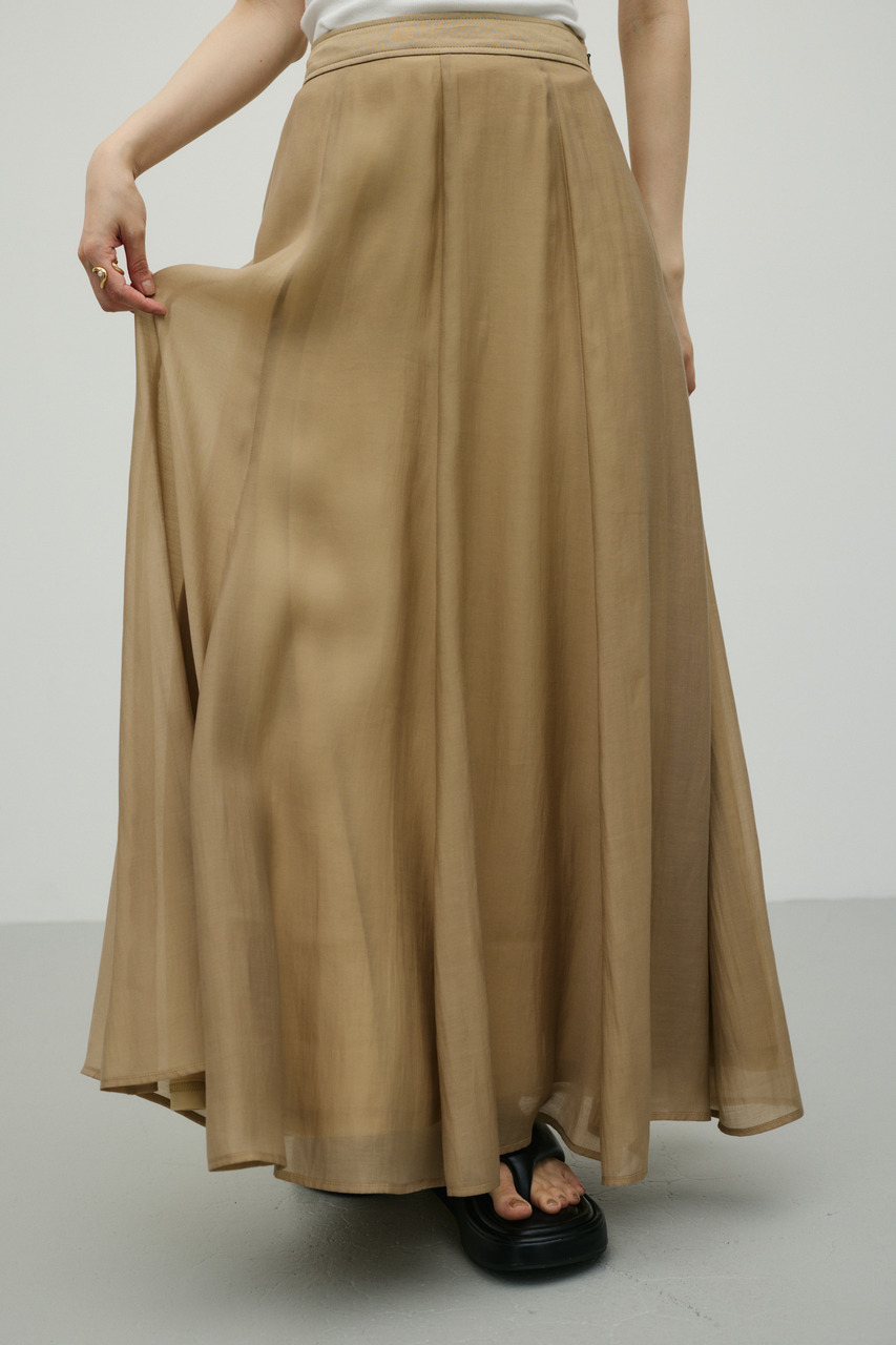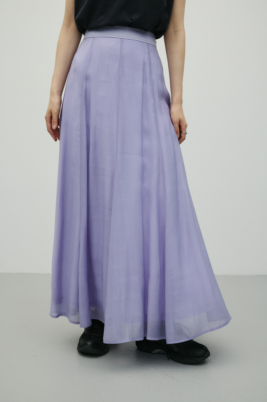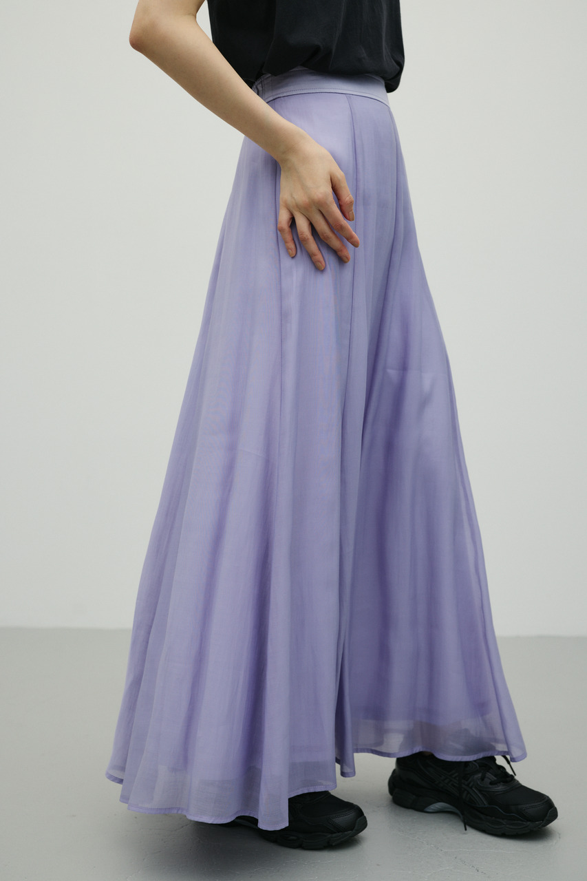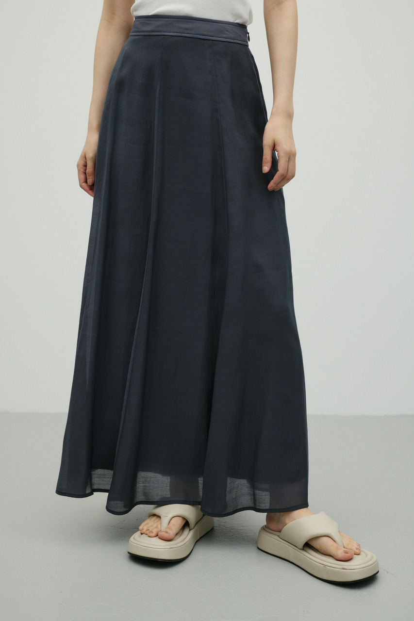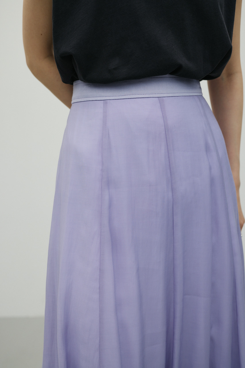 軽やかなシアー生地がポイントのフレアスカート。すっきりとしたウエスト周りから裾に向かって広がるフレアシルエットで女性らしい印象に仕上げました。デイリースタイルに程よいアクセントを加えてくれる一枚です。透け感あり(裏地付き)、ストレッチなし。